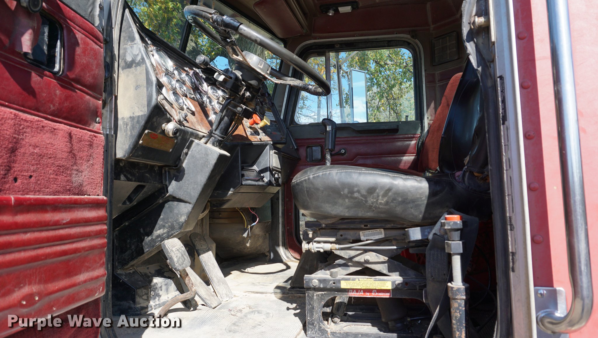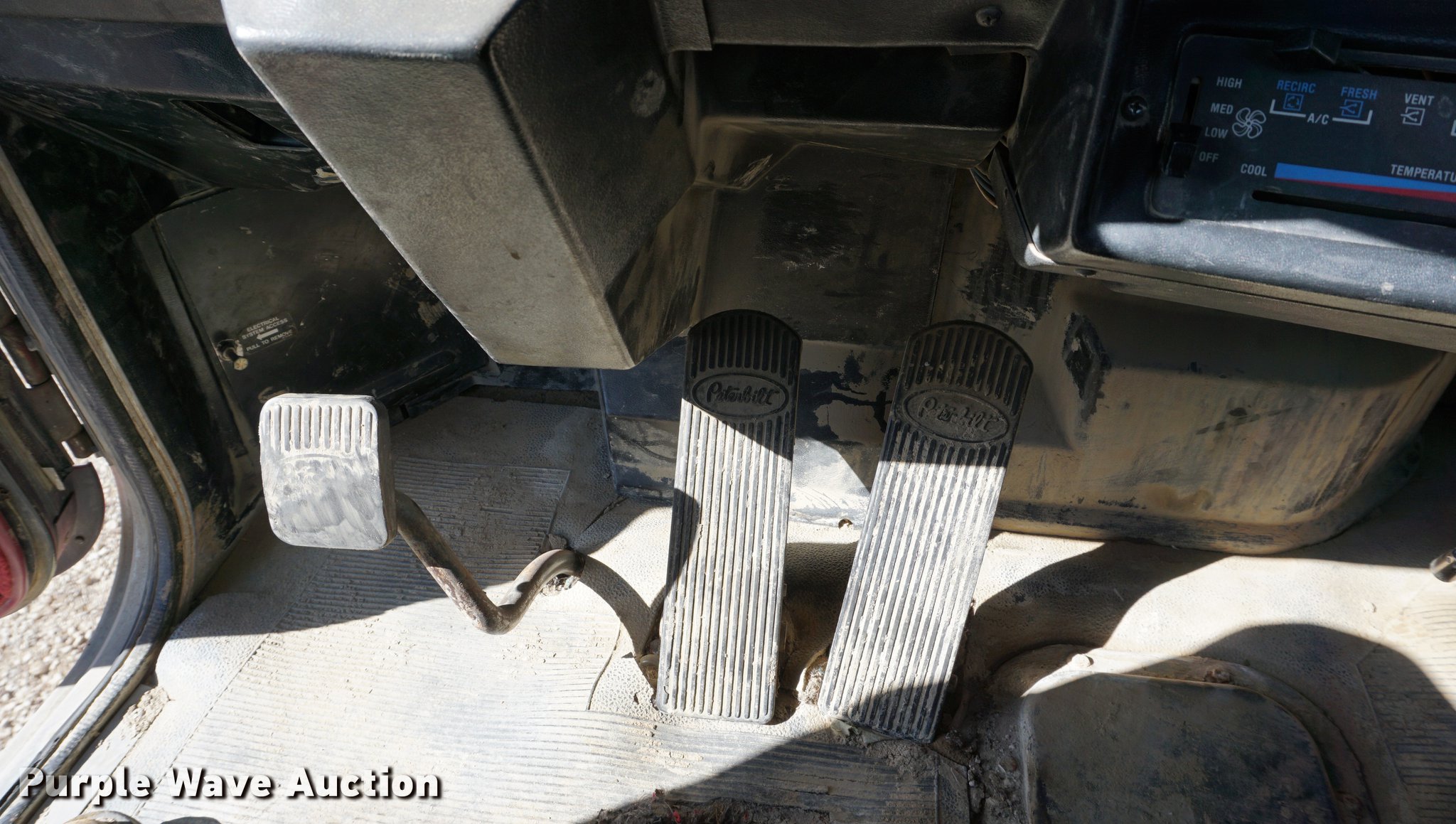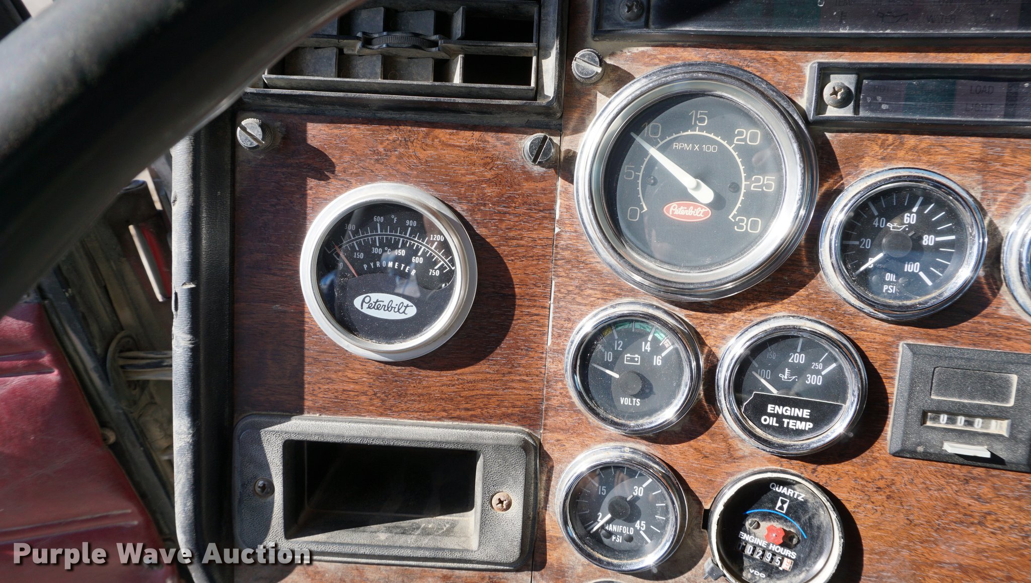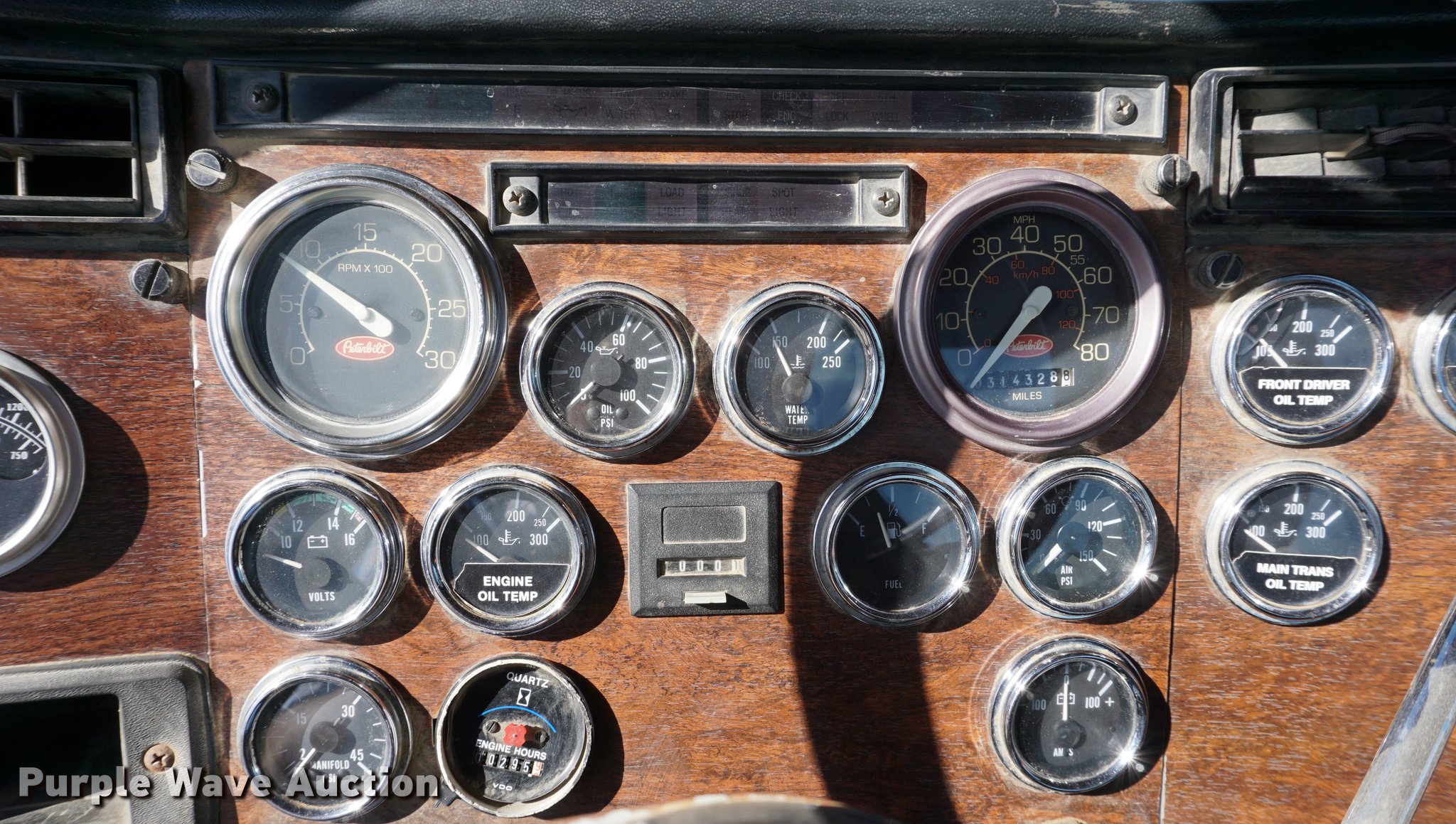Purple Wave is selling a used Truck Tractor in Kansas. This item is a 1990 Peterbilt 378 semi truck with the following: 314,328 miles on odometer, 10,295 hours on meter, Caterpillar 3406 14.6L L6 turbo diesel engine, 261 kW, Eaton Fuller 18 speed manual transmission, Tandem axle, Inter-axle differential lock, AC and heat, AM/FM, Air suspension seat, Exterior visor, PTO, Wet kit, Single exhaust stack, Aluminum deck plate, Sliding fifth wheel plate, Dual fuel tanks, Spring over walking beam suspension, Air brakes, 11R24.5 tires, GVWR 54,400 lbs, FAWR 14,400 lbs, IAWR 20,000 lbs, RAWR 20,000 lbs