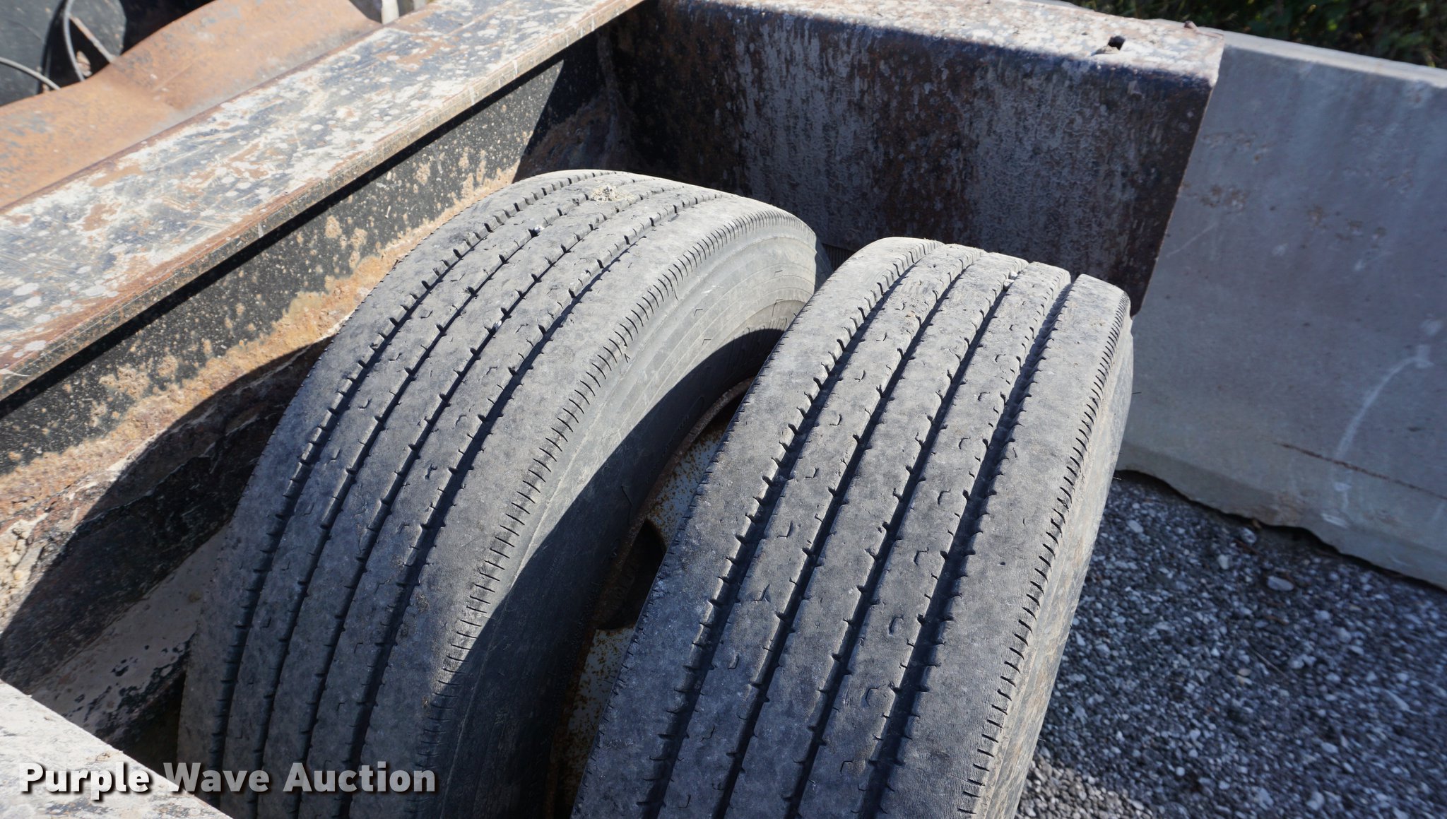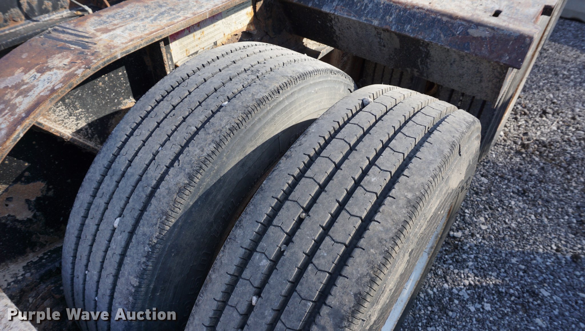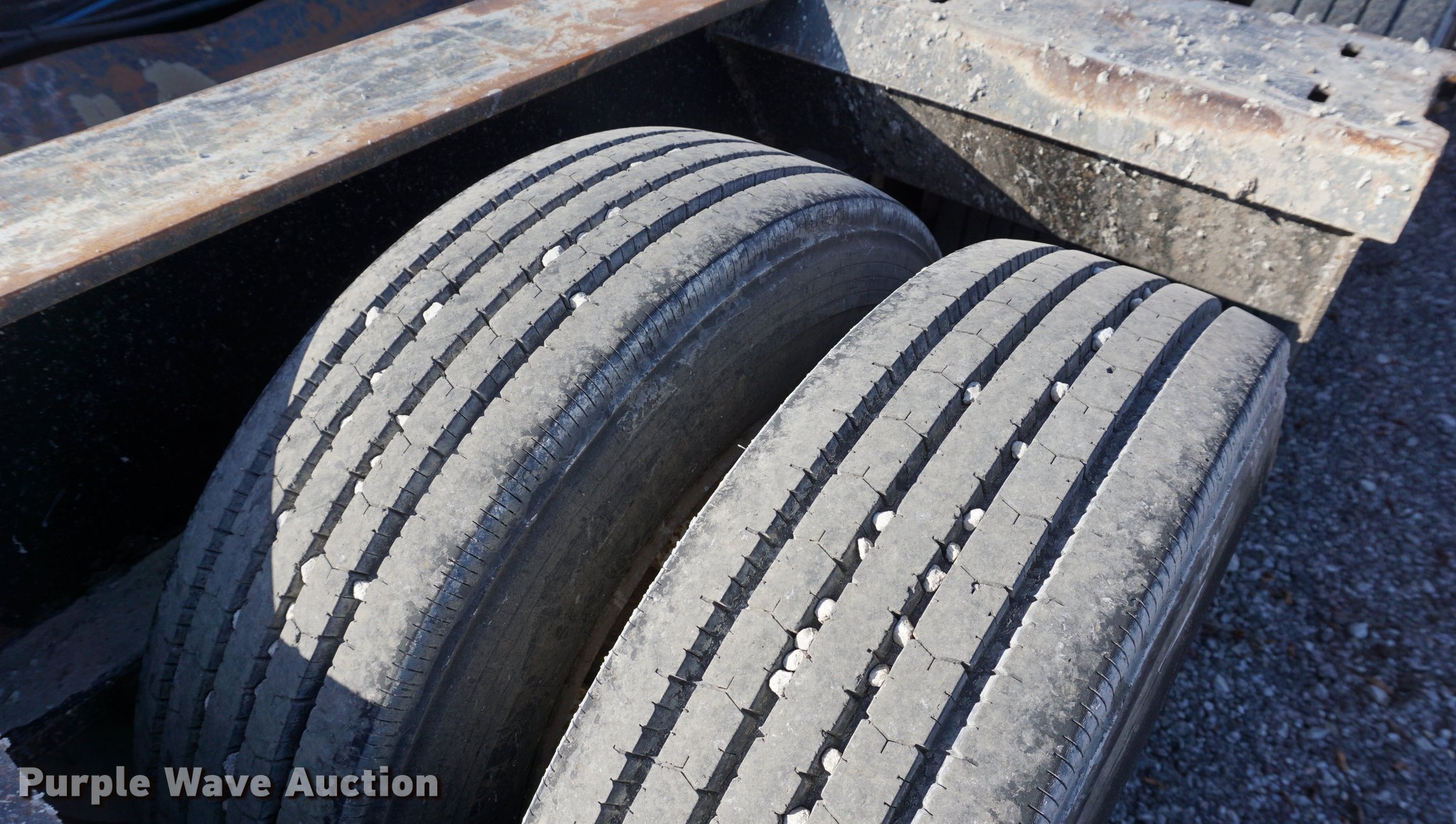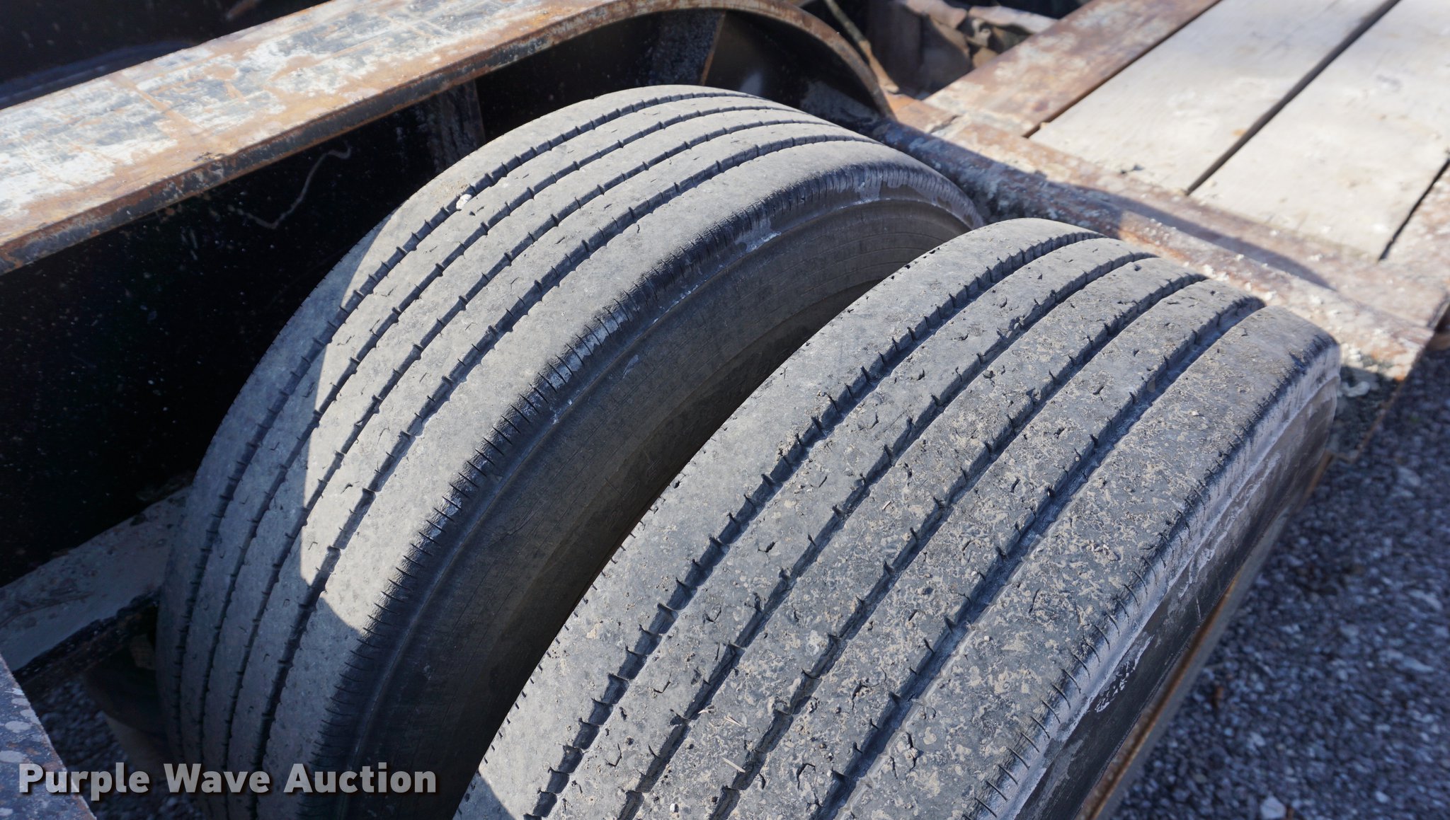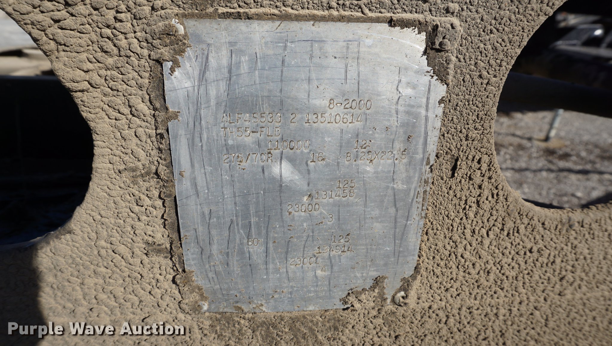 Purple Wave is selling a used Equip. Trailer in Kansas. This item is a 2001 Fontaine TH55-FLD lowboy equipment trailer with the following: 52' overall length, 102"W, 25' well length, 13'9" over rear axles, 12" swing-out side boards, Wood deck, D-ring tie downs, Detachable neck, Fifth wheel plate, Triple axle, Air suspension, Air brakes, 275/70R22.5 tires, GVWR 110,000 lbs, GAWR 23,000 lbs, Chains and boomers not included, (2) brake pots need replaced