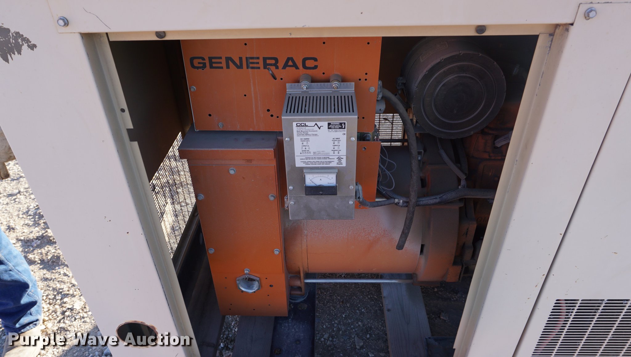 Purple Wave is selling a used Generator Set in Kansas. This item is a 1995 Generac 95A00258S generator with the following: 257 hours on meter, Generac 3.0L four cylinder dual fuel engine, Propane and natural gas capable, 25 kVA, 15 kW, Single phase, Switch box, 6'L x 3'W, Skid mounted, Serial 2018108