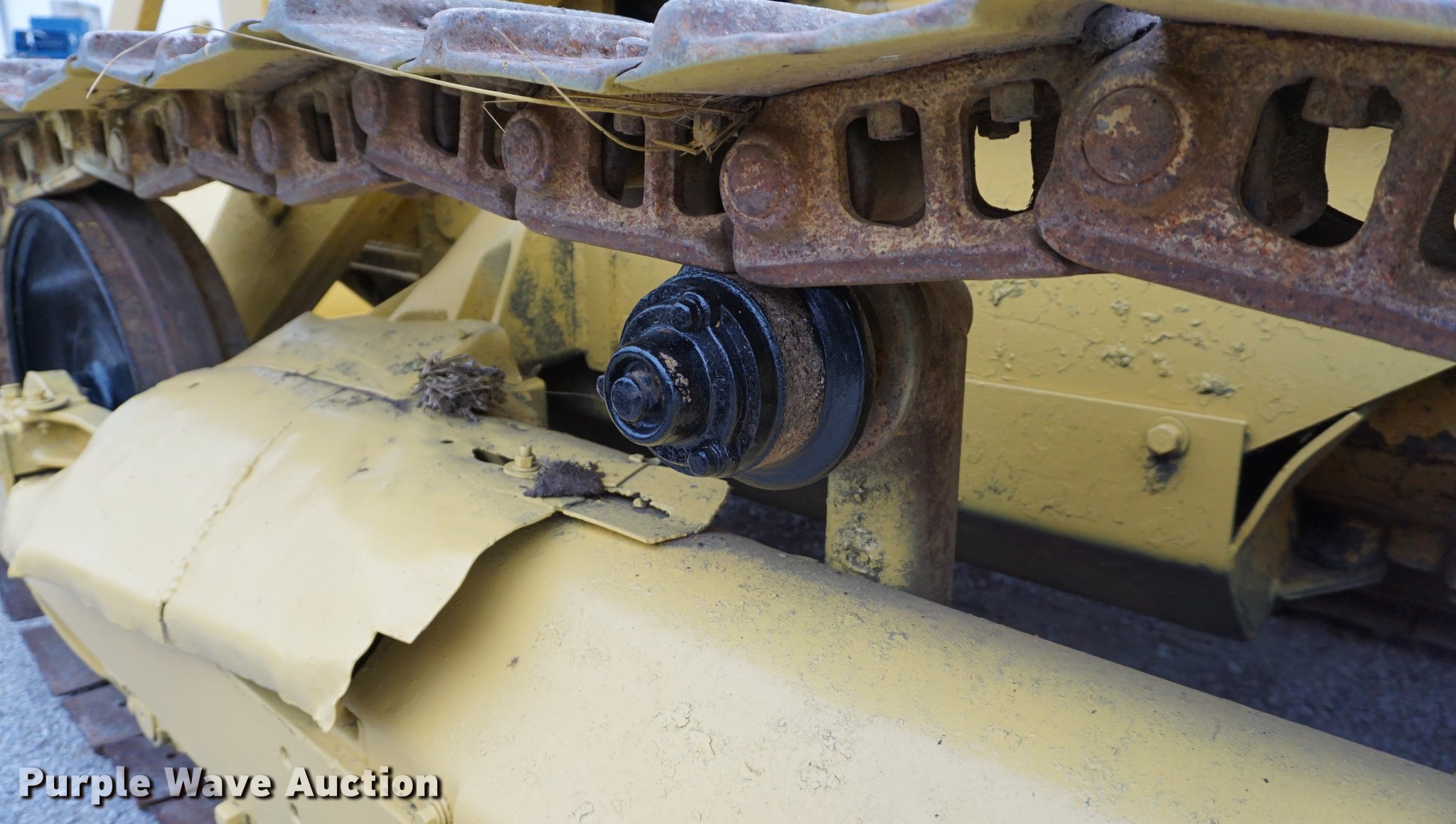 1955 Caterpillar 955 track loader. Unknown hours on meter, Caterpillar D315 four cylinder diesel engine 70 HP, Manual transmission 5F-1R gears, OROPS, Two-lever controls, 78"W bucket 1.5 cu.yd. capacity, 13"W single grouser track pads, Serial 12A642. 17855 K16. McLouth, KS 66054