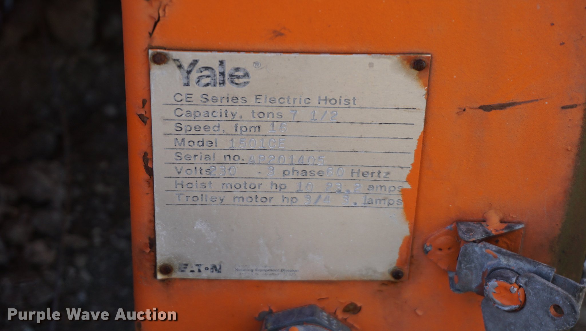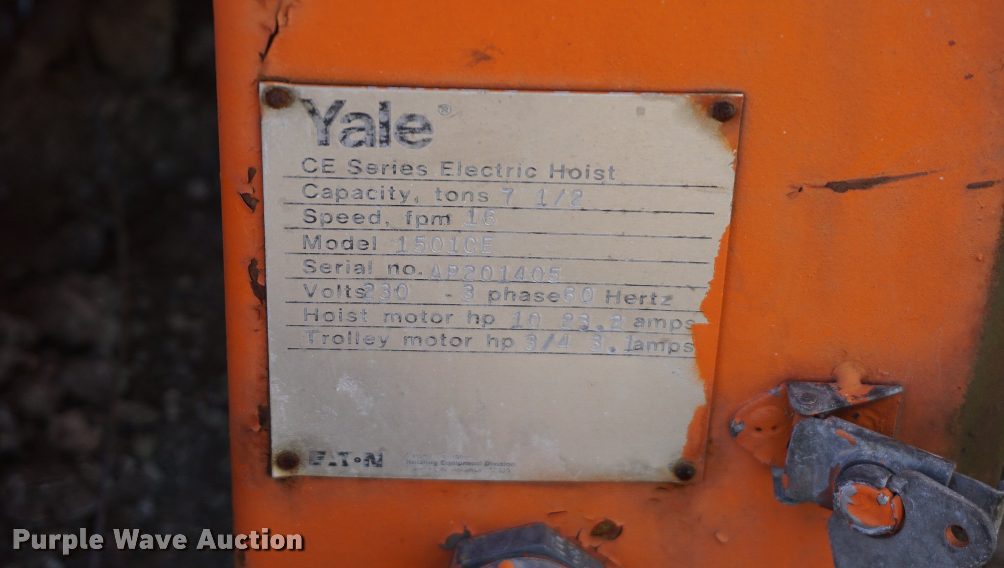 Yale 1501CE overhead hoist | SOLD! November 30 Construction Equipment Auction