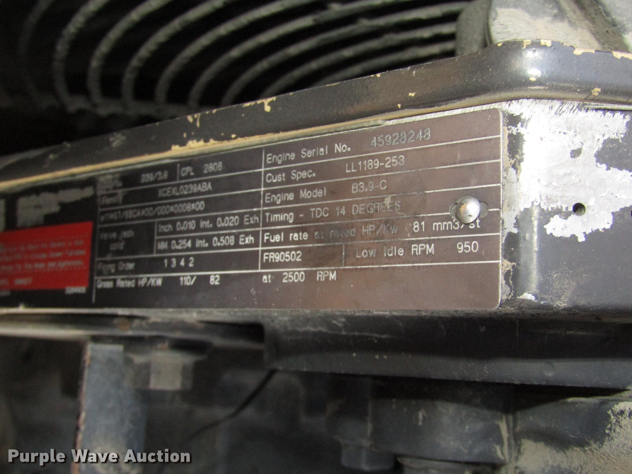 - Cummins B3.9C 3.9L four cylinder turbo diesel engine