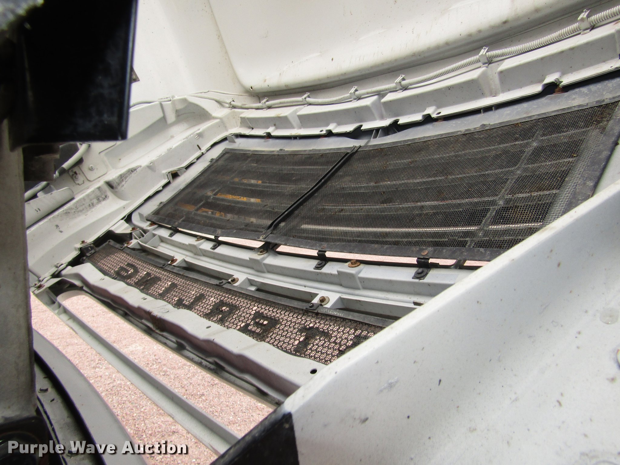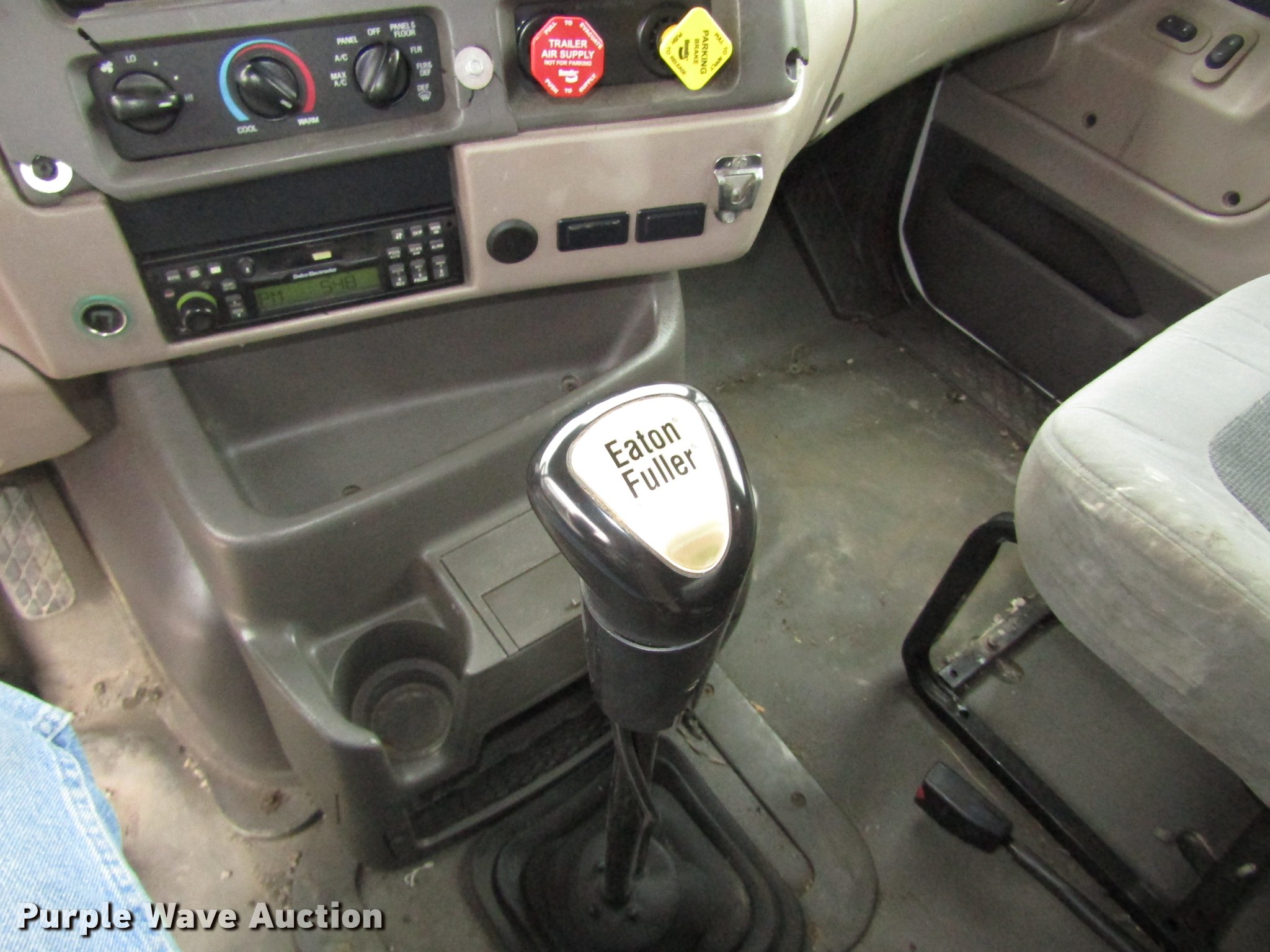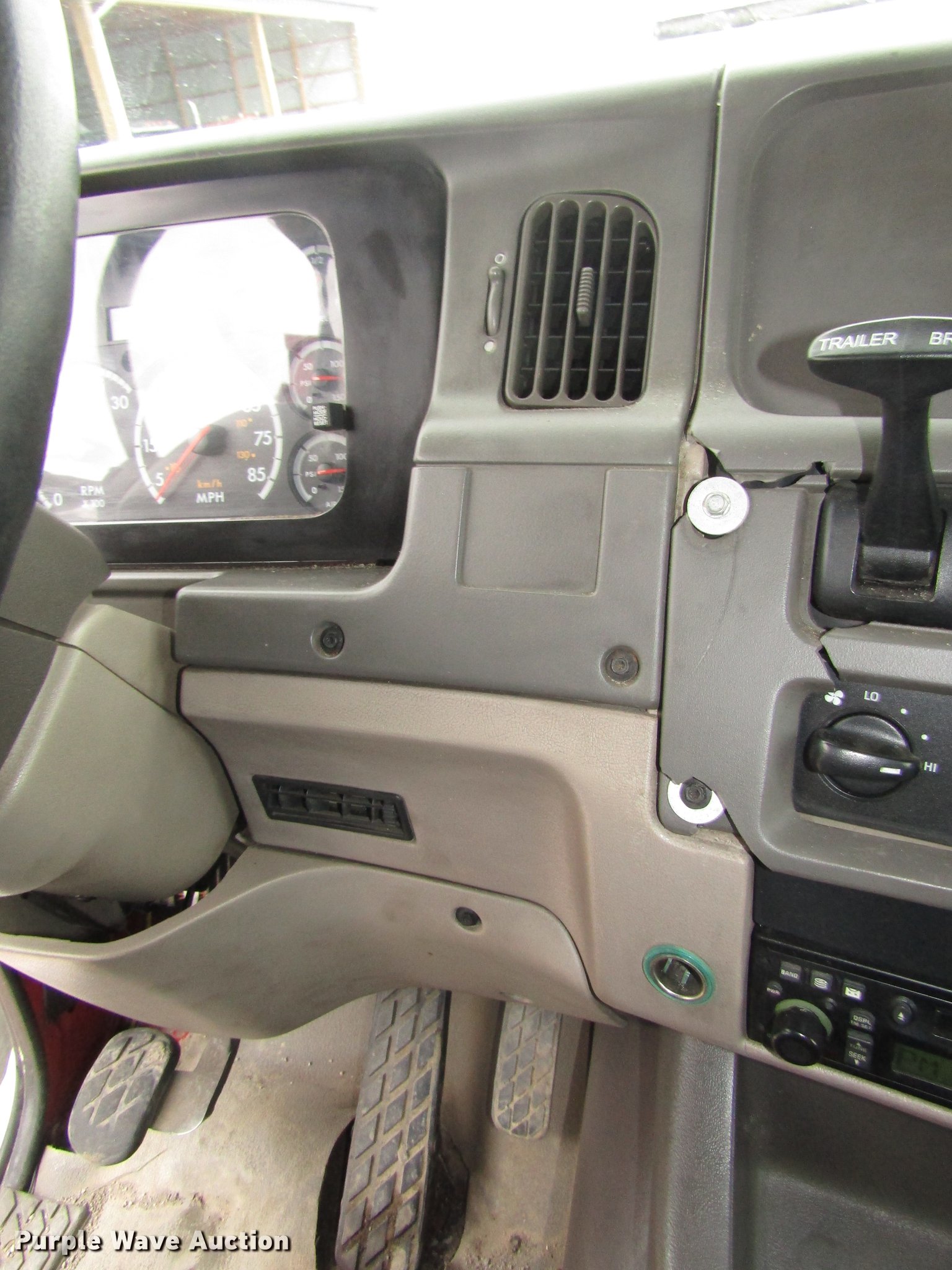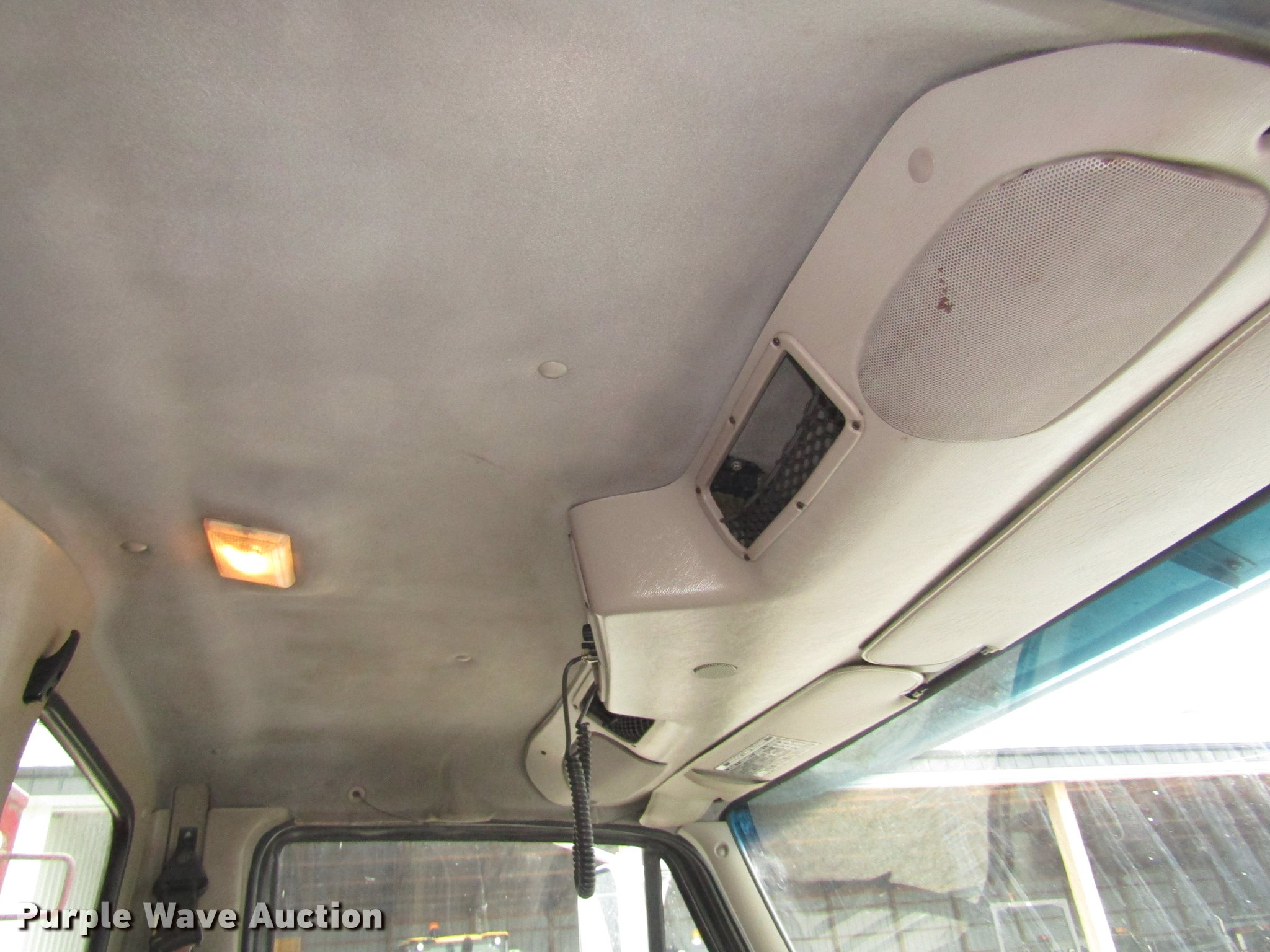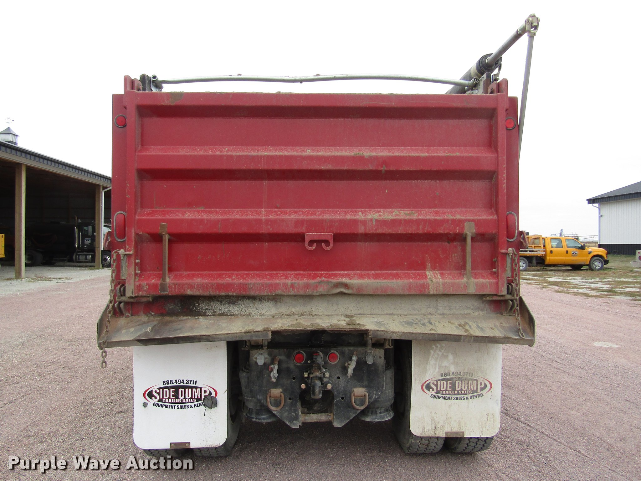 2006 Sterling AT9500 dump truck. 663,789 miles on odometer, 24,262 hours on meter, Caterpillar C13 12.5L L6 turbo diesel engine, Eaton Fuller Road Ranger 10 speed manual transmission, Axle lock, Triple axle, AC and heat, Tilt, Cruise, AM/FM/cassette, Heated mirrors, Air suspension seat, Backup alarm, PTO, Air ride cab, Exterior visor, 16'L x 100"W steel dump bed 48" side height, 16" side board height, 106" from ground to top of sides, Single ram hoist, Roll tarp, Air operated end gate, Single fuel tank, Mud flaps, Pintle hitch, Trailer wiring, Air connections, 212" wheelbase, Steerable pusher axle, Air suspension, Air brakes, Steel wheels, 295/75R22.5 front tires, 275/80R22.5 pusher axle tires, 295/75R22.5 rear tires. Iowa title. 2FWNA3DE46AW44723. Midwest Coatings. 1425 280th St. Modale, IA 51556