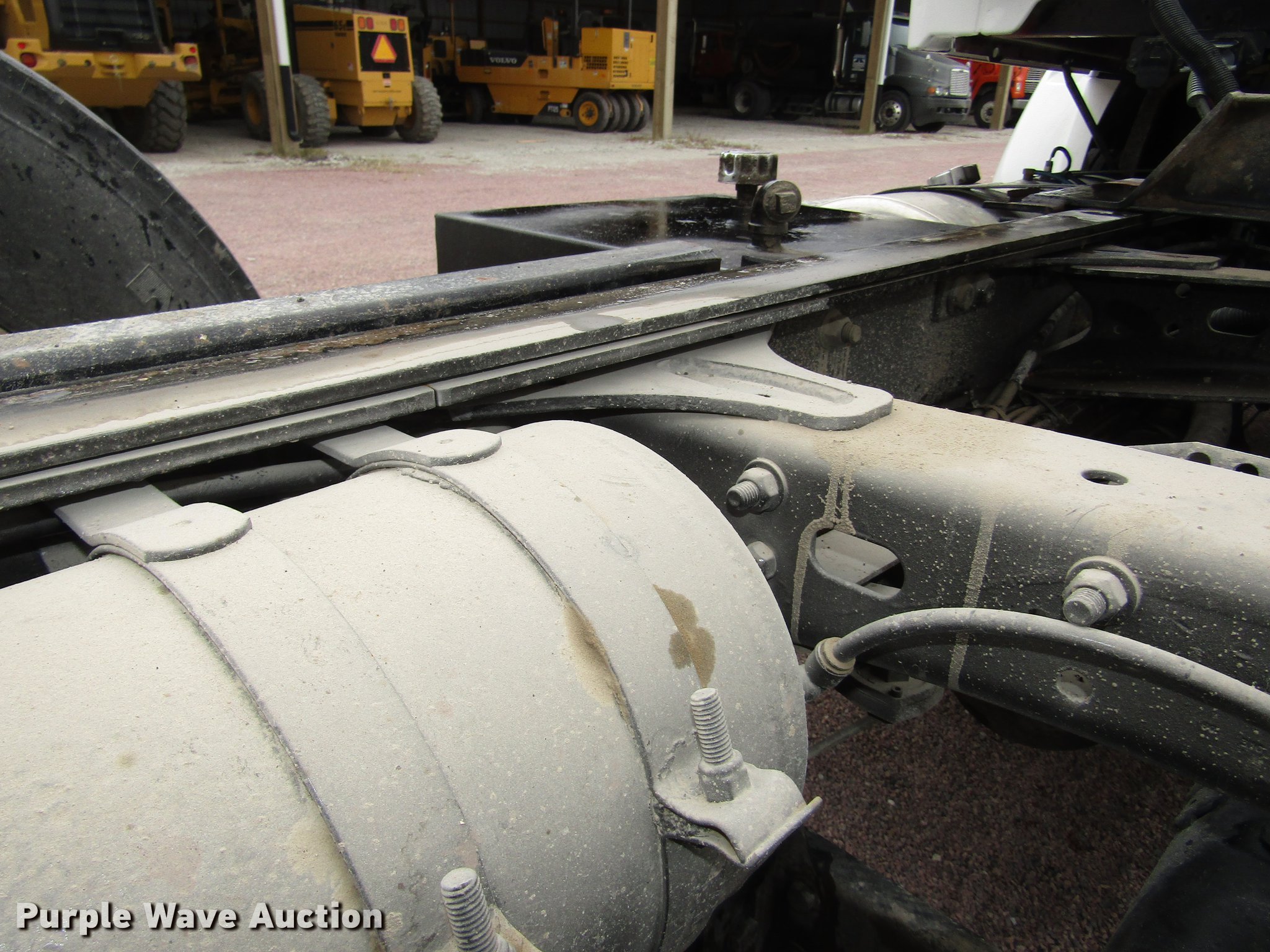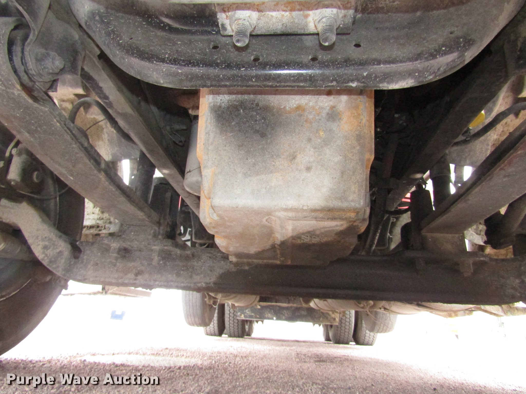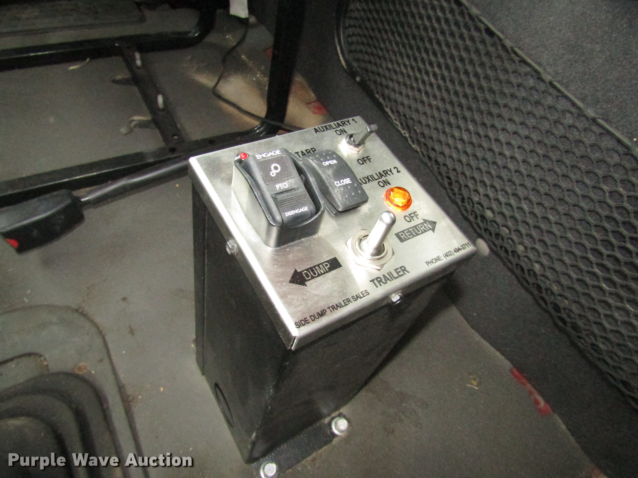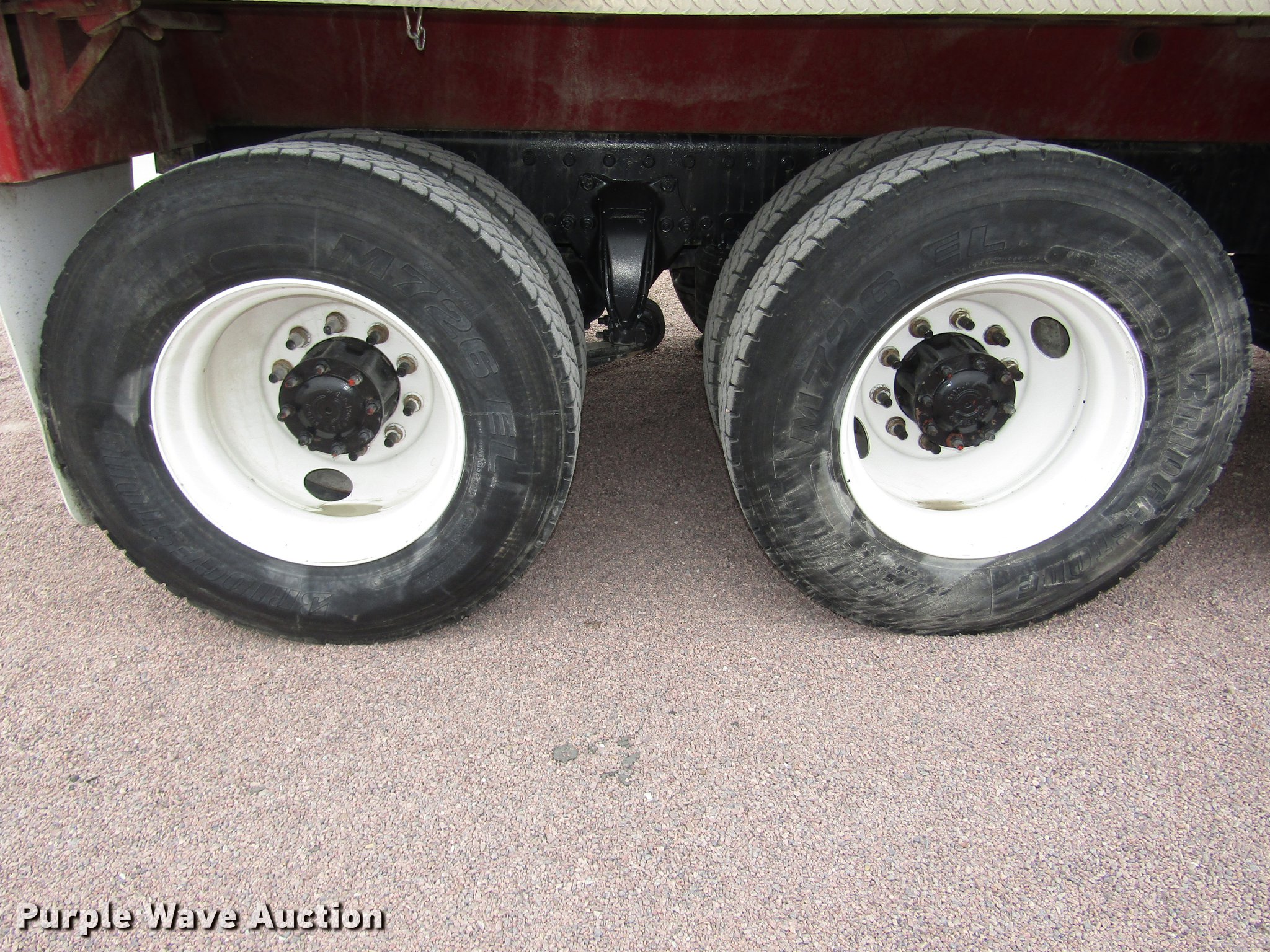 2006 Sterling AT9500 dump truck. 663,789 miles on odometer, 24,262 hours on meter, Caterpillar C13 12.5L L6 turbo diesel engine, Eaton Fuller Road Ranger 10 speed manual transmission, Axle lock, Triple axle, AC and heat, Tilt, Cruise, AM/FM/cassette, Heated mirrors, Air suspension seat, Backup alarm, PTO, Air ride cab, Exterior visor, 16'L x 100"W steel dump bed 48" side height, 16" side board height, 106" from ground to top of sides, Single ram hoist, Roll tarp, Air operated end gate, Single fuel tank, Mud flaps, Pintle hitch, Trailer wiring, Air connections, 212" wheelbase, Steerable pusher axle, Air suspension, Air brakes, Steel wheels, 295/75R22.5 front tires, 275/80R22.5 pusher axle tires, 295/75R22.5 rear tires. Iowa title. 2FWNA3DE46AW44723. Midwest Coatings. 1425 280th St. Modale, IA 51556