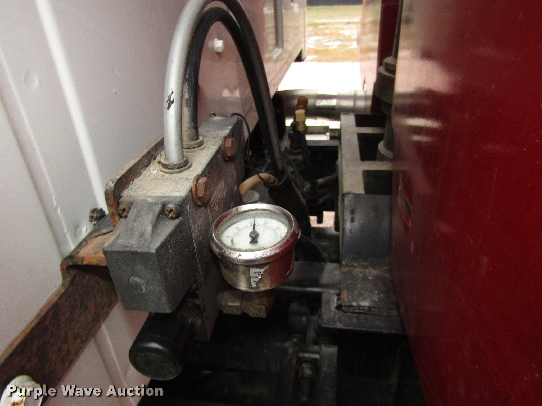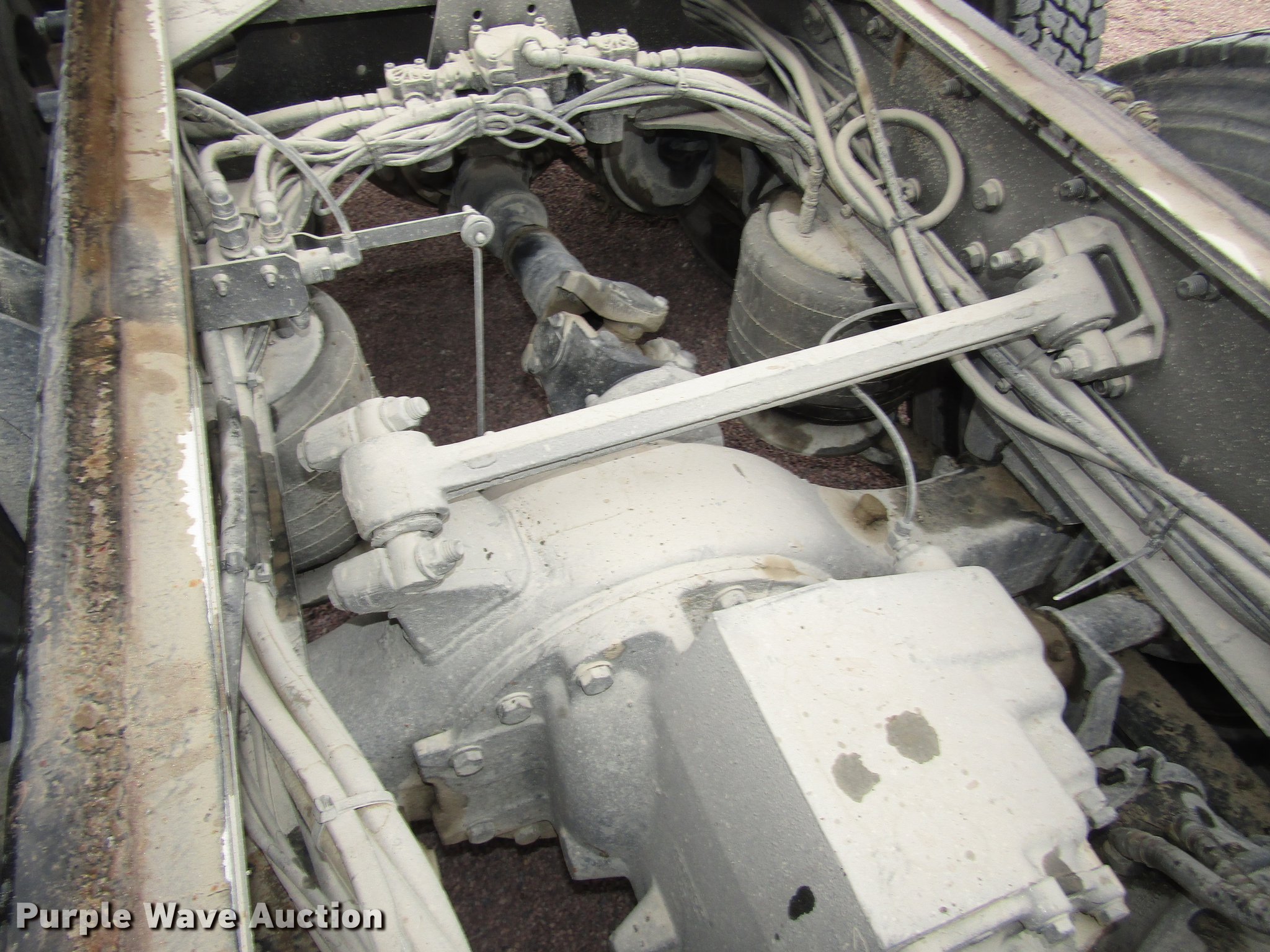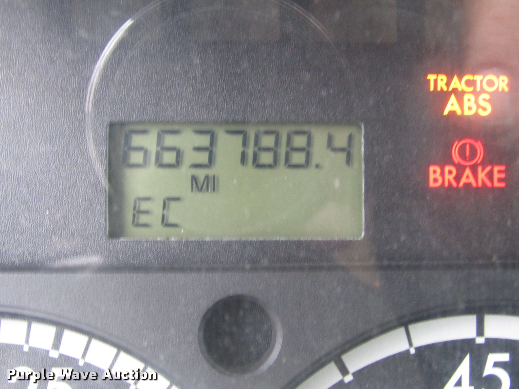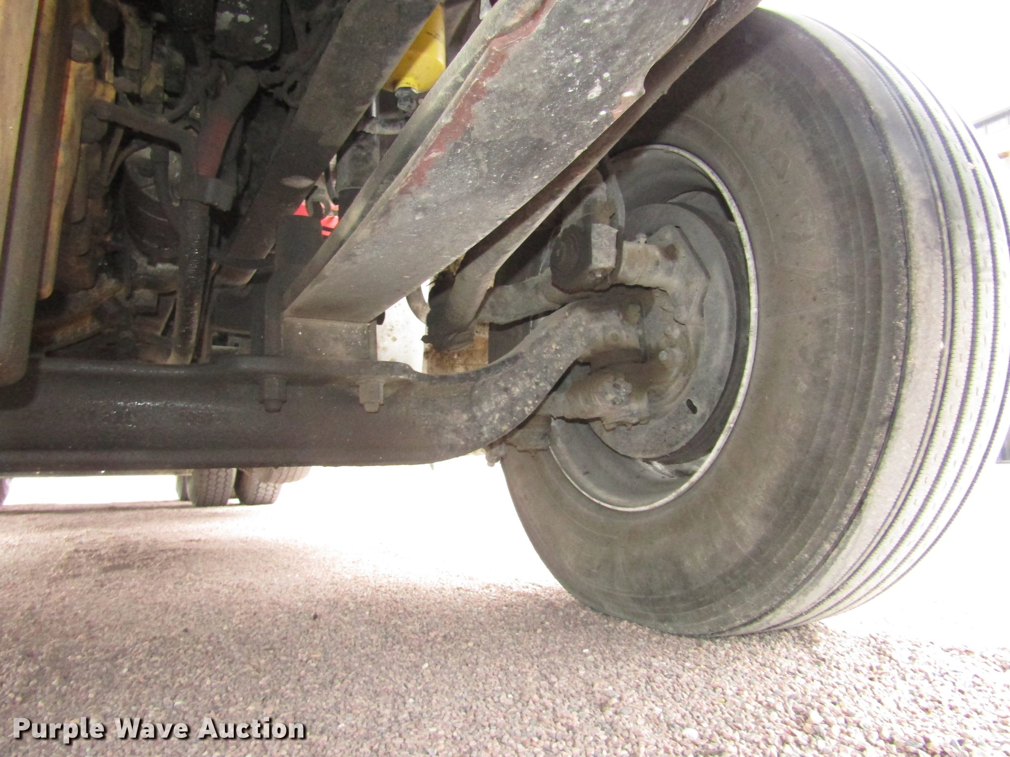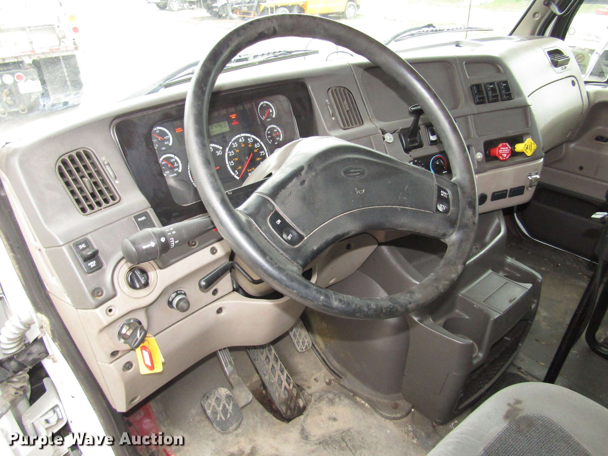 2006 Sterling AT9500 dump truck. 663,789 miles on odometer, 24,262 hours on meter, Caterpillar C13 12.5L L6 turbo diesel engine, Eaton Fuller Road Ranger 10 speed manual transmission, Axle lock, Triple axle, AC and heat, Tilt, Cruise, AM/FM/cassette, Heated mirrors, Air suspension seat, Backup alarm, PTO, Air ride cab, Exterior visor, 16'L x 100"W steel dump bed 48" side height, 16" side board height, 106" from ground to top of sides, Single ram hoist, Roll tarp, Air operated end gate, Single fuel tank, Mud flaps, Pintle hitch, Trailer wiring, Air connections, 212" wheelbase, Steerable pusher axle, Air suspension, Air brakes, Steel wheels, 295/75R22.5 front tires, 275/80R22.5 pusher axle tires, 295/75R22.5 rear tires. Iowa title. 2FWNA3DE46AW44723. Midwest Coatings. 1425 280th St. Modale, IA 51556