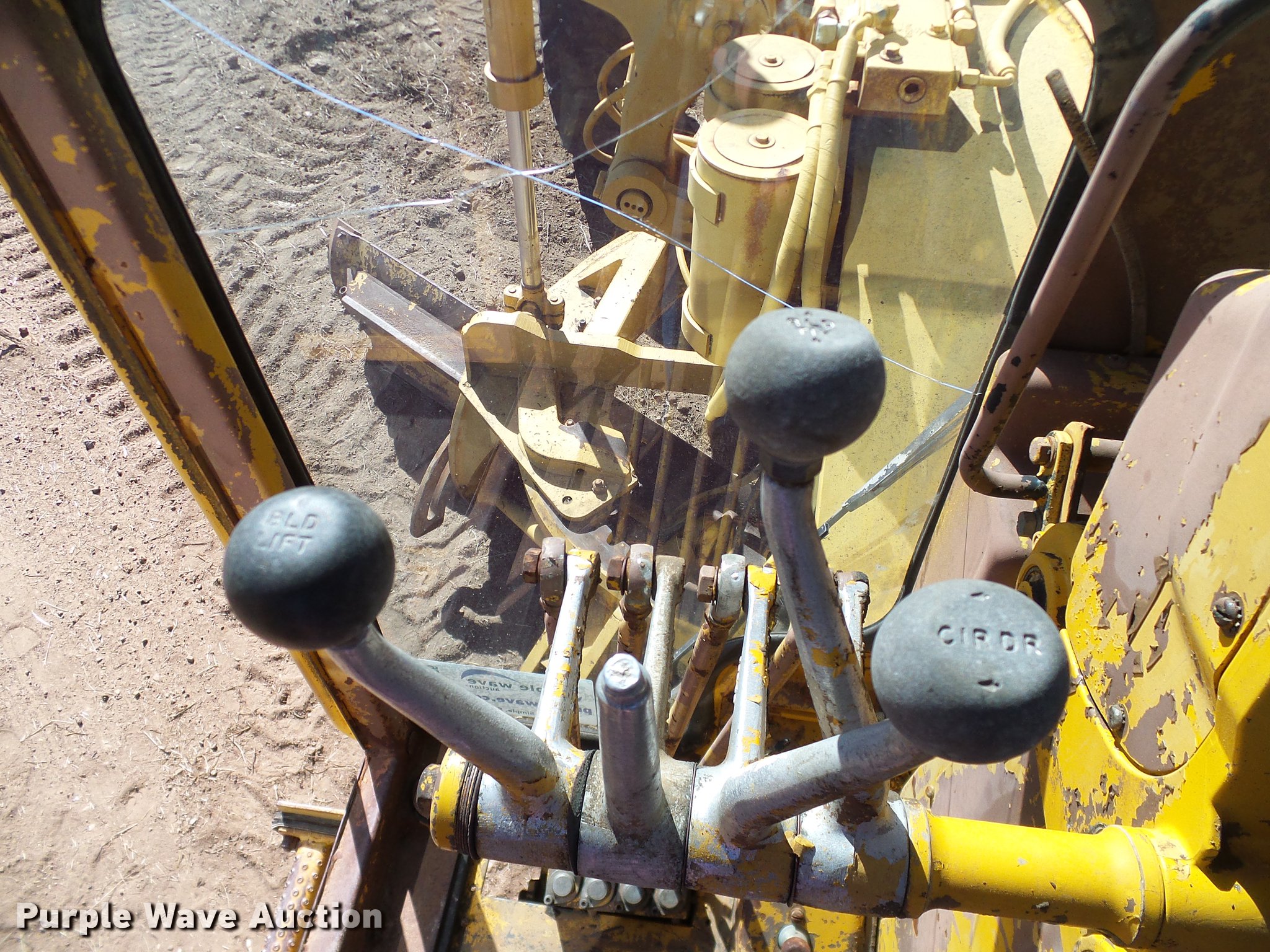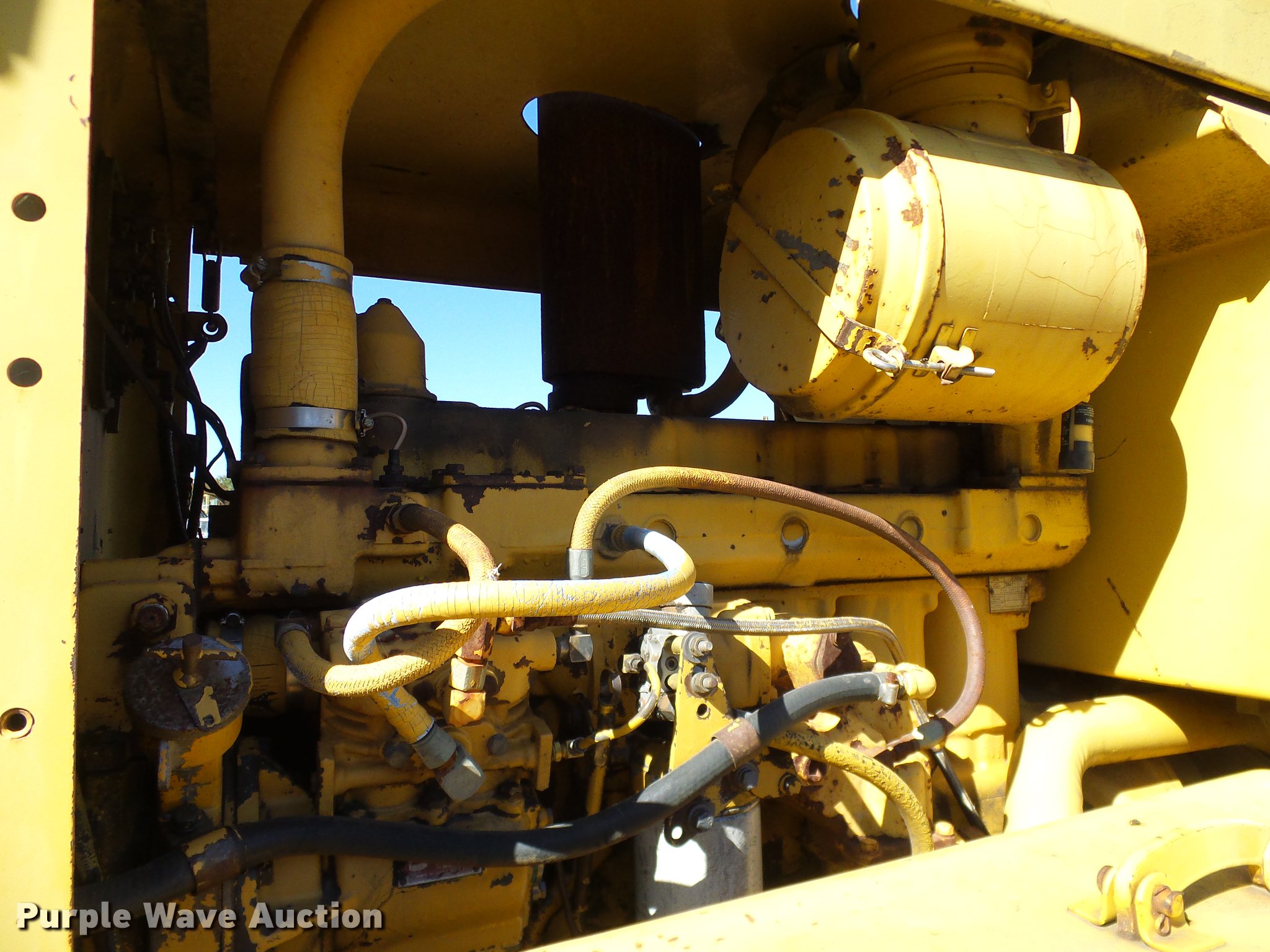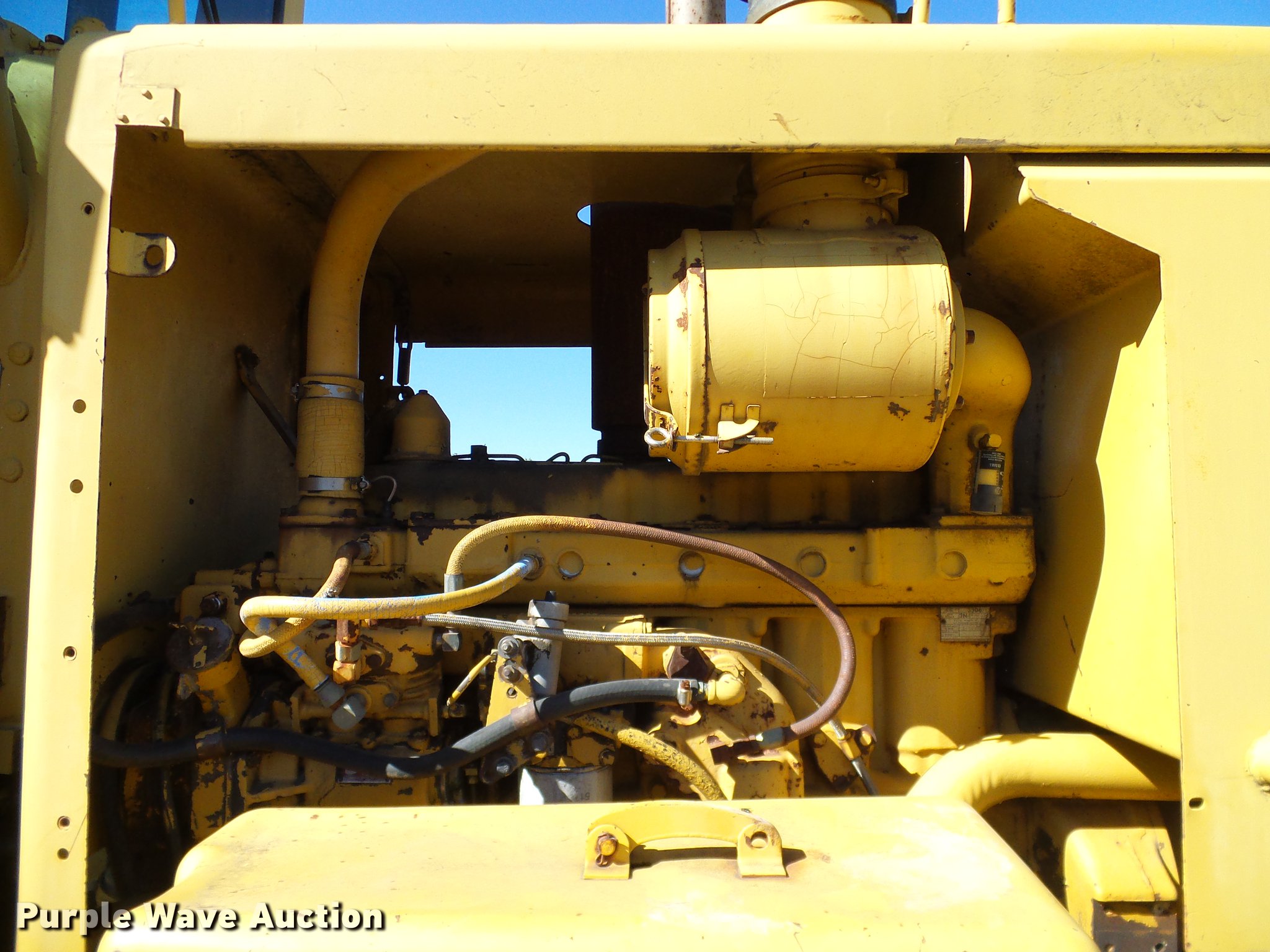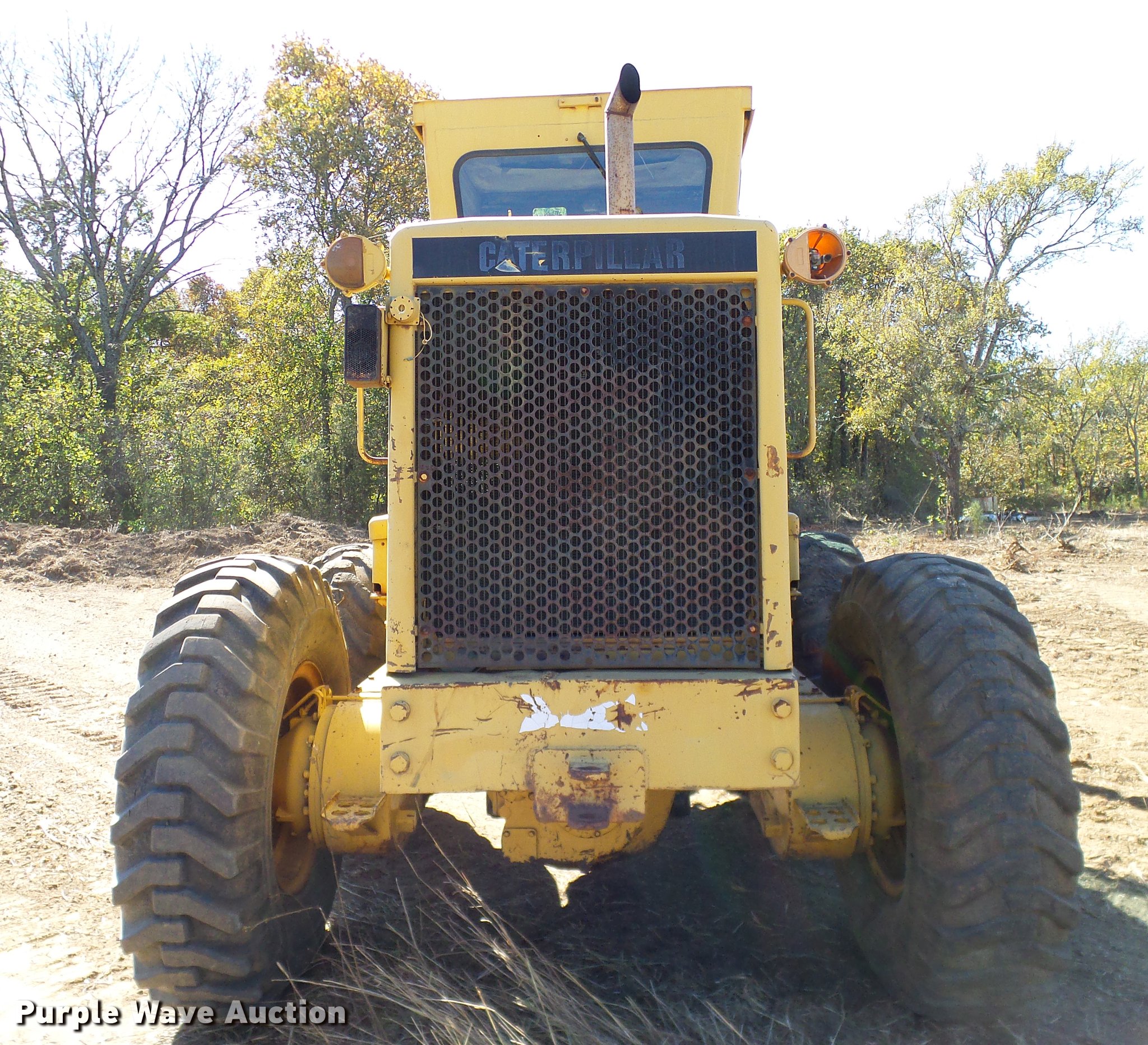 Purple Wave is selling a used Motor Grader in Oklahoma. This item is a 1976 Caterpillar 12G motor grader with the following: 608 hours on meter, Caterpillar 3306PC six cylinder turbo diesel engine, Serial 3N4536, Powershift transmission, 6F-6R gears, Differential lock, EROPS, Tilt steering, Suspension seat, Nine control valves, 14'W moldboard, Tip control, Side shift, Blade accumulators, Circle slip clutch, Front mounted scarifier, Rear pin hitch, 14.00-24 tires, Glass cracked, Serial 61M3693