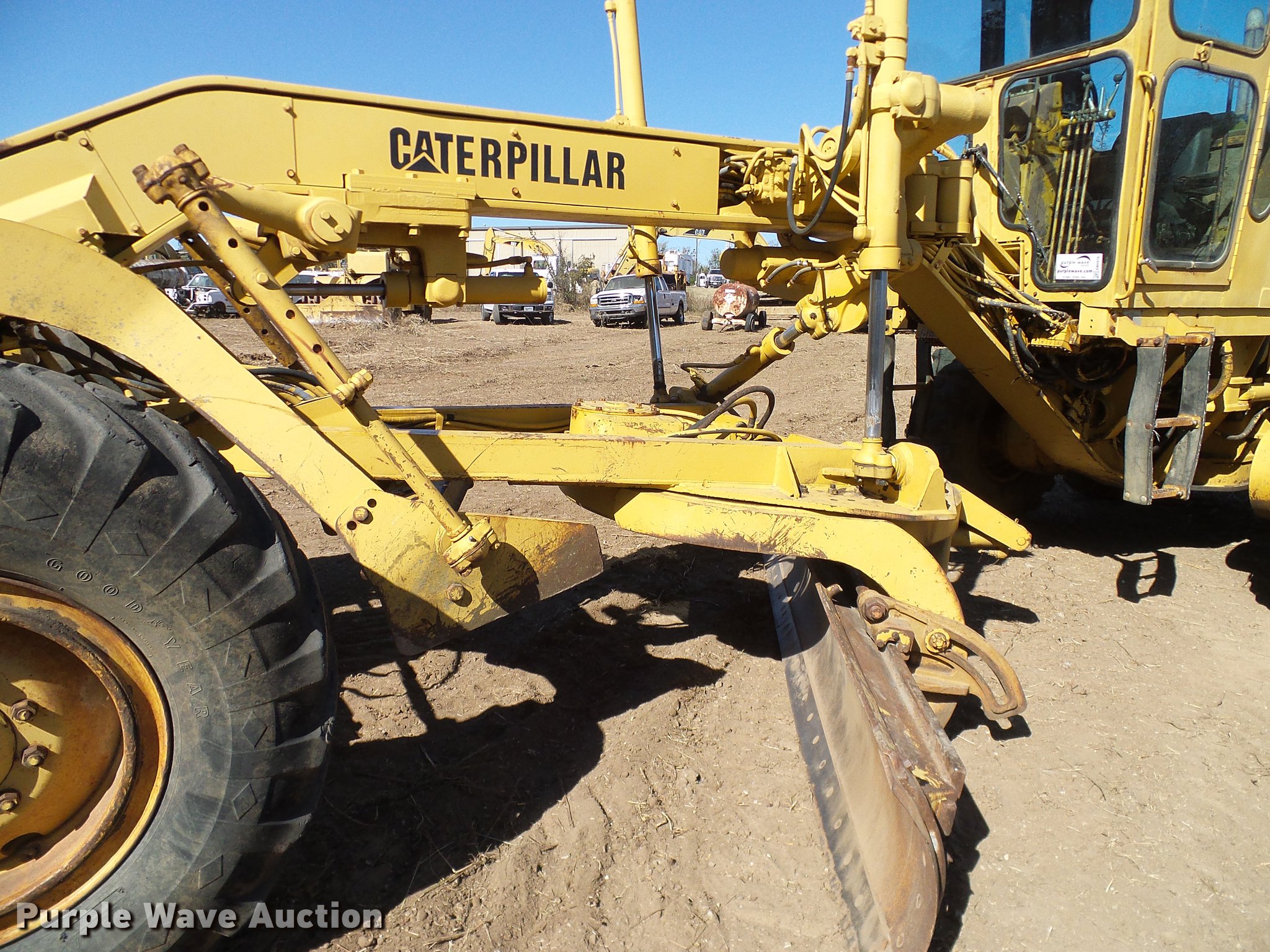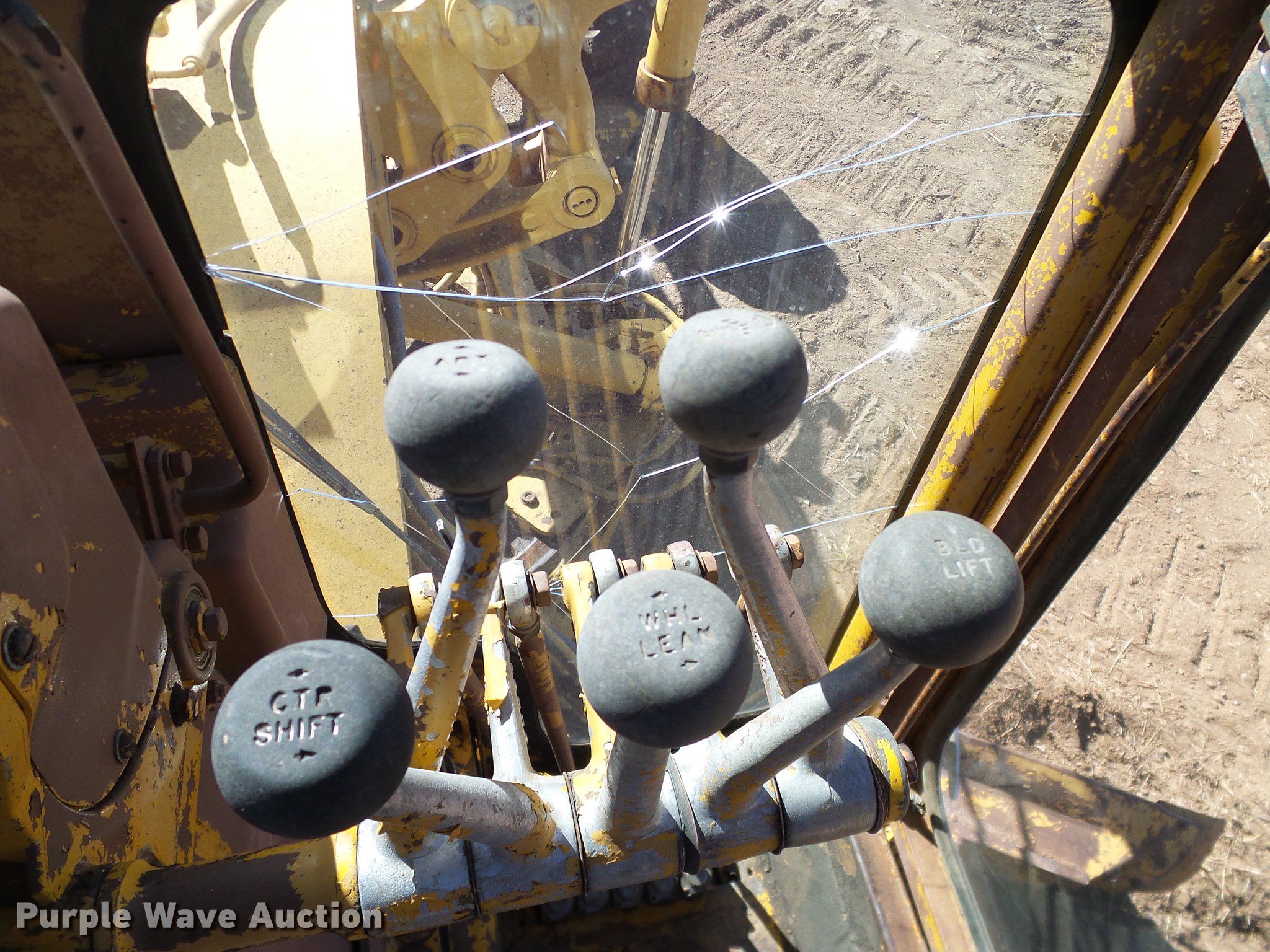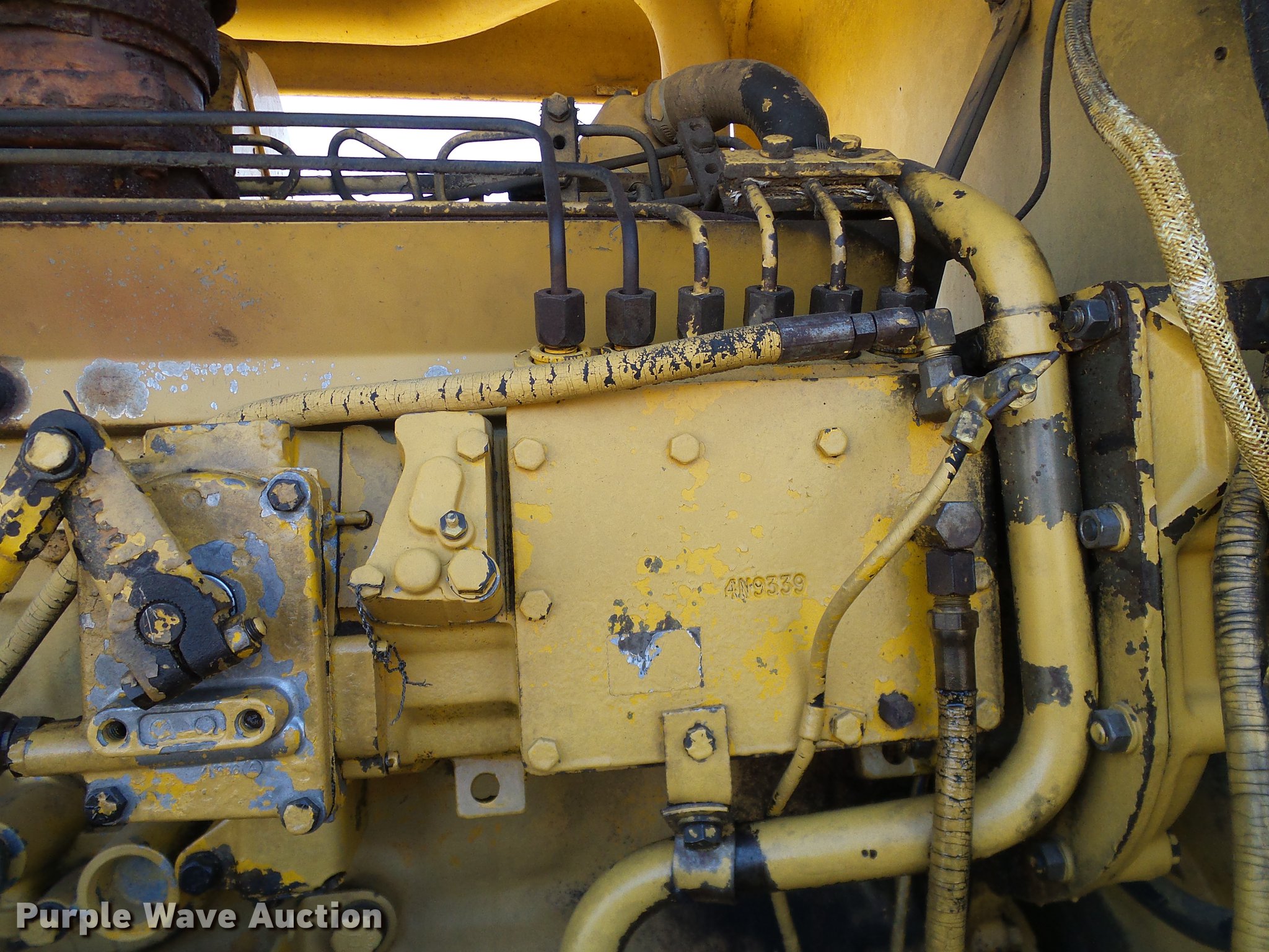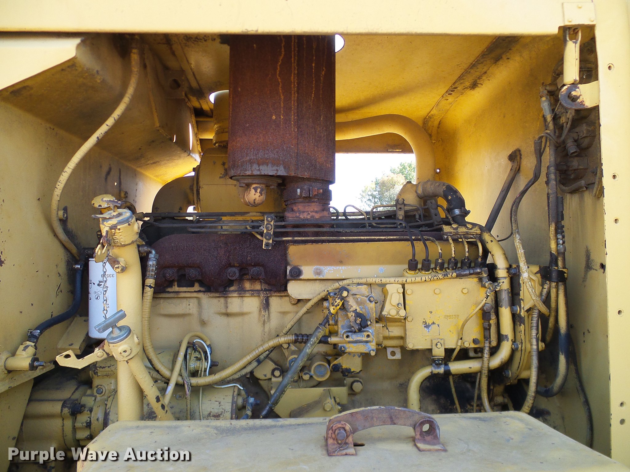 Purple Wave is selling a used Motor Grader in Oklahoma. This item is a 1976 Caterpillar 12G motor grader with the following: 608 hours on meter, Caterpillar 3306PC six cylinder turbo diesel engine, Serial 3N4536, Powershift transmission, 6F-6R gears, Differential lock, EROPS, Tilt steering, Suspension seat, Nine control valves, 14'W moldboard, Tip control, Side shift, Blade accumulators, Circle slip clutch, Front mounted scarifier, Rear pin hitch, 14.00-24 tires, Glass cracked, Serial 61M3693