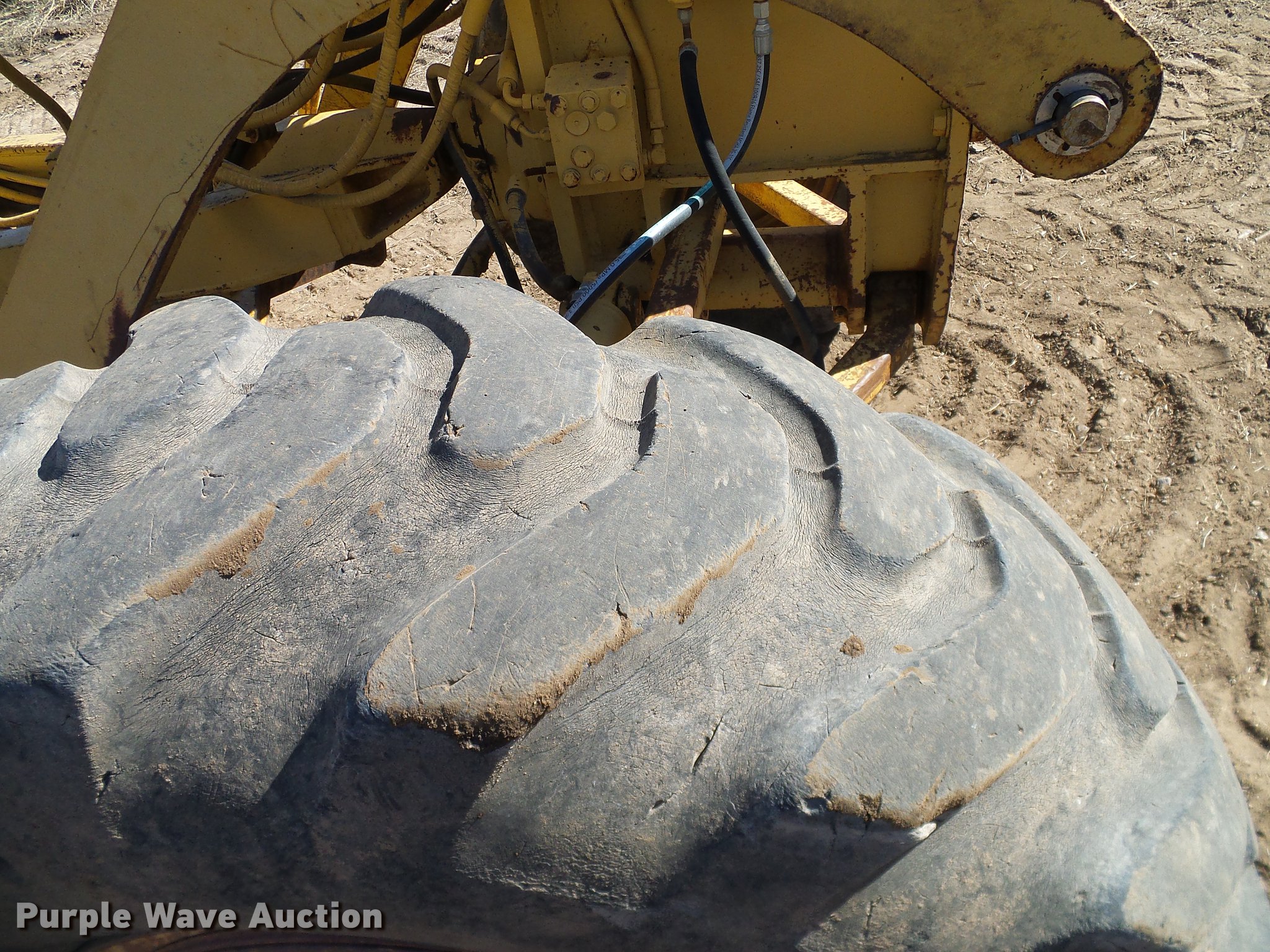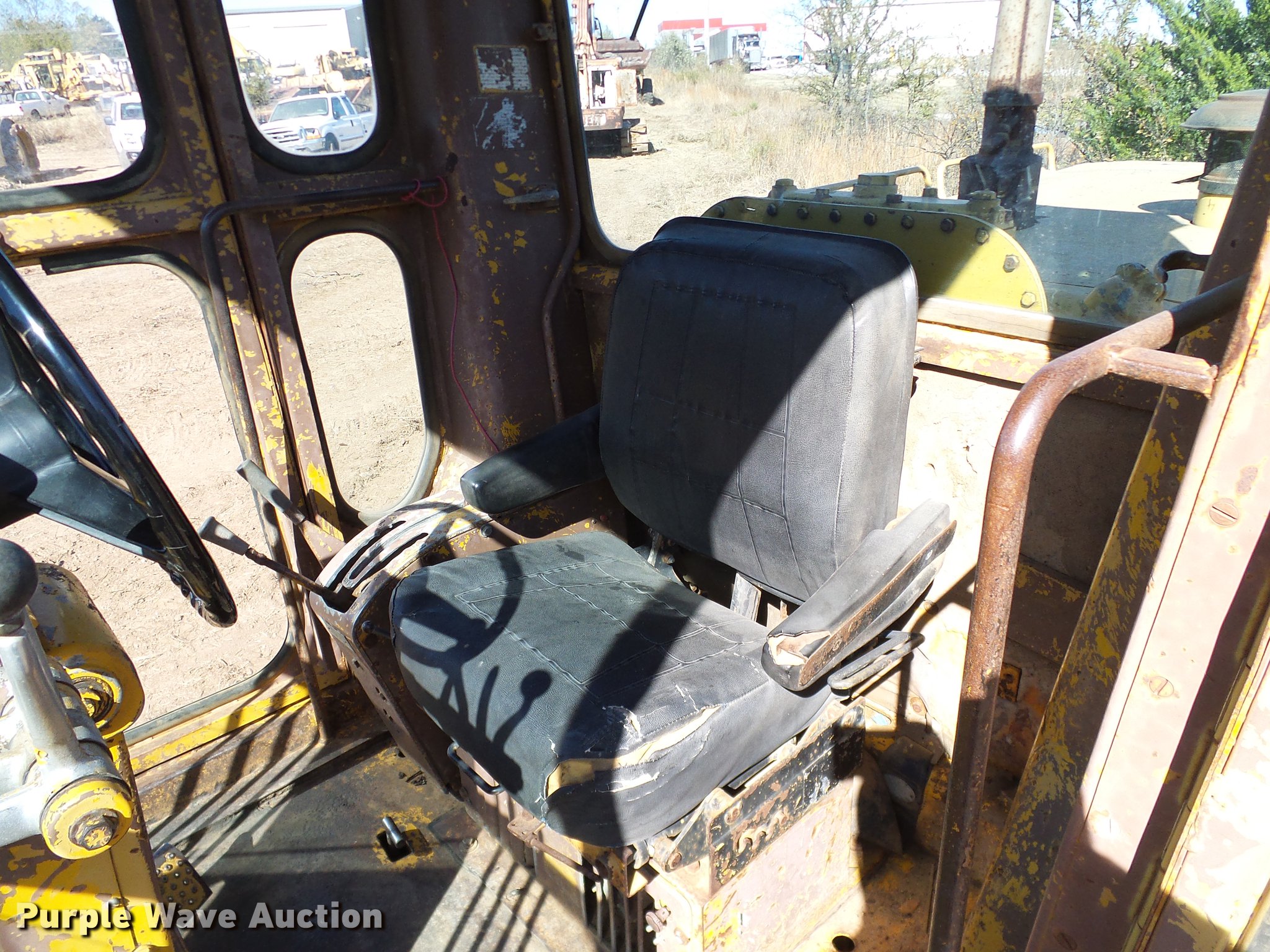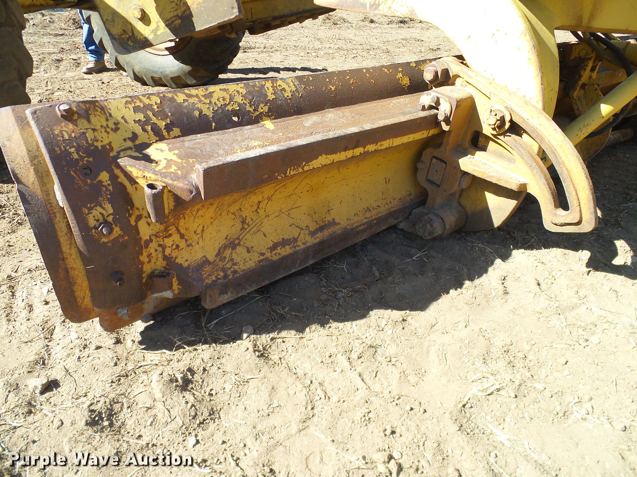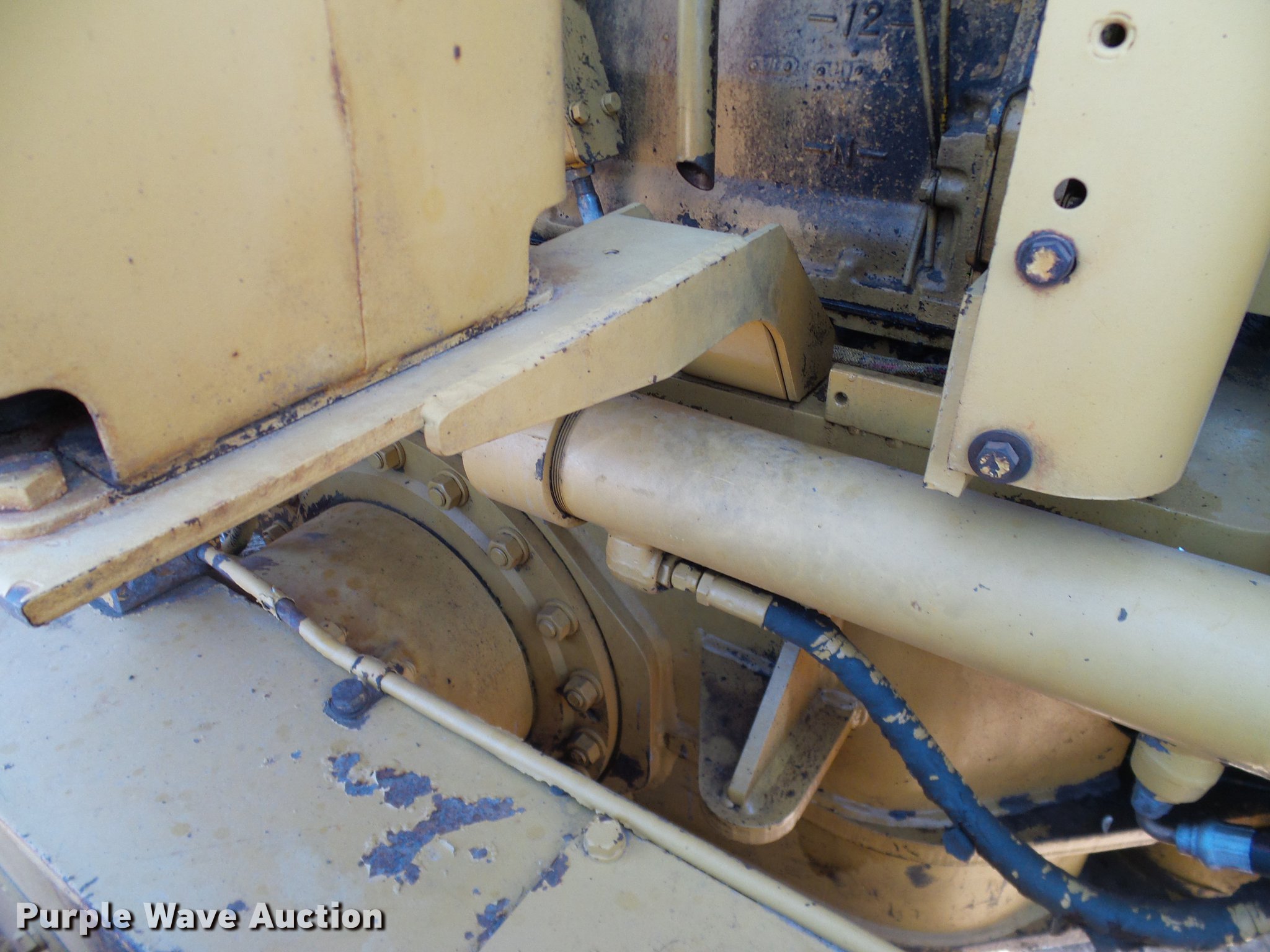 Purple Wave is selling a used Motor Grader in Oklahoma. This item is a 1976 Caterpillar 12G motor grader with the following: 608 hours on meter, Caterpillar 3306PC six cylinder turbo diesel engine, Serial 3N4536, Powershift transmission, 6F-6R gears, Differential lock, EROPS, Tilt steering, Suspension seat, Nine control valves, 14'W moldboard, Tip control, Side shift, Blade accumulators, Circle slip clutch, Front mounted scarifier, Rear pin hitch, 14.00-24 tires, Glass cracked, Serial 61M3693