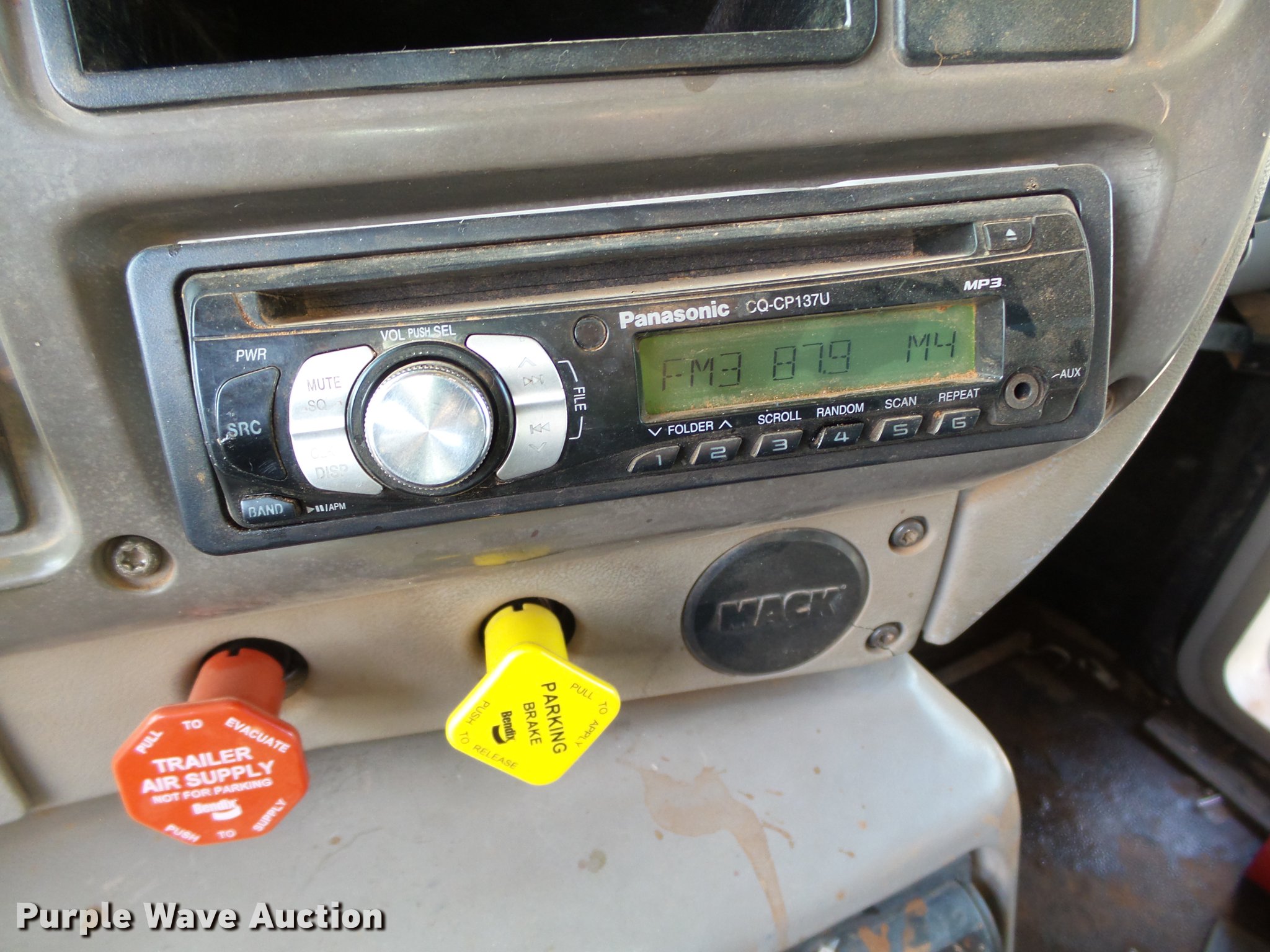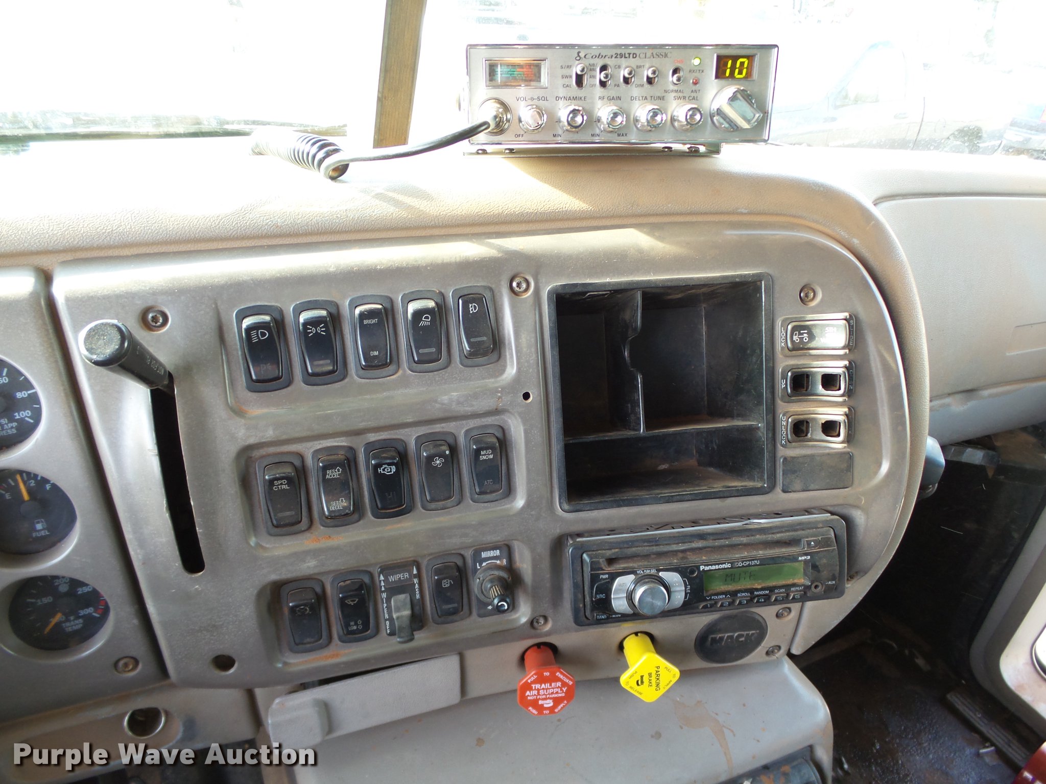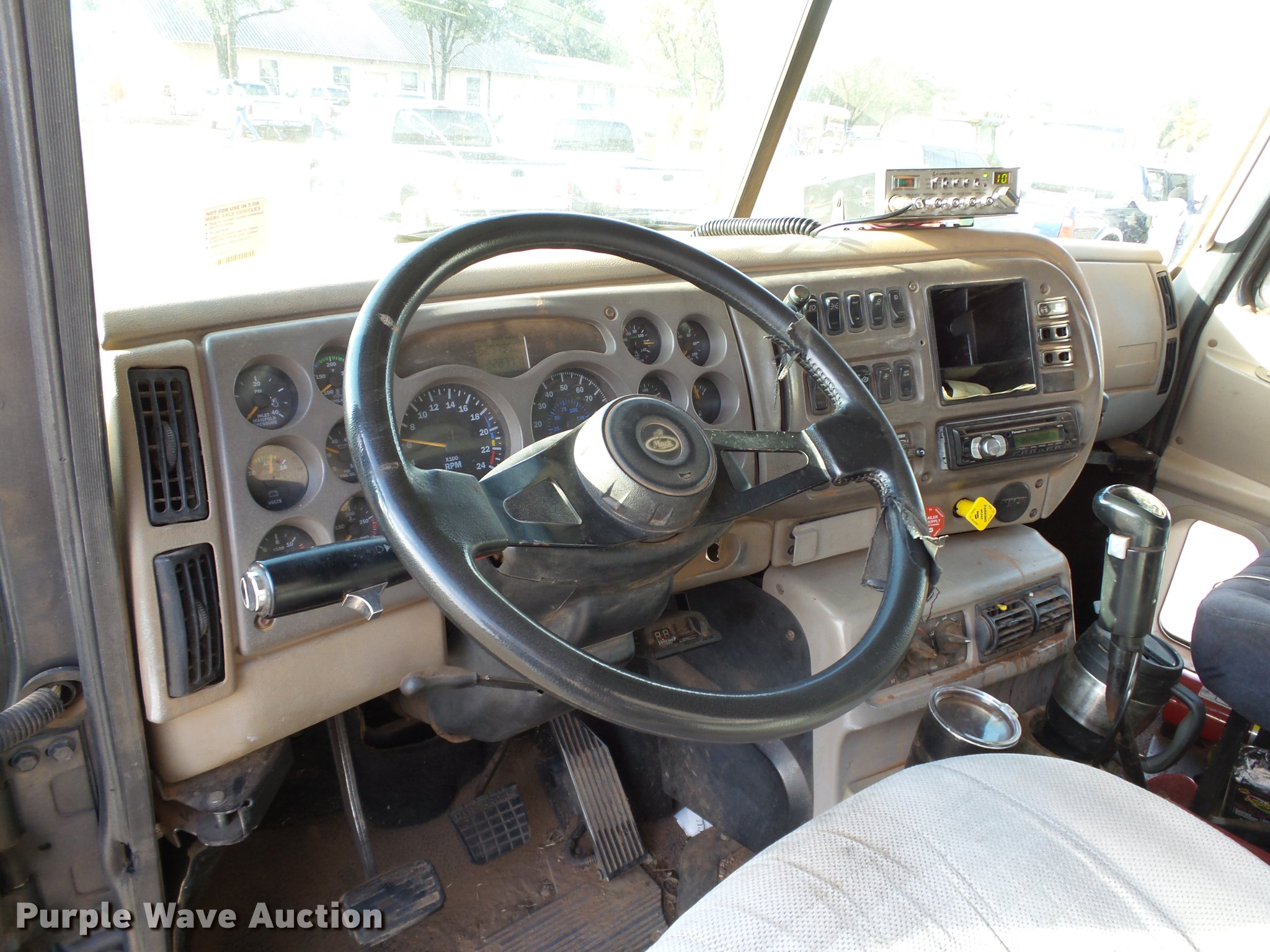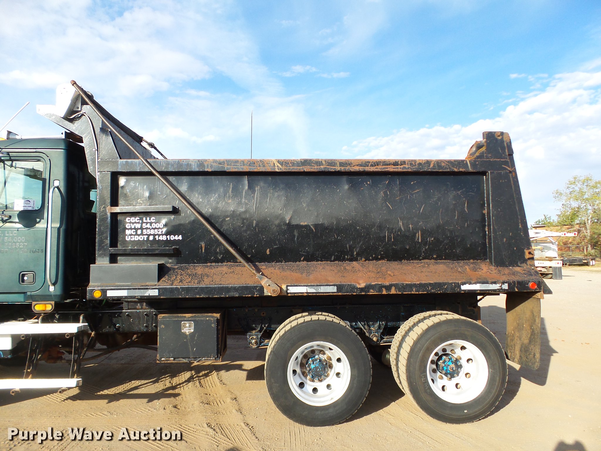 Purple Wave is selling a used Construction Dump Truck in Oklahoma. This item is a 2001 Mack CH613 dump truck with the following: 629,795 miles on odometer, 22,877 hours on meter, Mack E7 12.0L L6 turbo diesel engine, Serial 051545, Eaton Fuller 10 speed manual transmission, Tandem axle, AC and heat, Tilt, Cruise, AM/FM/CD, Power windows, Power and heated mirrors, Air suspension seat, Air ride cab, Front tow hooks, Exterior visor, PTO, 14'L x 96"W steel dump bed, 52" side height, Single ram hoist, Roll tarp, Air operated end gate, Single fuel tank, Pintle hitch, 188" wheelbase, Air suspension, Air brakes, 285/75R22.5 tires, GVWR 54,000 lbs, FAWR 14,000 lbs, IAWR 20,000 lbs, RAWR 20,000 lbs