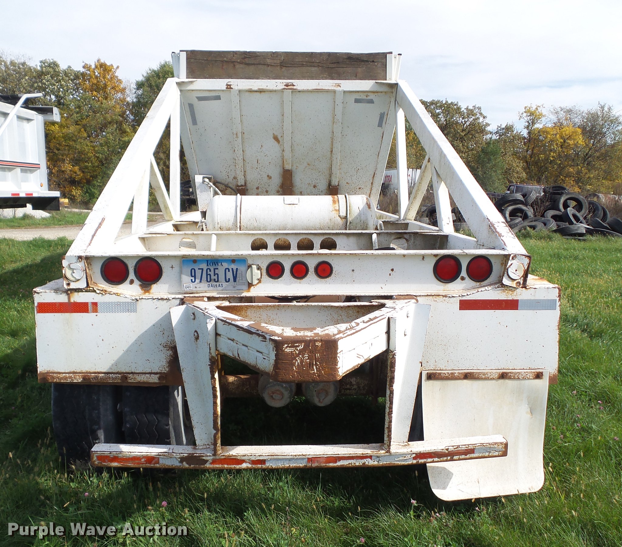 Purple Wave is selling a used Bottom Dump Trailer in Iowa. This item is a 1995 Landoll bottom dump trailer with the following: 40'L x 96"W, 12" side board height, Electric over air operated clamshell gate, Rear push block, Steel construction, Fifth wheel plate, Dual leg landing gear, Spring suspension, Air brakes, Tandem axle, Aluminum wheels, 11R22.5 tires