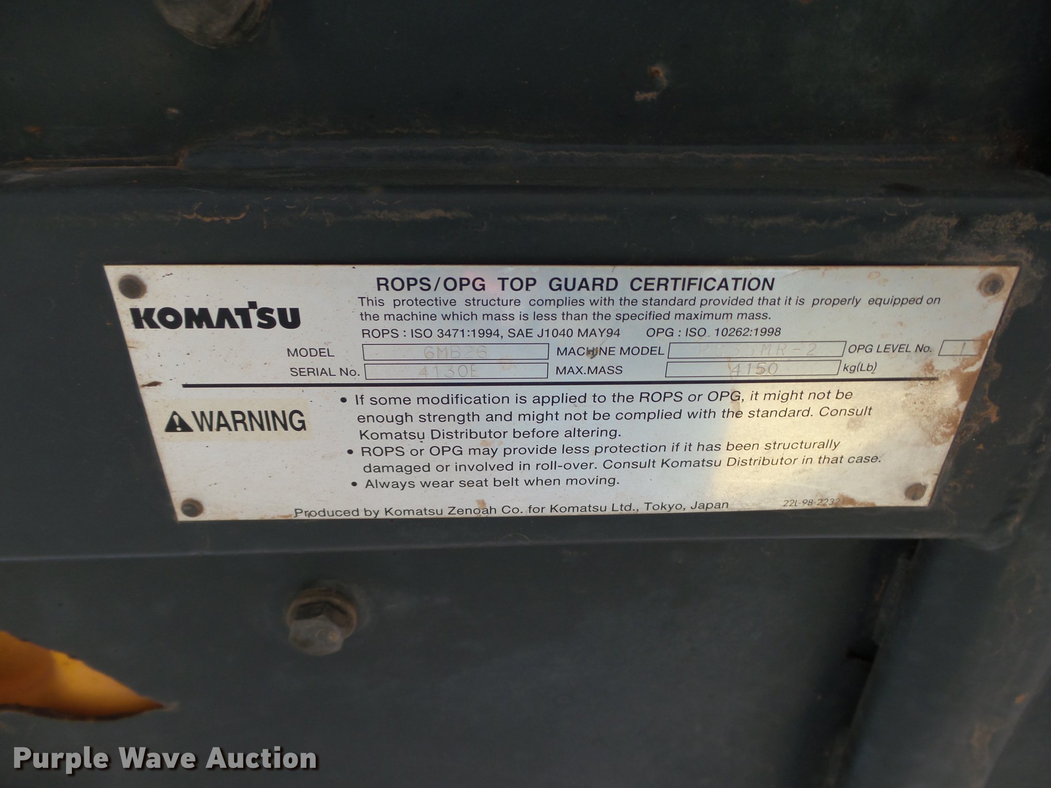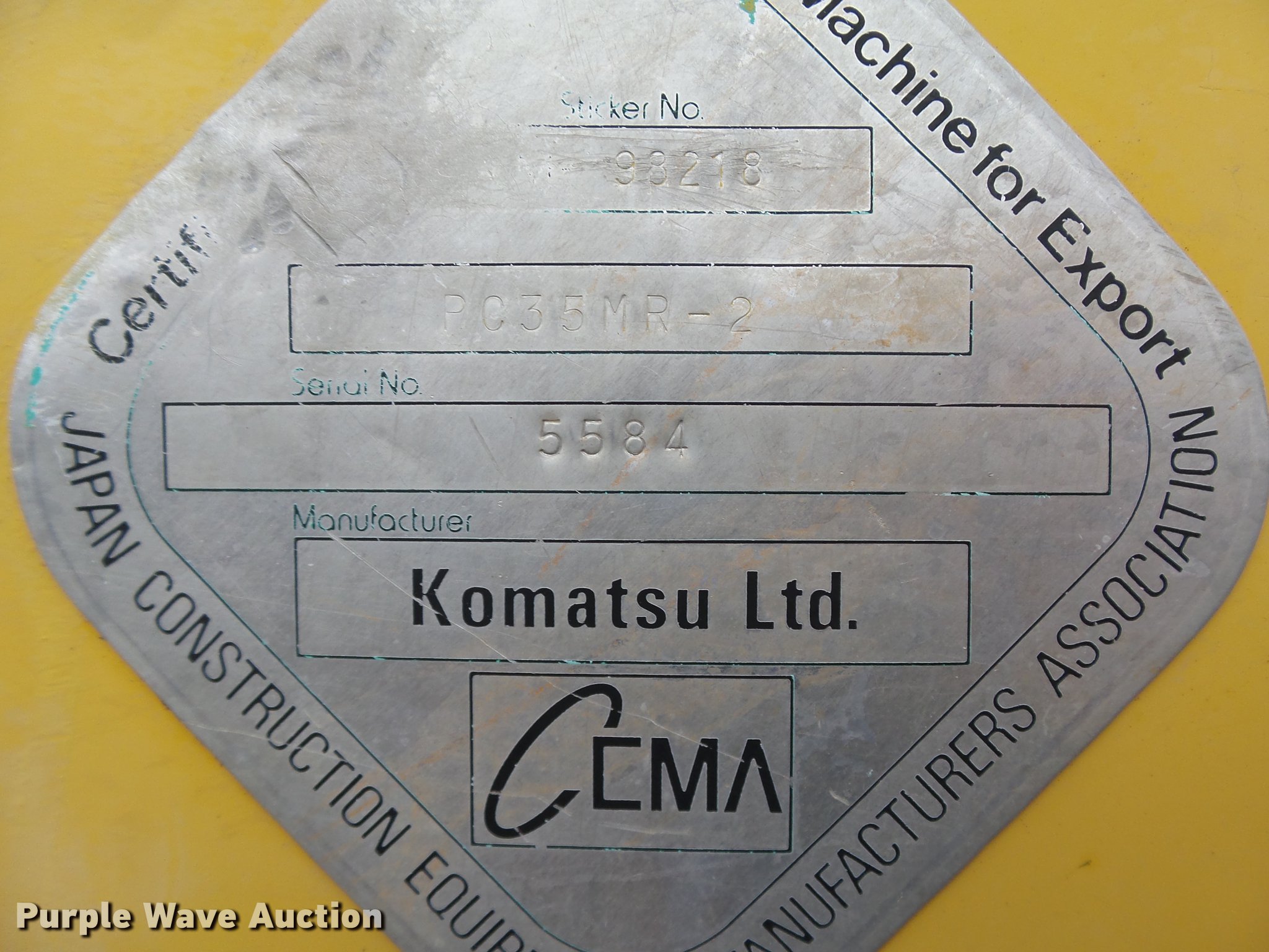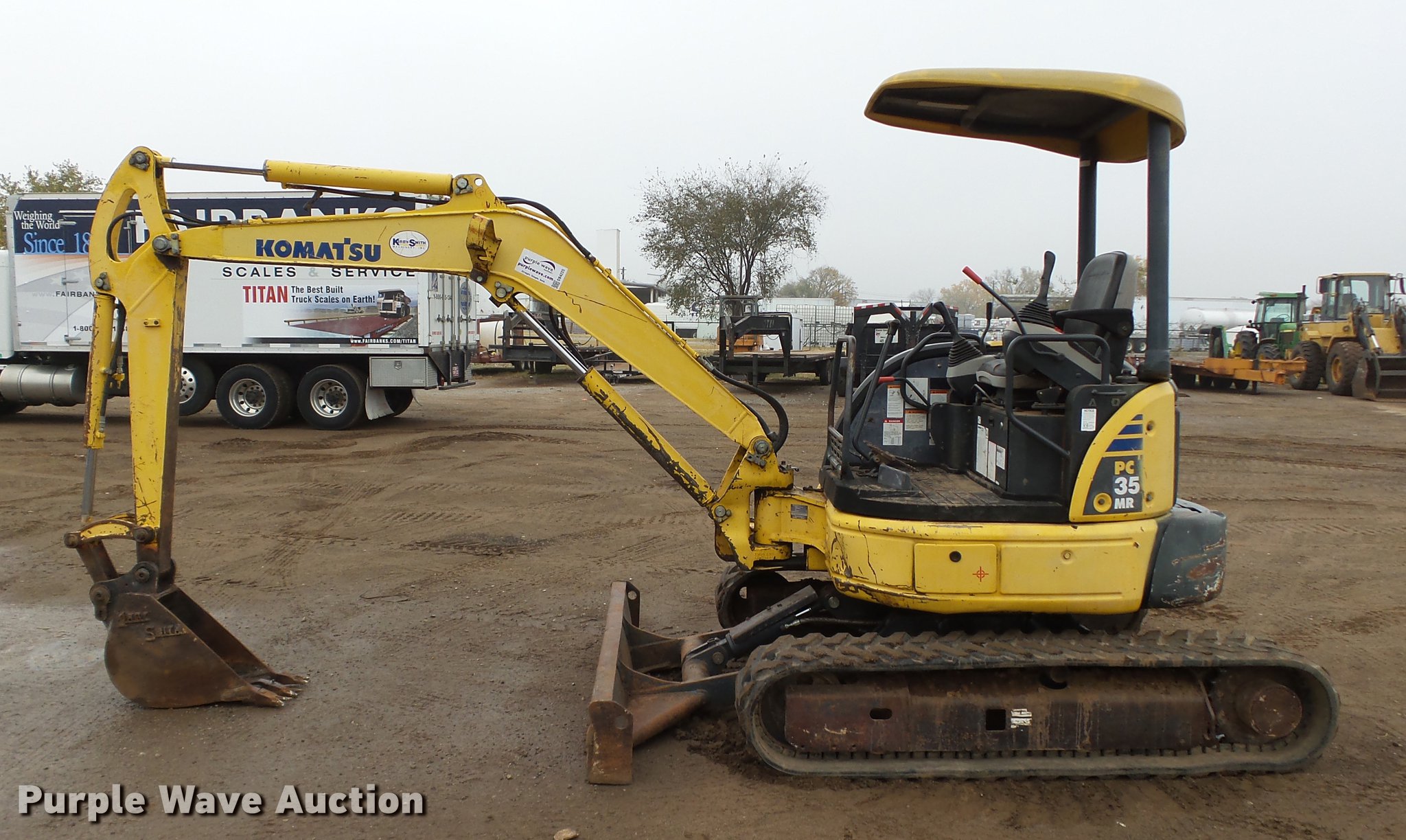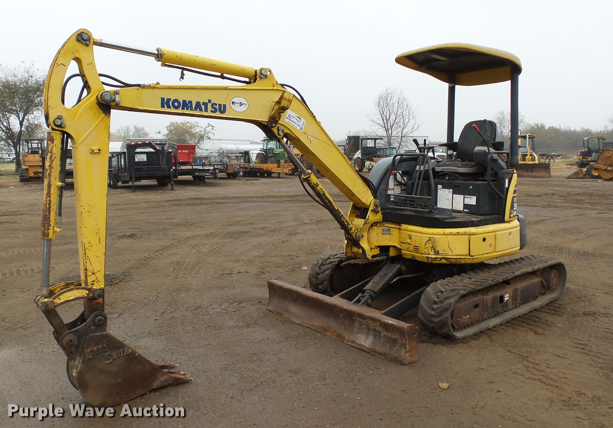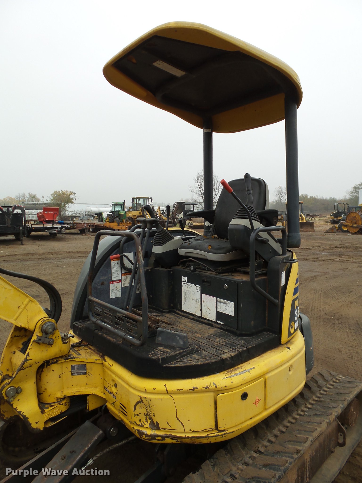 Purple Wave is selling a used Mini Excavator in Oklahoma. This item is a 2004 Komatsu PC35MR-2 compact excavator with the following: 26 hours on meter, Yanmar 3D88E-5P three cylinder diesel engine, 30 HP, Hydrostatic transmission, OROPS, Suspension seat, Standard boom, 4.5' stick length, 9.5"W bucket, (3) bolt-on teeth, 68"W backfill blade, 12"W rubber tracks, Serial KMTPC096K05005584