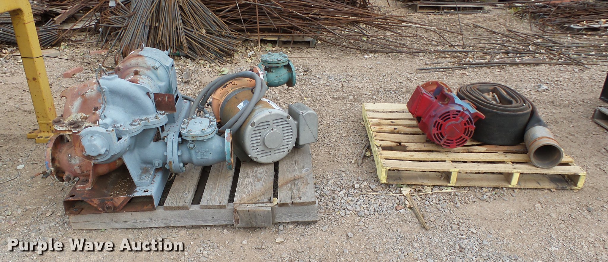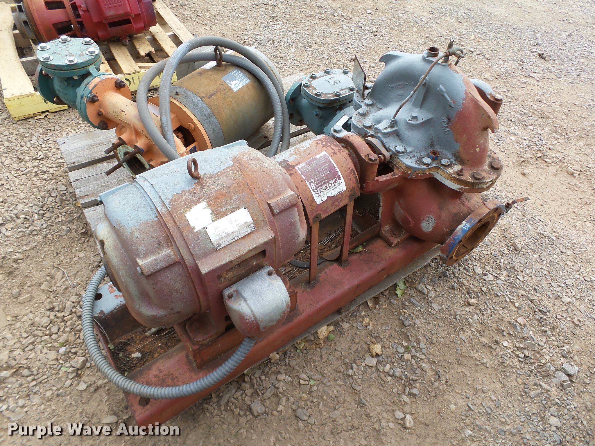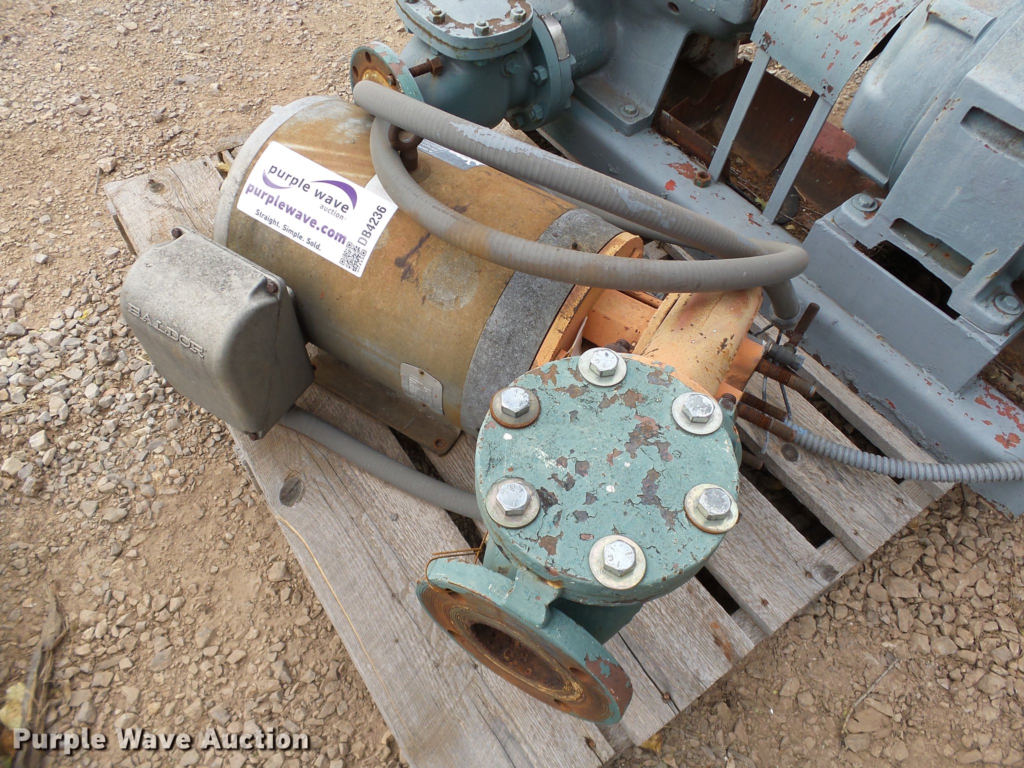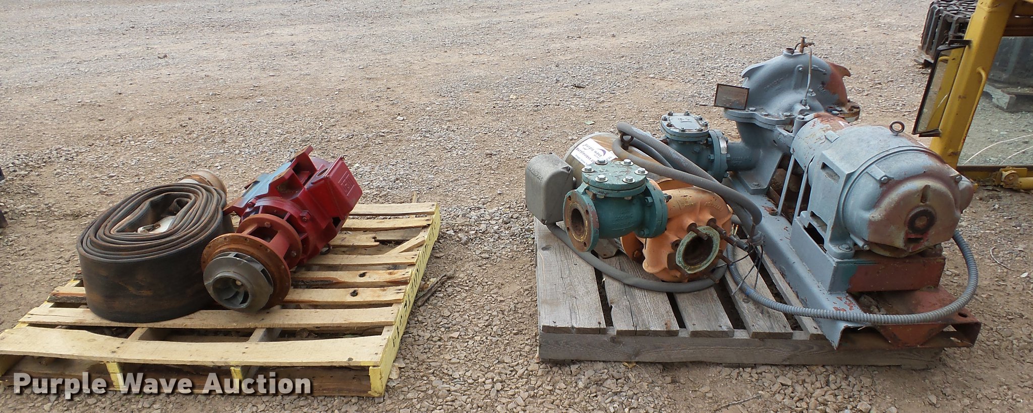 Purple Wave is selling a used Pump in Oklahoma. This item is a (3) pumps with the following: 5" pump, Three phase motor, 95 HP, Serial R9562-00-392, 3" pump, Blador motor, 80 Hz,, 5" bell and Gossett pump, Nema motor, 15 HP,, Hose not included