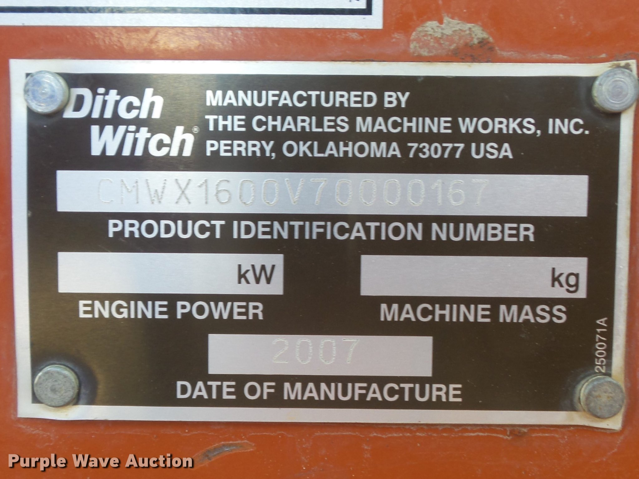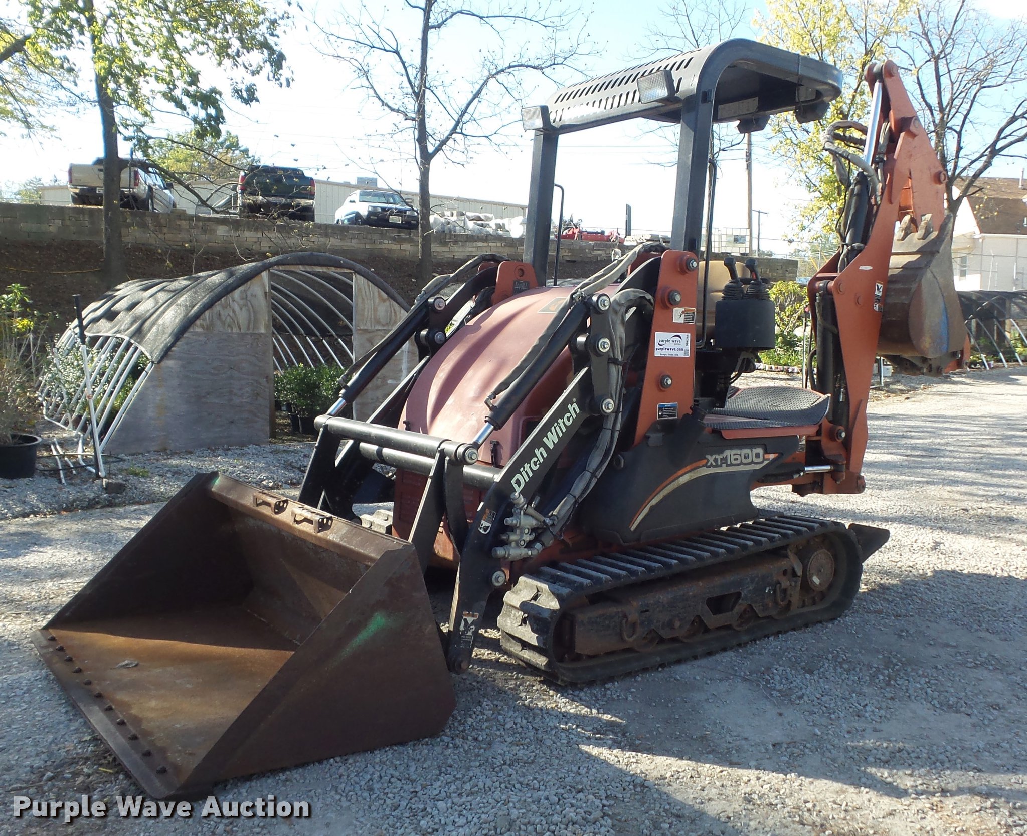 Purple Wave is selling a used Compact Utility Loader in Missouri. This item is a 2007 Ditch Witch XT1600 tool carrier with the following: 575 hours on meter, Kubota V2003 four cylinder turbo diesel engine, 59 HP, Serial 06N0470, Hydrostatic transmission, 3.5 mph low speed, 6.8 mph high speed, OROPS, Wobble stick backhoe controls, Pilot controls, Front and rear work lights, Integrated tool carrier, 73"W loader bucket, Bolt-on cutting edge, Hydraulic quick coupler, Front auxiliary hydraulics, High flow auxiliary hydraulics, 26 gpm at 3,000 psi high flow, 15 gpm at 3,000 psi standard flow, Auxiliary electrical outlet, 260 degree swing, 134" max digging depth, 24"W backhoe bucket, (5) teeth, 8"W backhoe bucket, (2) teeth, Manual backhoe quick coupler, 12"W rubber tracks, Serial CMWX1600V70000167