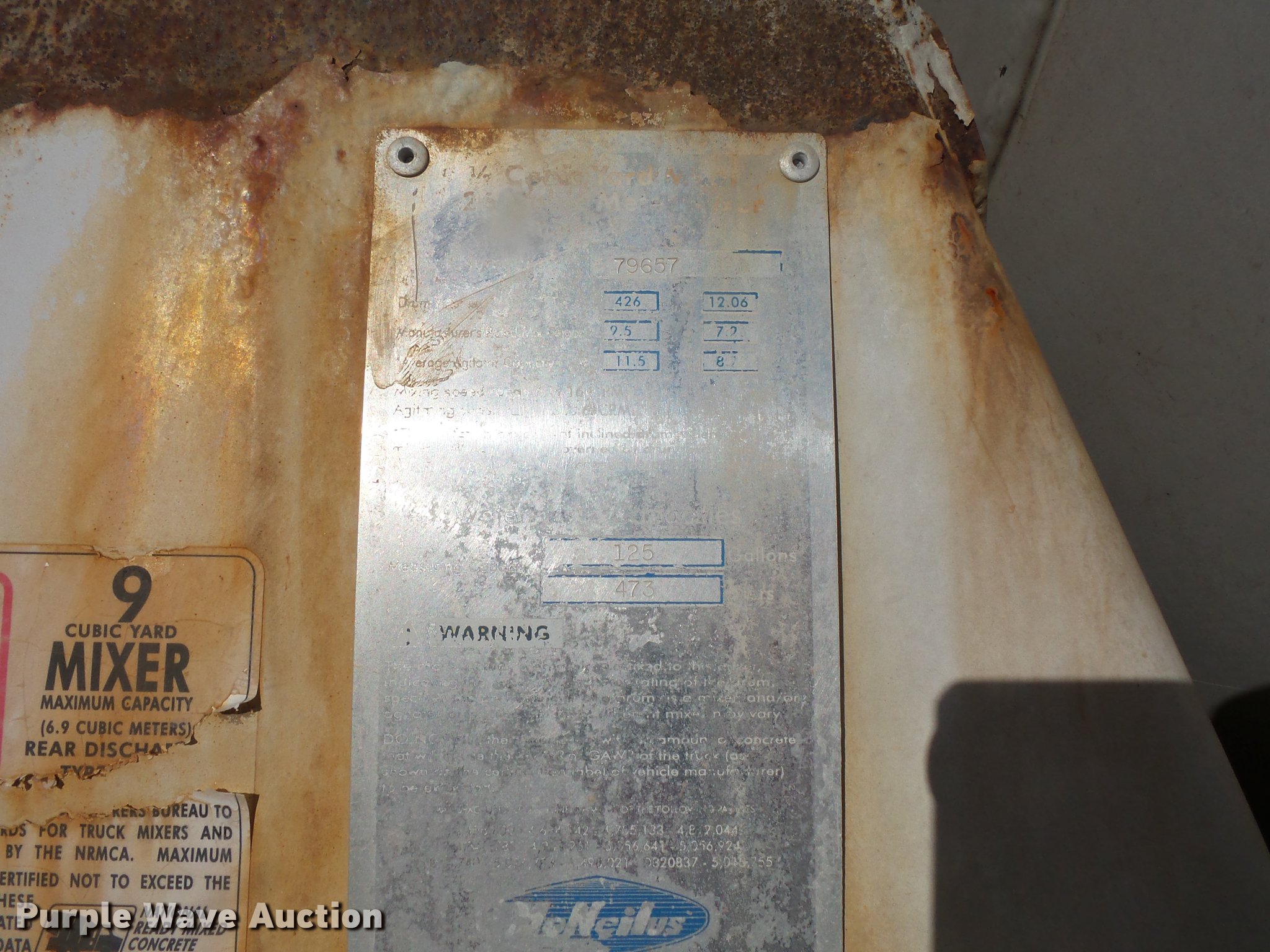 Purple Wave is selling a used Ready Mix or Pump Truck in Iowa. This item is a 2007 Sterling L8500 ready mix truck with the following: Unknown miles on odometer, Cummins ISC 8.3L L6 diesel engine, Eaton Fuller Road Ranger RTO-9ML16 eight speed manual transmission, Inter-axle differential lock, Tandem axle, AC and heat, AM/FM/CD, Heated mirrors, Air suspension seat, Air ride cab, PTO, McNeilus steel mixer bed, 9.5 cu.yd. cpacity, 125 gallon water tank, (3) chute extensions, Ladder, Rear discharge, Serial 79657, 224" wheelbase, Walking beam suspension, Air brakes, 11R22.5 tires, GVWR 71,020 lbs, FAWR 20,000 lbs, IAWR 20,000 lbs, RAWR 20,000 lbs, 11,020 lbs tag axle, Non-operational vehicle