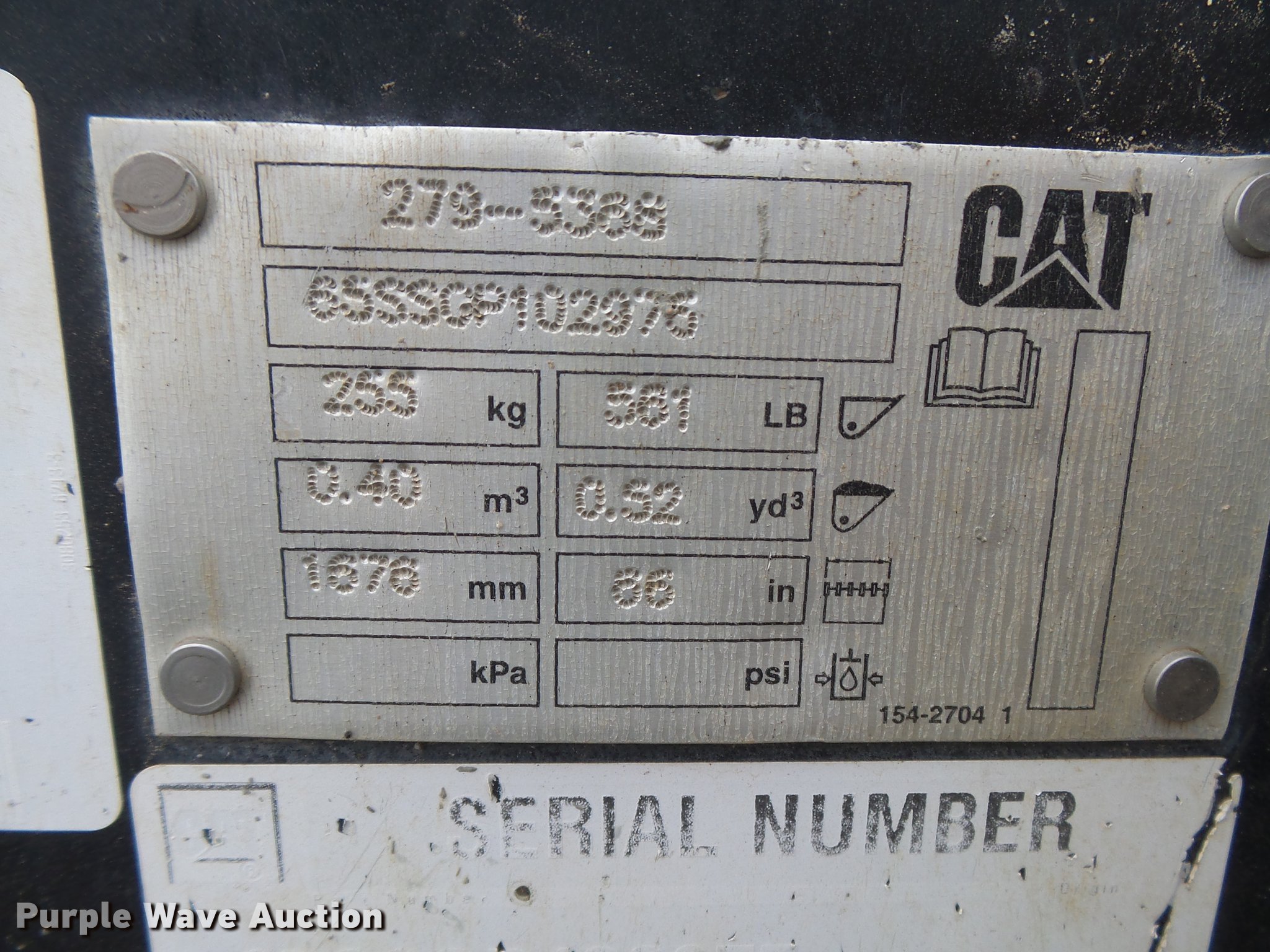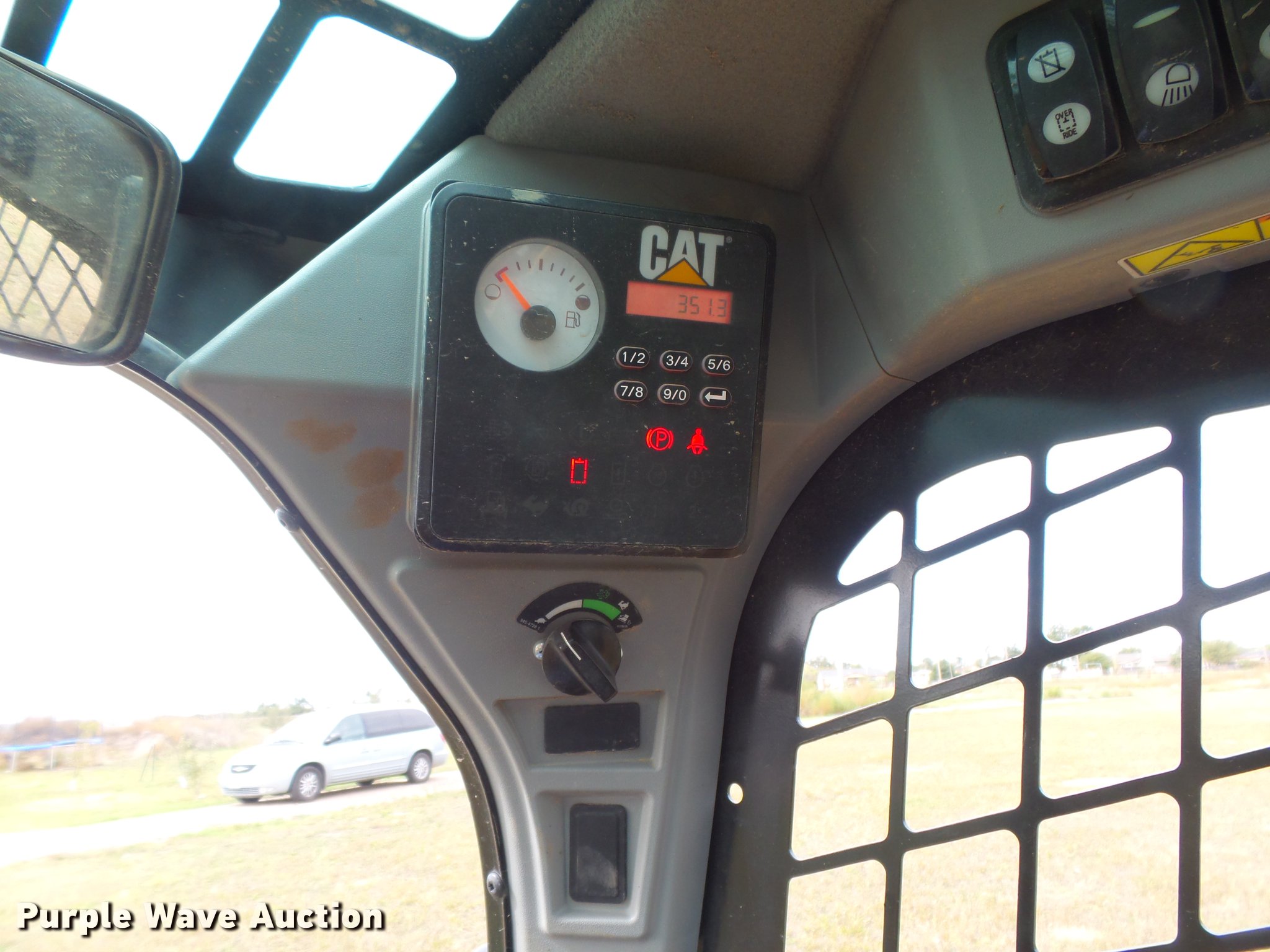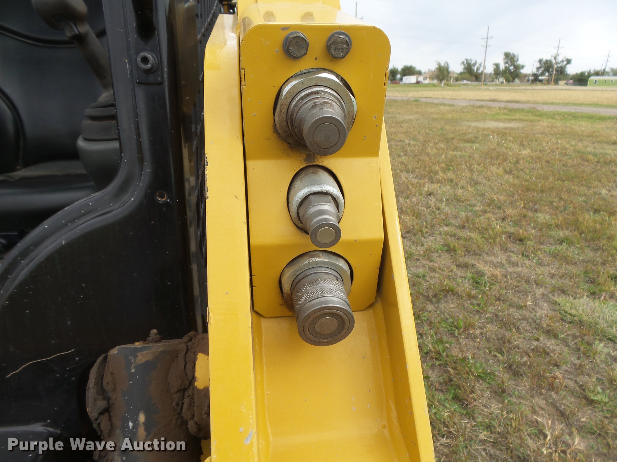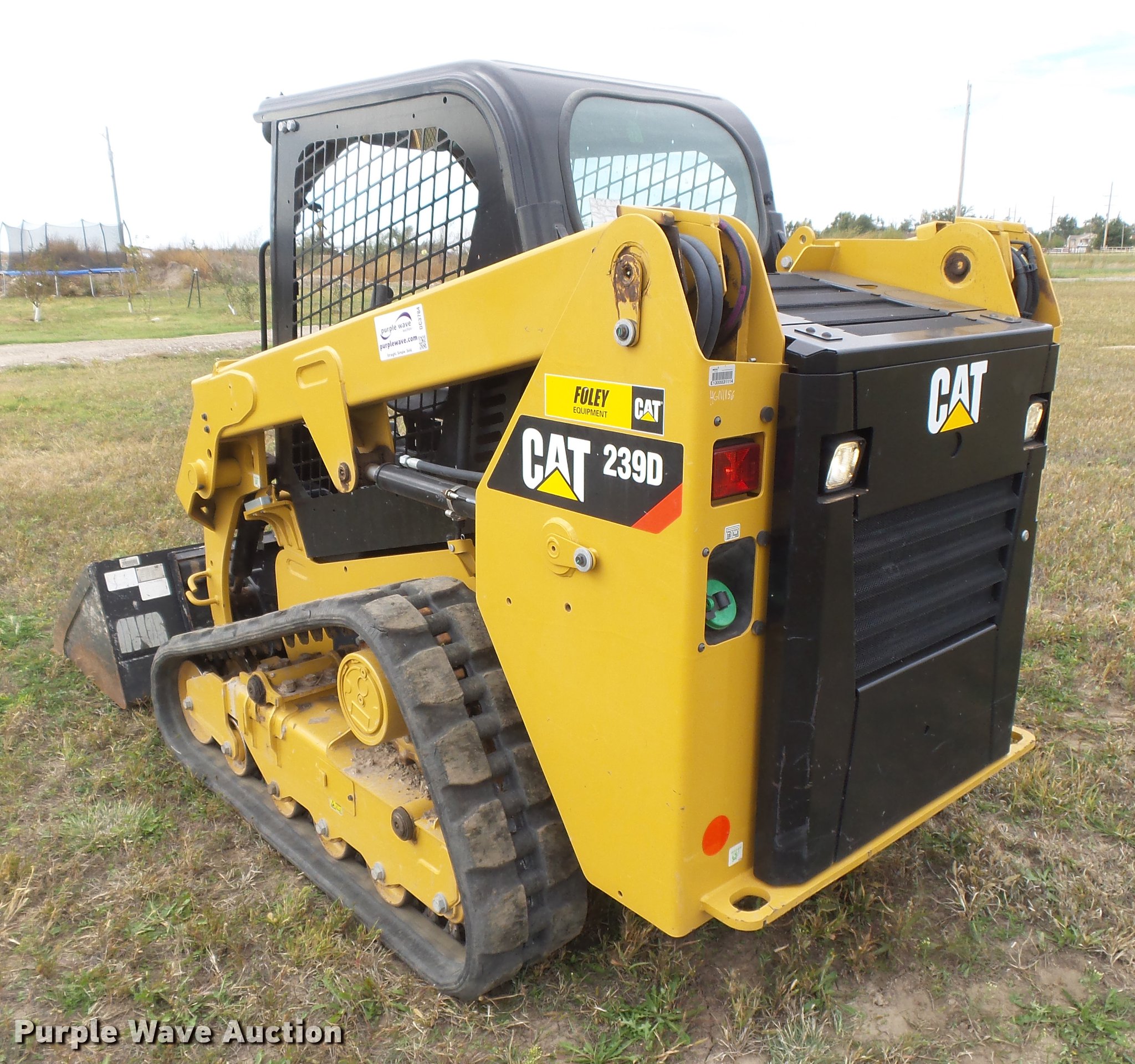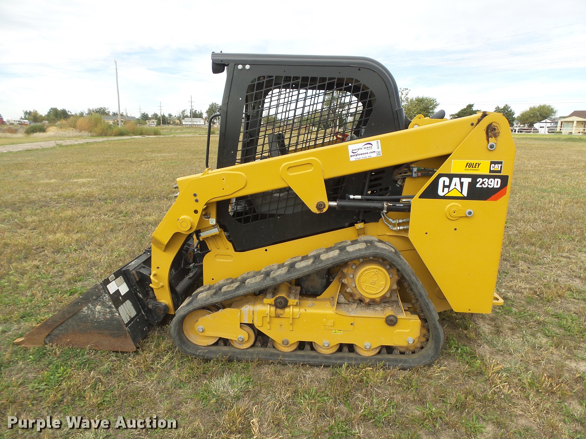 Purple Wave is selling a used Tracked Skid Steer Loader in Kansas. This item is a 2016 Caterpillar 239D skid steer with the following: 351 hours on meter, Caterpillar C2.2L four cylinder turbo diesel engine, Hydrostatic transmission, Open station/canopy, Joystick controls, Air suspension seat, Front and rear work lights, Backup alarm, Caterpillar 279-5355 67"W bucket, .52 cu.yd. capacity, Weld-on cutting edge, Bolt-on teeth, Manual quick coupler, Auxiliary hydraulics, Caterpillar 12"W tracks, Serial 0239DLBL900908