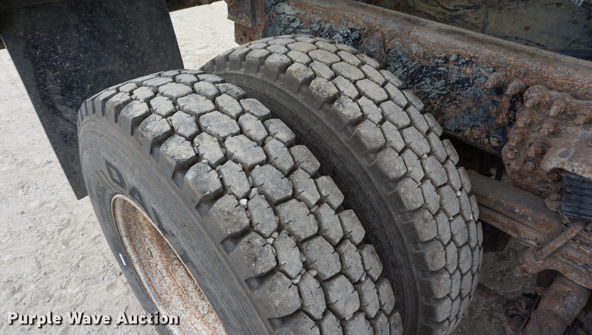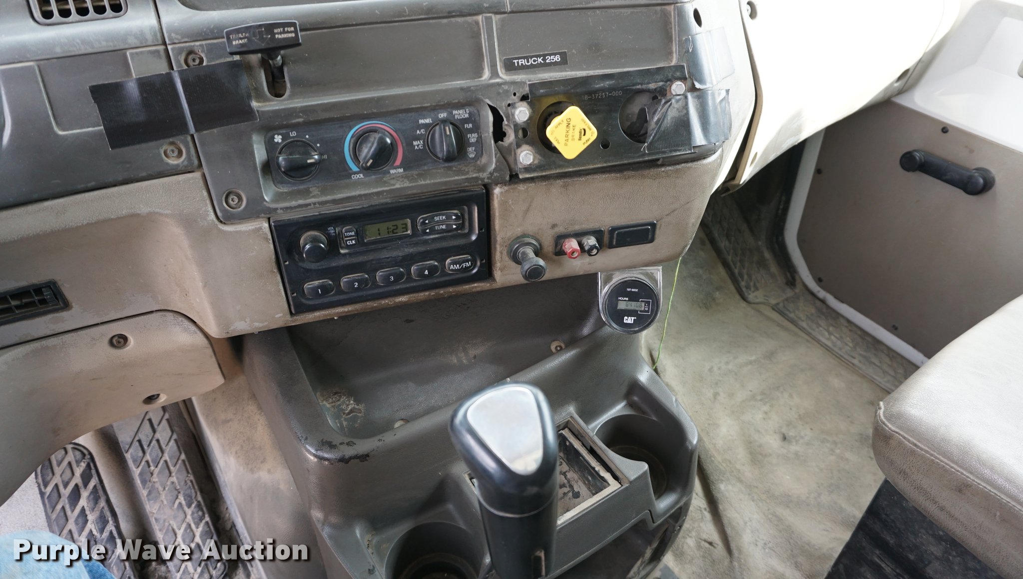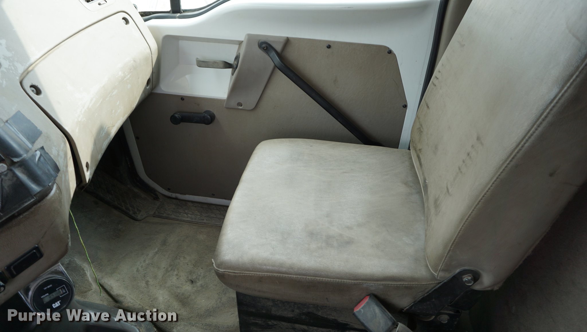 Purple Wave is selling a used Construction Dump Truck in Kansas. This item is a 2001 Sterling L9500 dump truck with the following: 315,853 miles on odometer, 8,410 hours on meter, Caterpillar C10 10.3L L6 turbo diesel engine, 275 HP, Eaton Fuller 10 speed manual transmission, Tandem axle, Inter-axle differential lock, AC and heat, Cruise, AM/FM, Air suspension seat, PTO, 15'L x 96"W steel dump bed, 44" side height, 8" side board height, Bed liner, Air operated end gate, Single ram hoist, Dual fuel tanks, Spring suspension, Air brakes, 11R22.5 tires, GVWR 53,220 lbs, FAWR 13,220 lbs, IAWR 20,000 lbs, RAWR 20,000 lbs, Front leaf springs broken, Cracked windshield