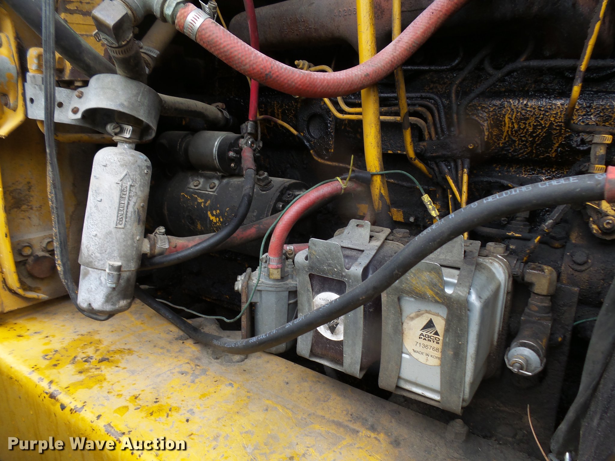 Purple Wave is selling a used Wheel Loader in Nebraska. This item is a 1973 Allis Chalmers 940 wheel loader with the following: 8,972 hours on meter, Allis Chalmers six cylinder turbo diesel engine, Shuttle shift transmission, 3F-3R gears, Four wheel drive, Enclosed cab, Heat, Joystick controls, Front work lights, Backup alarm, Block heater, Bucket, Bolt-on smooth cutting edge, 2.5 cu. yd. capacity, Self-leveling, Counterweight, 17.5-25 tires, Non-operational rear differential, Cracked windshield, Serial 940-1175