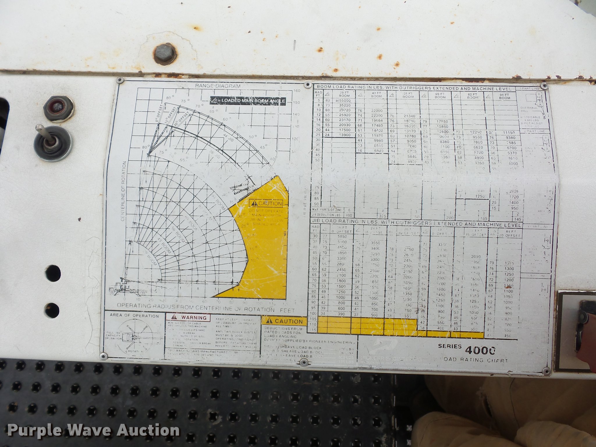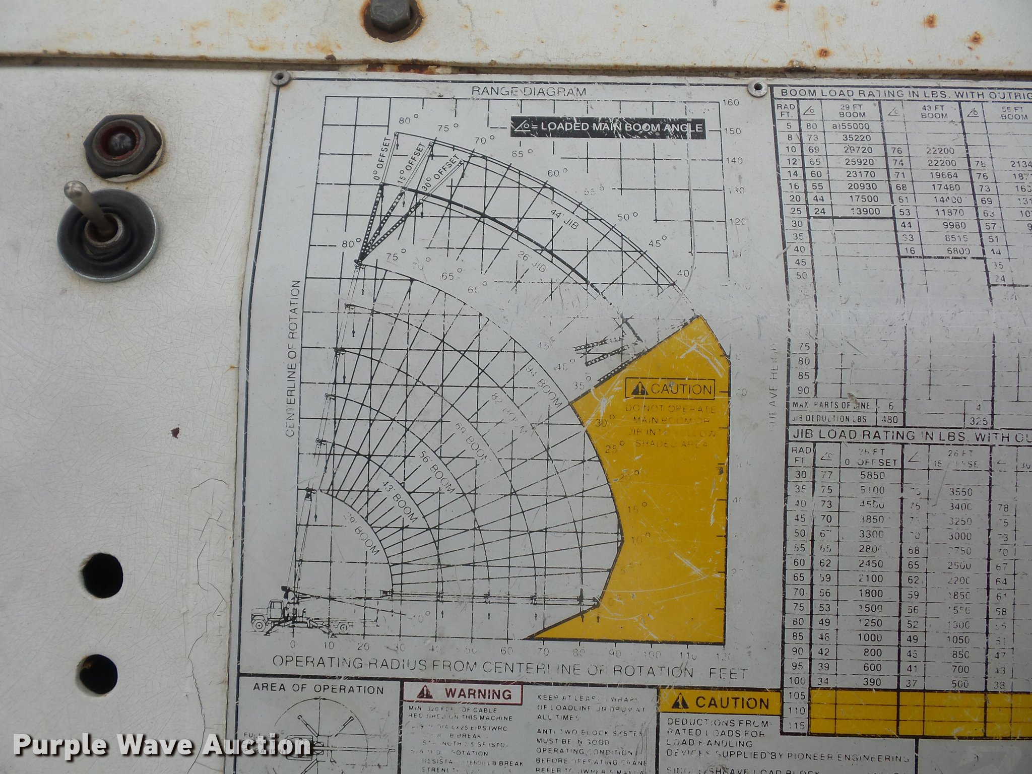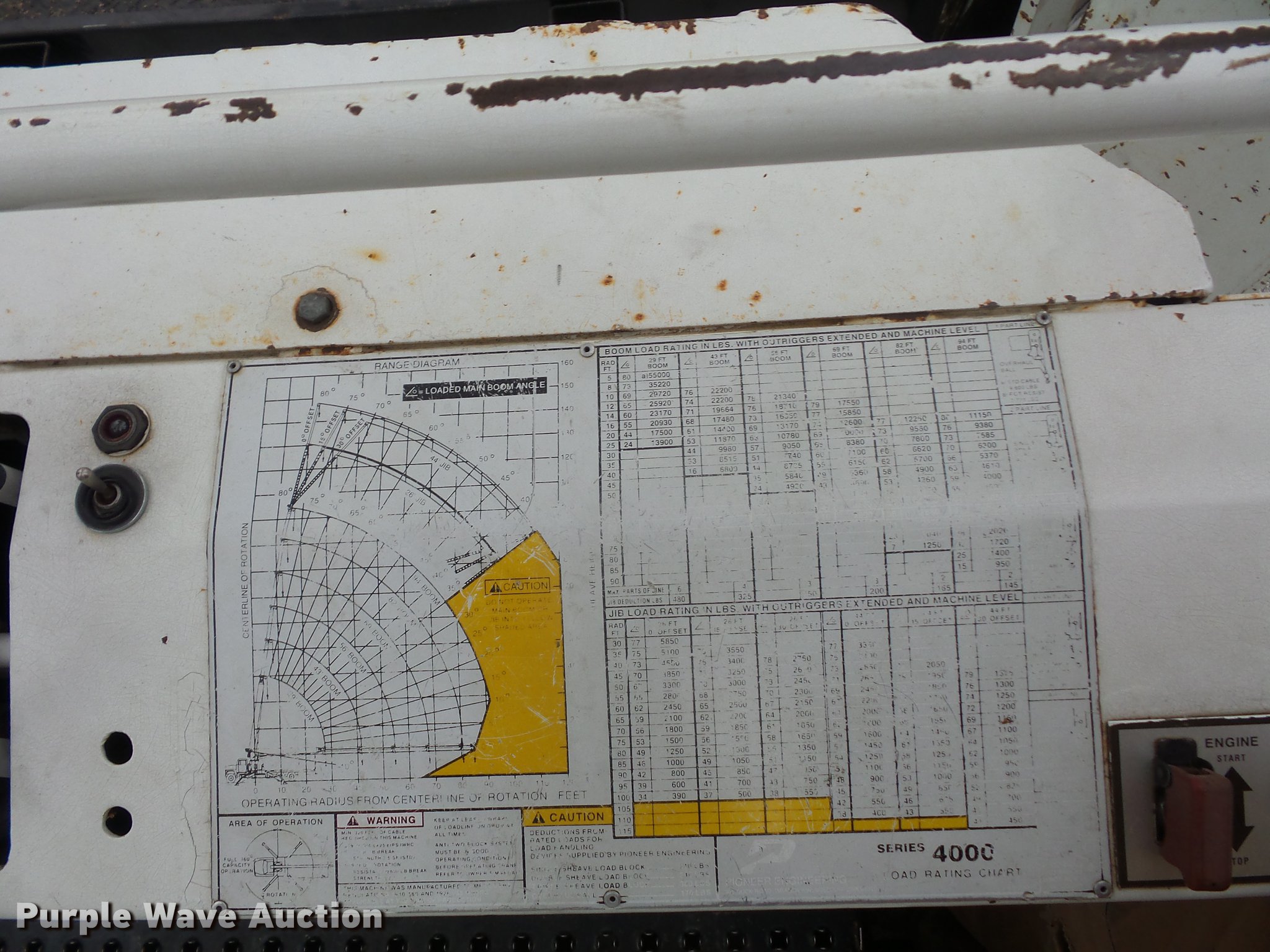 Purple Wave is selling a used Crane Truck in Missouri. This item is a 1999 Freightliner FL112 crane truck with the following: 88,384 miles on odometer, Caterpillar C12 12.0L L6 turbo diesel engine, Eaton Fuller eight speed manual transmission, Tandem axle, AC and heat, Cruise, AM/FM, 18'L x 102"W flatbed, Pioneer Series 4000 crane, 55,000 lbs maximum lift capacity, 104'10" maximum lift height, 148' maximum lift height with jib, 26 to 44' offset jib, Ground boom controls, Boom rotation, Crane ball & hook, Telescopic boom, (4) outriggers, Walking beam suspension, Air brakes, 385/65R22.5 front tires, 11R22.5 rear tires, GVWR 58,000 lbs