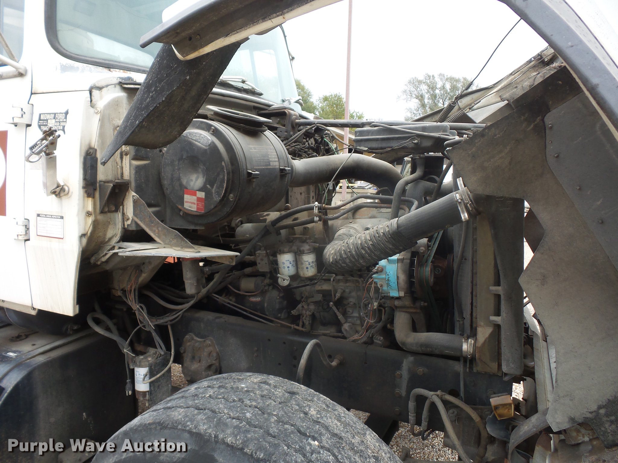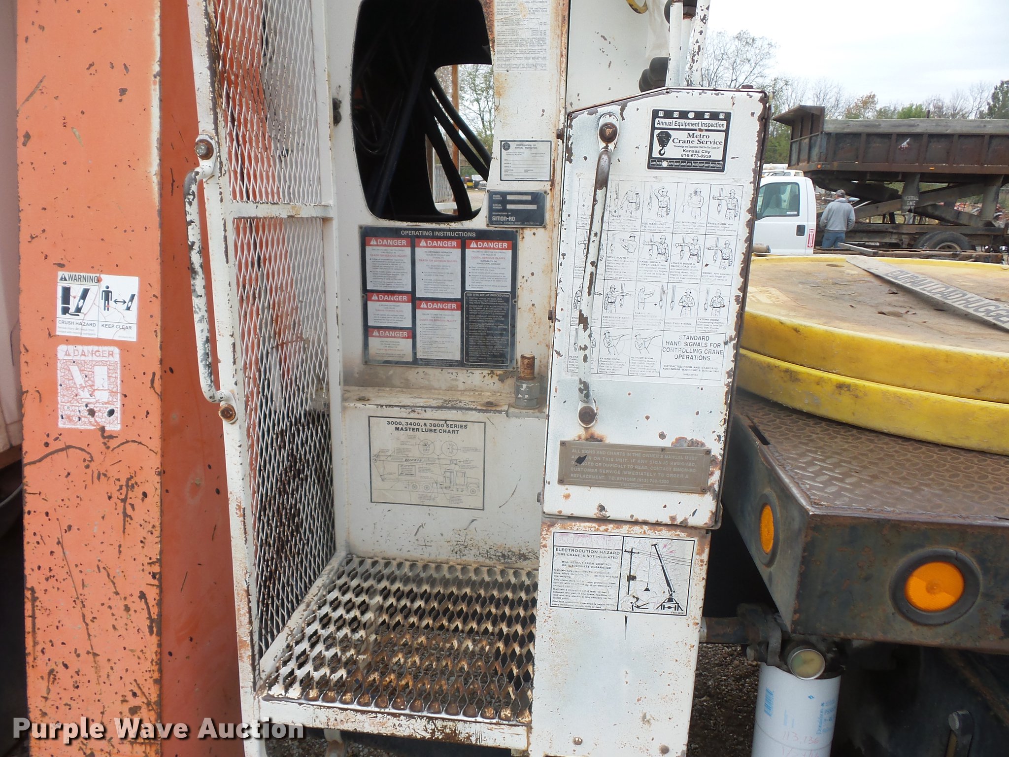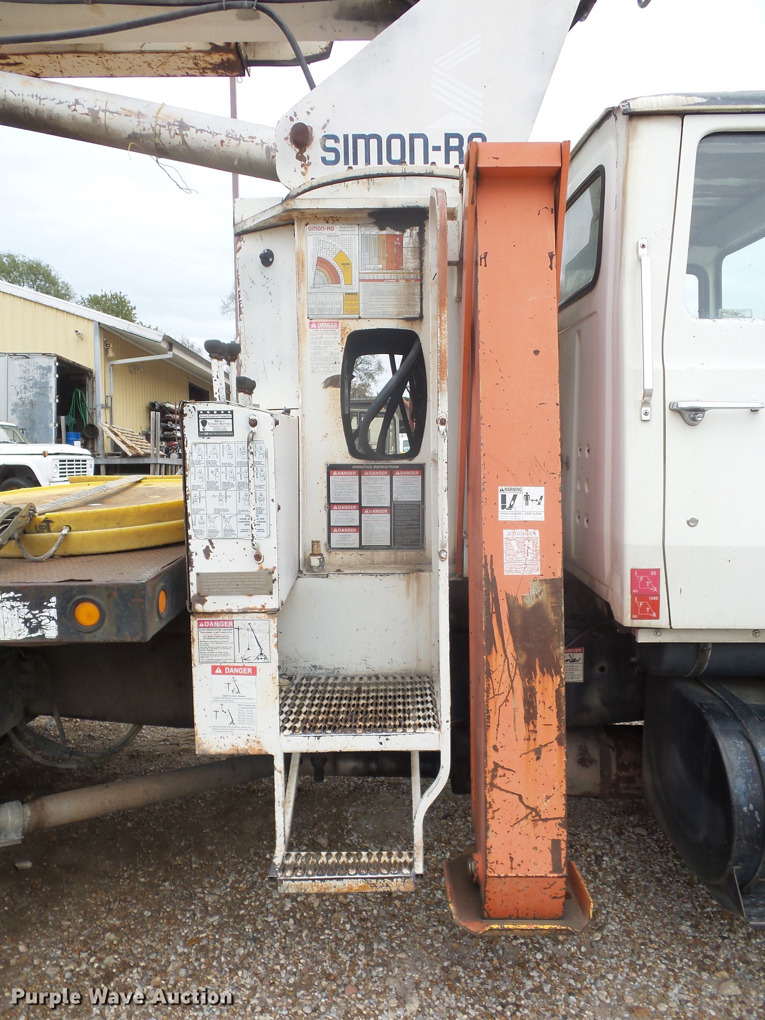 Purple Wave is selling a used Crane Truck in Missouri. This item is a 1989 Ford LT8000 crane truck with the following: 113,690 miles on odometer, 7.8L L6 turbo diesel engine, Eaton Fuller 13 speed manual transmission, Tandem axle, AC and heat, AM/FM, Air suspension seat, Simon Stinger TC3474 crane, 34,000 lbs maximum lift capacity, 118' maximum lift height, 24' extendable jib, Ground boom controls, Boom rotation, Crane ball & hook, Telescopic boom, (4) outriggers, Serial 4960793103, Pallet lifting attachment, Spring over walking beam suspension, Air brakes, 385/65R22.5 tires