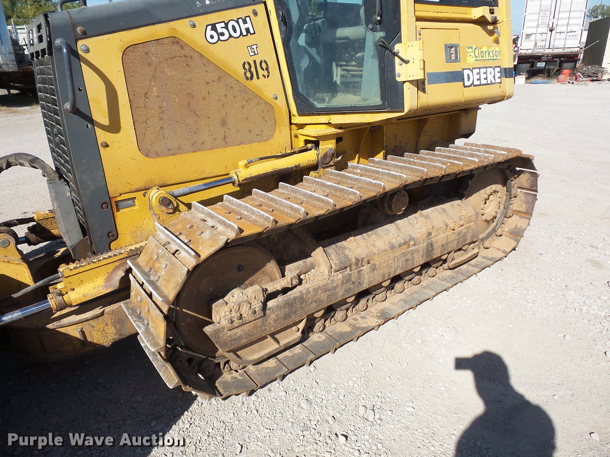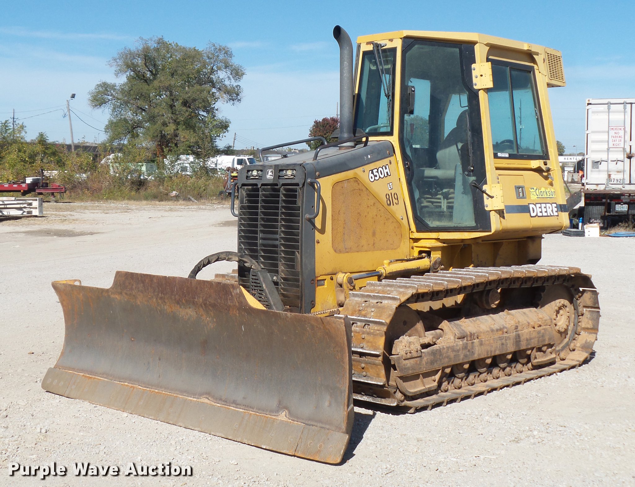 Purple Wave is selling a used Crawler Dozer in Missouri. This item is a 2001 John Deere 650H LT dozer with the following: 14,880 hours on meter, John Deere 4.5L four cylinder diesel engine, Hydrostatic transmission, Cab, AC and heat, Suspension seat, Joystick control steering, Front and rear wipers, Front and rear work lights, 115" six-way dozer blade, Rear drawbar, 18"W single grouser track pads, Serial T0650HX896785
