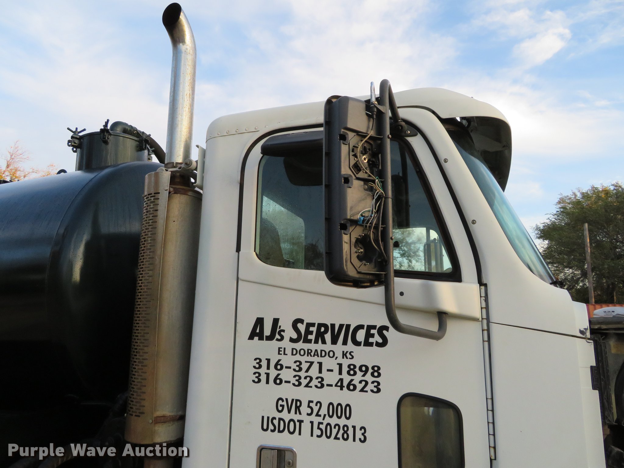 Purple Wave is selling a used Vacuum Truck in Kansas. This item is a 2006 Freightliner Columbia vacuum truck with the following: 563,089 miles on odometer, 14,682 hours on meter, Detroit Diesel Series 60 14.0L L6 diesel engine, 10 speed manual transmission, Tandem axle, AC and heat, Non-operational AC, Air suspension seat, Exterior visor, 2013 vacuum pump, 70 barrel capacity, Bowie 2" pump, Gear pump inoperable, Air suspension, Air brakes, ABS light on