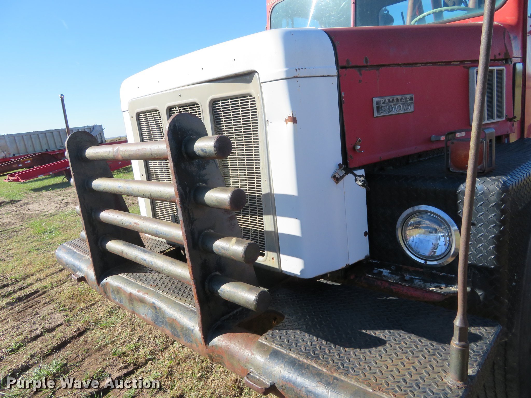 Purple Wave is selling a used Flat Bed Truck in Kansas. This item is a 1976 International Paystar 5000 oilfield rig up tandem truck with the following: 297,436 miles on odometer, 3,637 hours on meter, Cummins diesel engine, Manual transmission, Tandem axle, PTO, Air operated sliding fifth wheel plate, 176"L x 96"W oilfield flatbed, (2) Tulsa winches, PTO driven, Oilfield gin poles, Spring suspensoin, Air brakes, 11R24.5 front tires, 285/75R24.5 rear tires, Unit# 32