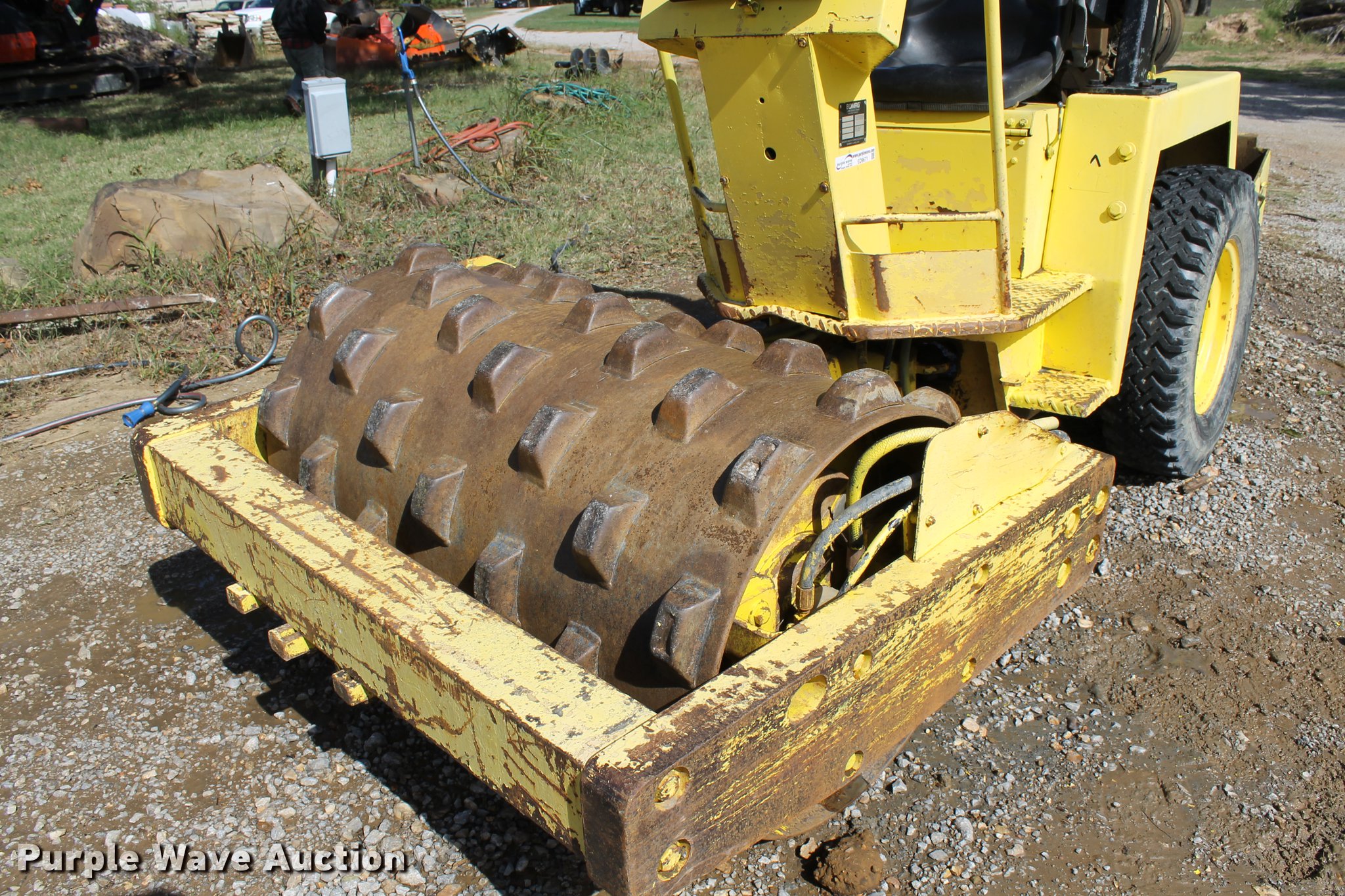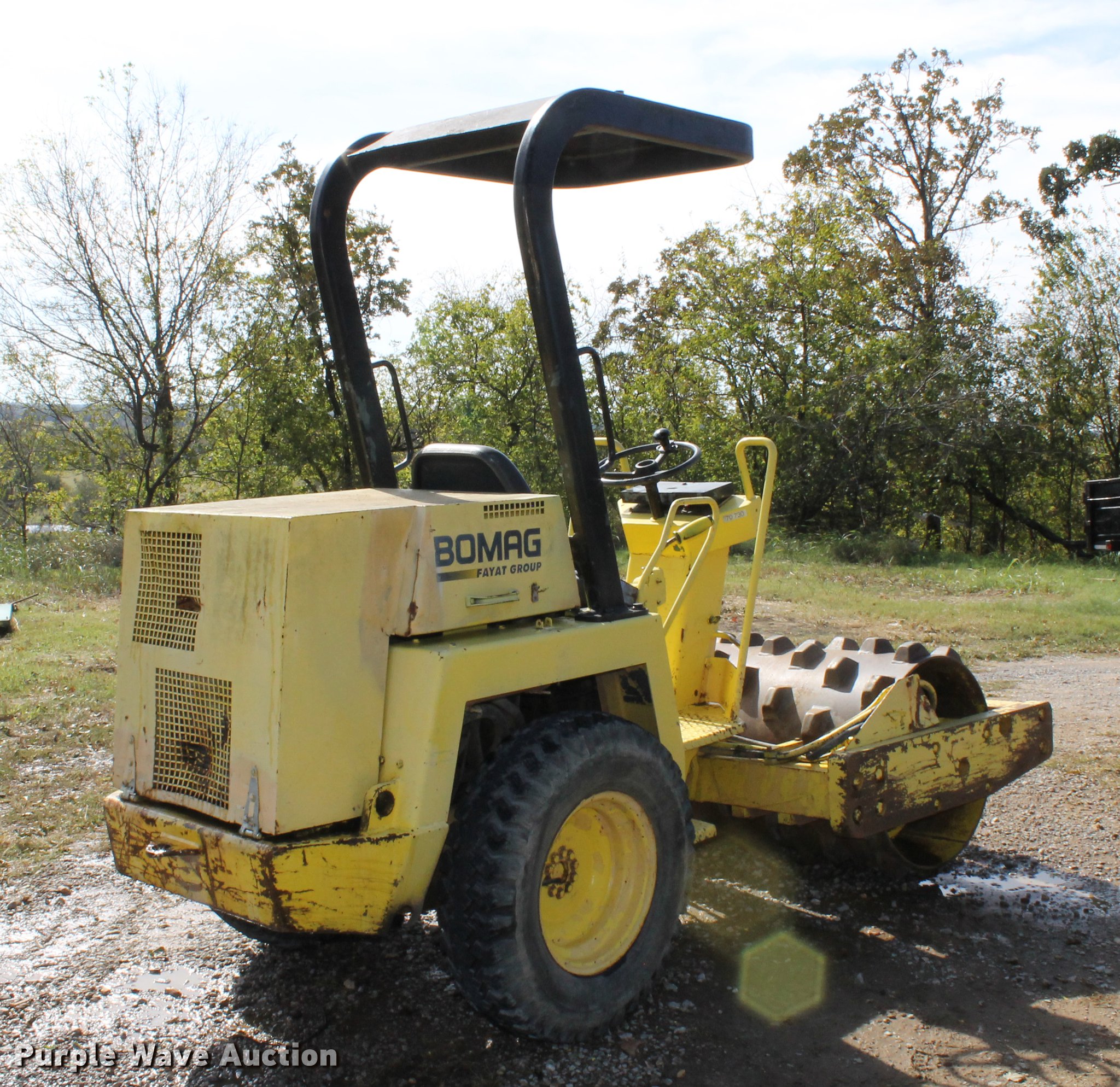 Purple Wave is selling a used Single Drum Roller Compactor in Oklahoma. This item is a Bomag BW124PD single drum roller with the following: 2,154 hours on meter, Three cylinder diesel engine, Hydrostatic transmission, Canopy, Suspension seat, 48"W x 26.5" diameter sheeps foot drum, Front drum scraper, 7.50-16 tires, Unit leaks oil if it gets hot, Serial A219C1951V