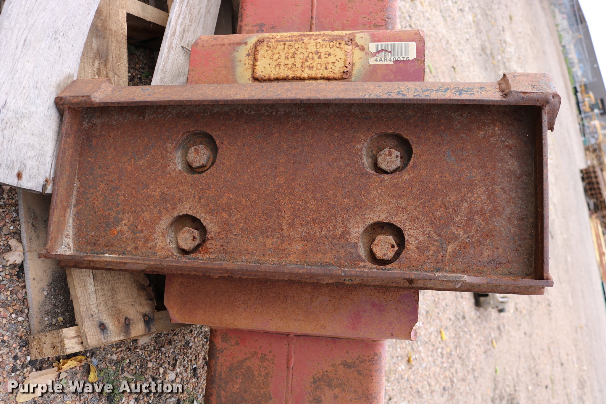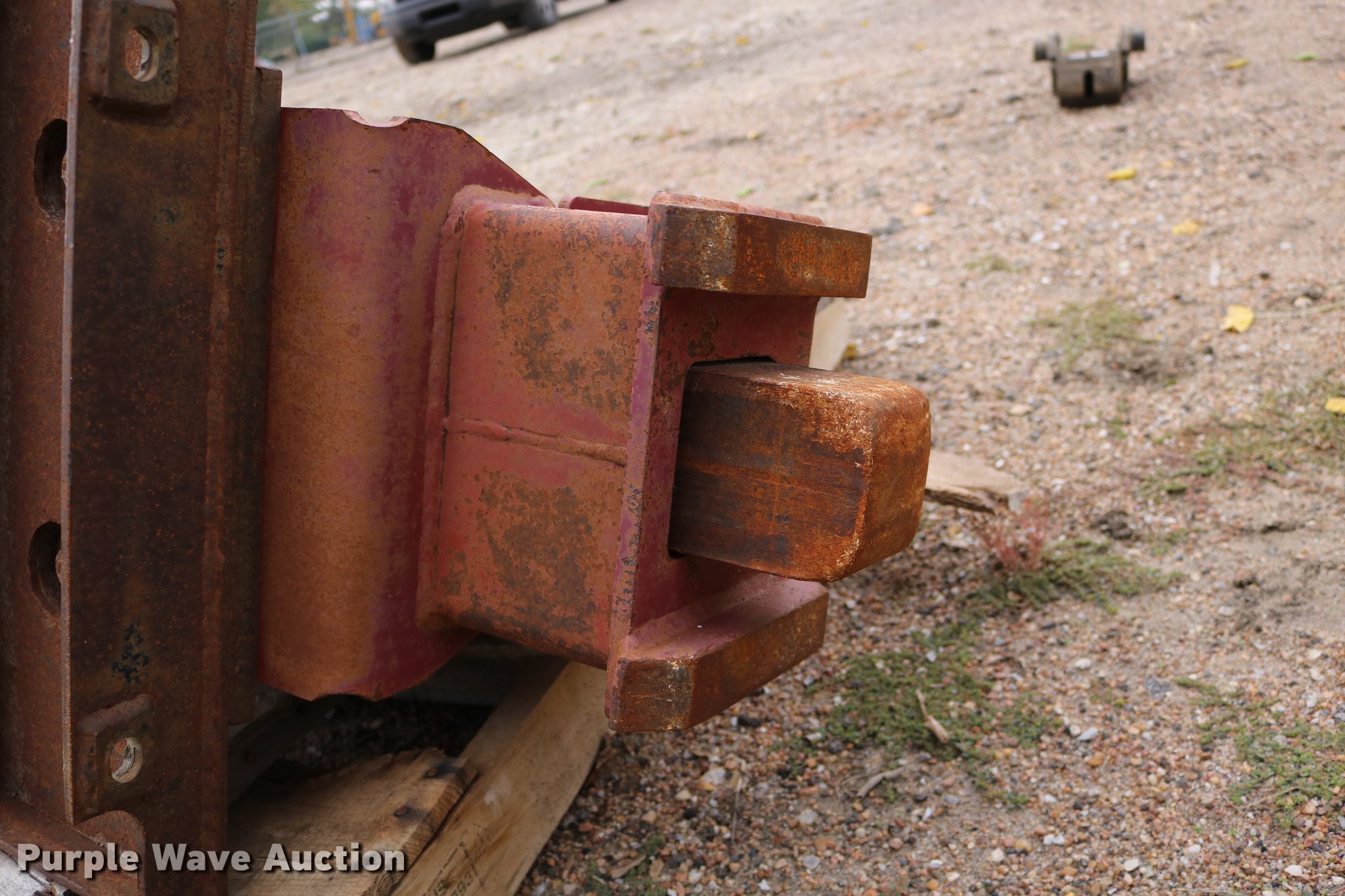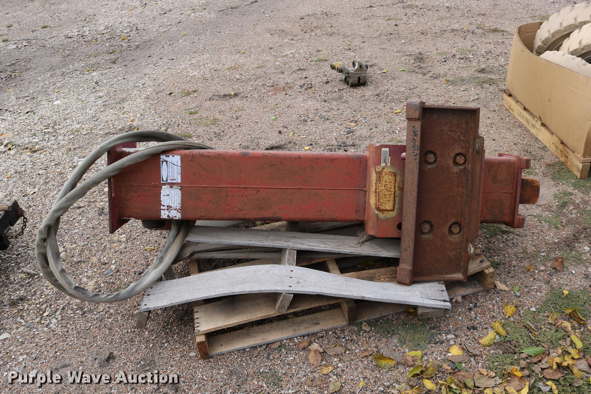 Purple Wave is selling a used Breaker or Hammer in Kansas. This item is a Cyclone breaker with the following: 1,500 ft/lbs impact blow, 32 blows per minute, 750 lbs operating weight, 6'10" operating height, 5' x 4' x 1'4" dimensions, Five gallon per minute oil flow demand, 2,000 psi minimum hydraulic pressure, Serial 05100083, Unit# 4AR40076
