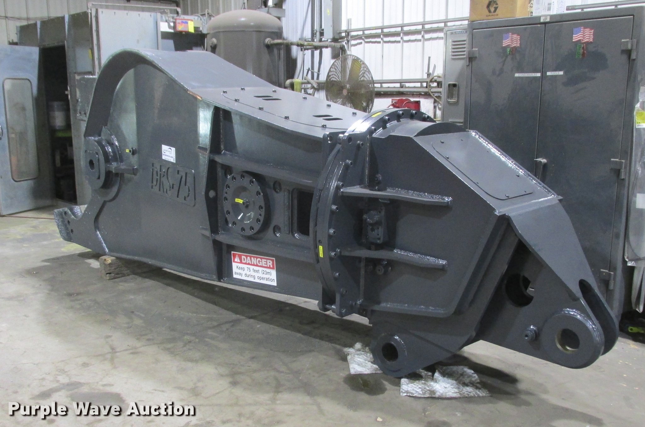 Purple Wave is selling a used Shear or Processor in Wisconsin. This item is a 2011 Kinshoffer DRS75B shear with the following: 32.87" jaw opening, 28.35" jaw depth, 3,139,400 lbs cutting force, Full rotation, 15,510 lbs. base operating weight, 77,000 lbs to 143,000 lbs excavator required, Upper jaw damaged