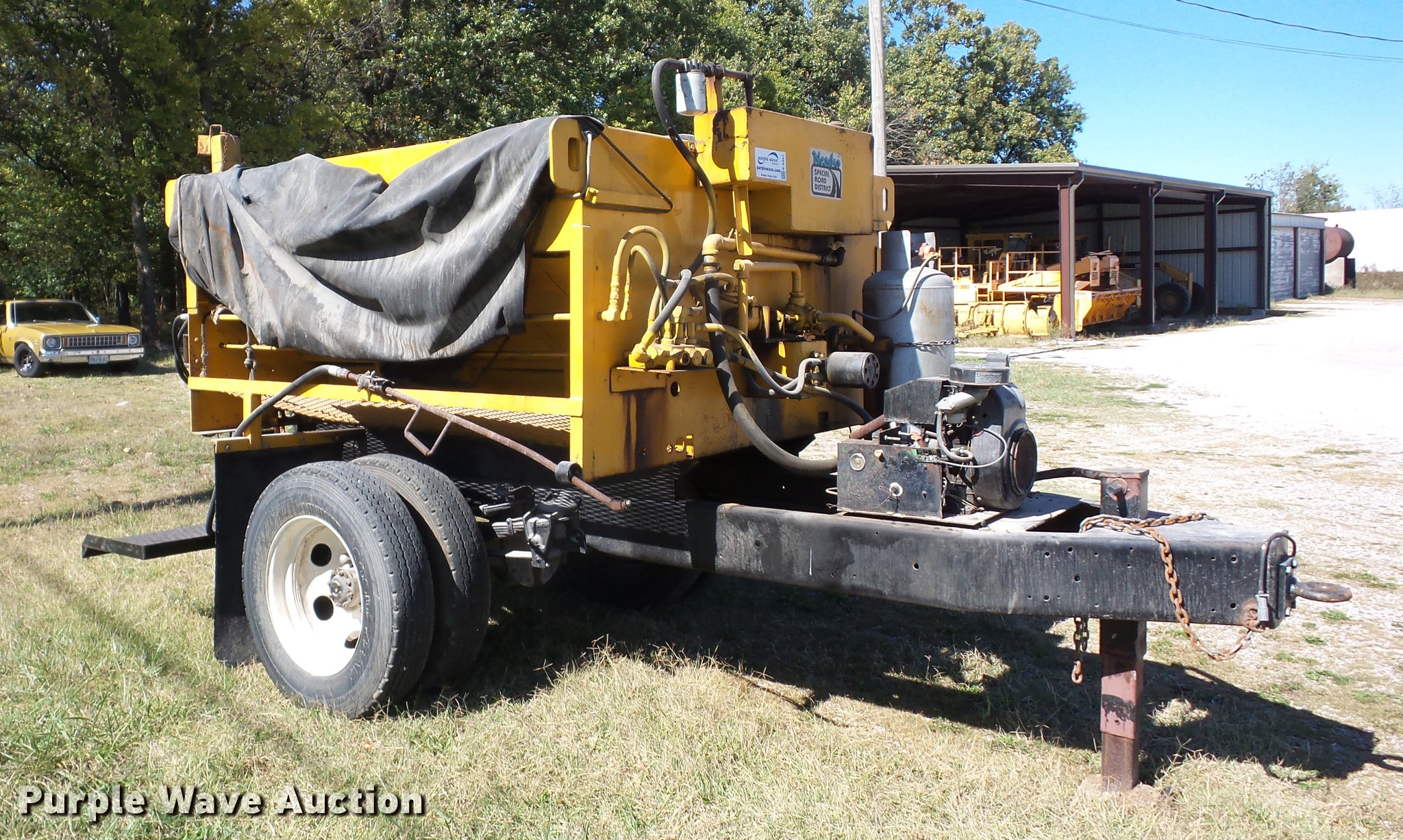 Purple Wave is selling a used Pot Hole Patcher in Missouri. This item is a Rgs Industries DTM275200 pothole patcher with the following: Kohler gas engine, Propane tank, Hydraulic driven chipper and packer, Rear discharge, Pintle hitch, Spring suspension, 9R22.5 tires, Serial J003
