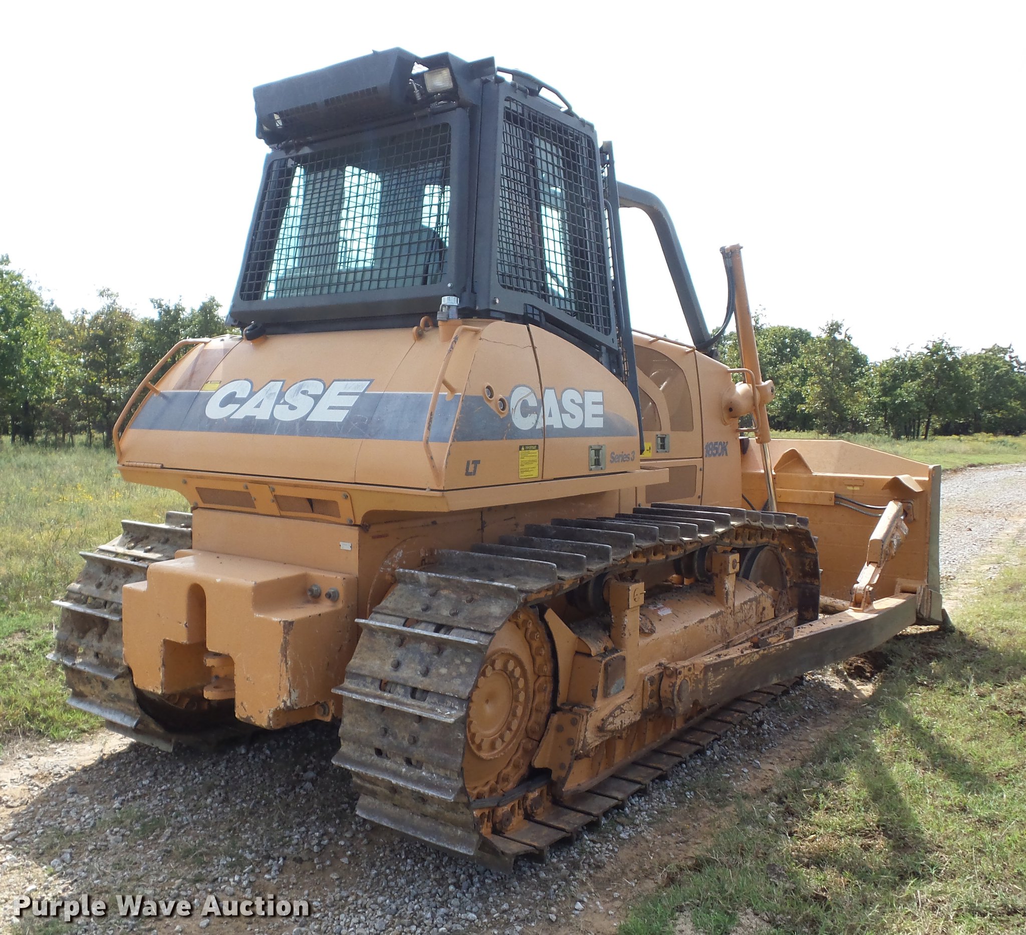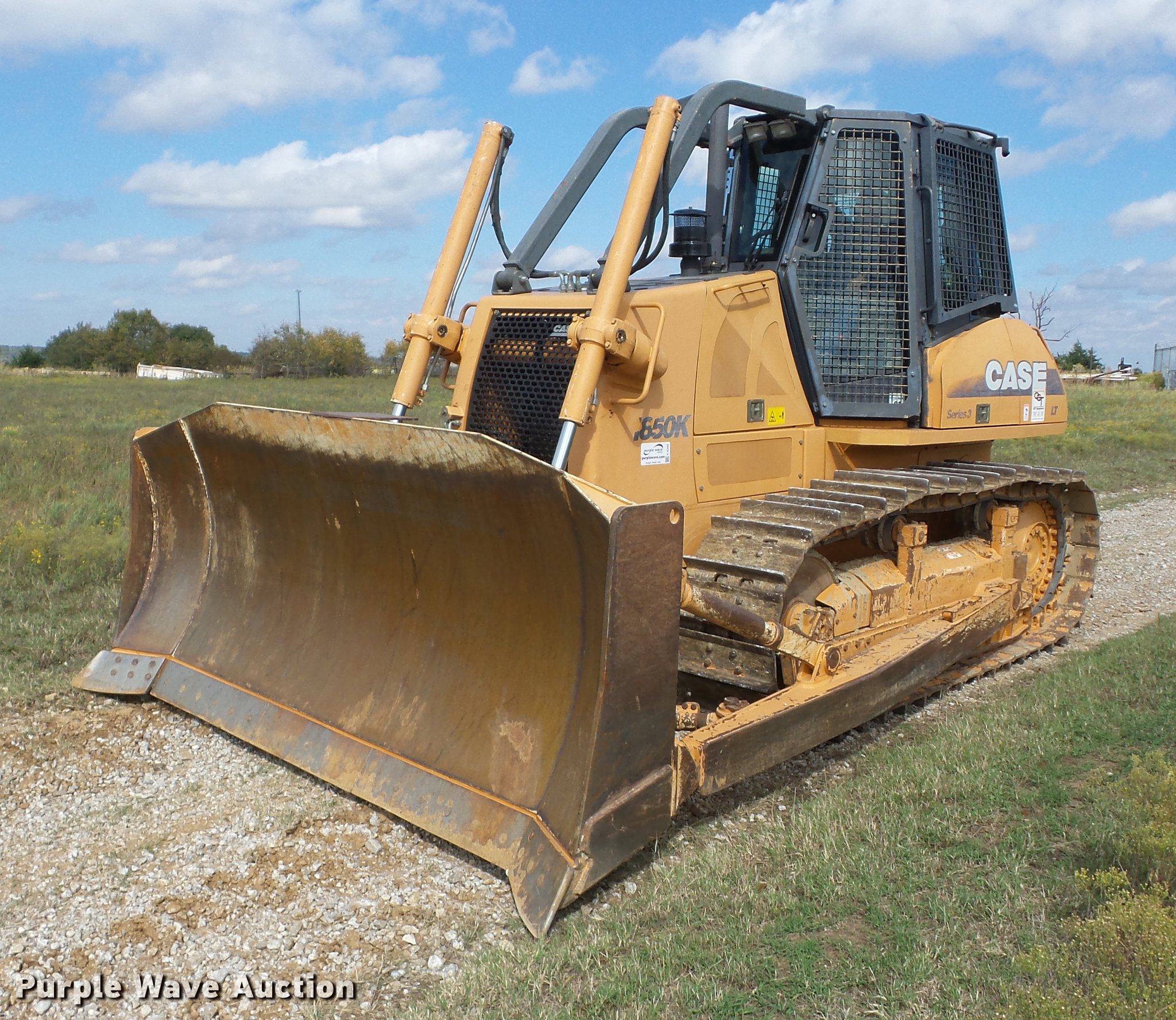 Purple Wave is selling a used Crawler Dozer in Oklahoma. This item is a 2008 Case 1850K LT Series 3 dozer with the following: 767 hours on meter, Case 667TA/EED six cylinder turbo diesel engine, 194 HP, Powershift transmission, 3F-3R gears, Auto shift, Auto low, Enclosed cab, AC and heat, Air suspension seat, Joystick control steering, EMS panel, Window screen kit, Front and rear wipers, Sweeps, 11'W Semi-U single tilt dozer blade, Rear drawbar, Rear counterweight, Seven bottom rollers, 22"W single grouser track pads, Serial HHA185LTN7HC49112
