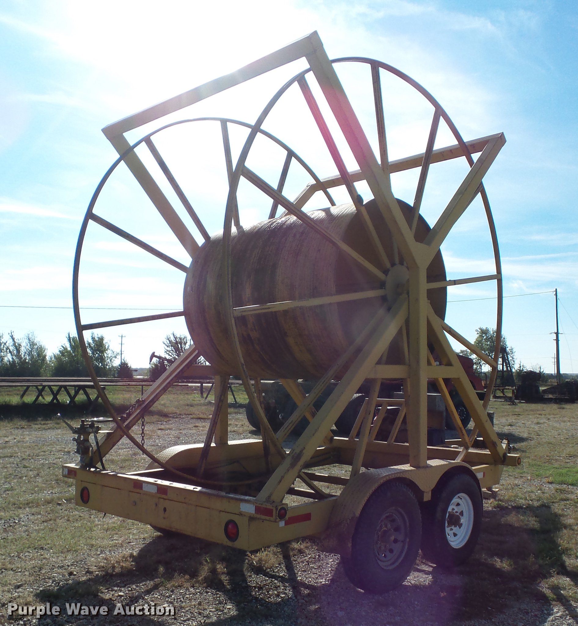Purple Wave is selling a used Reel Trailer in Oklahoma. This item is a Reel trailer with the following: 12' diameter reel, 5' I.D. reel, 102" overall width, Honda gas engine, 20 HP, Infinite speed hydraulic control valve, Forward and reverse, Single leg landing gear, Spring suspension, Electric brakes, LT235/85R16 tires