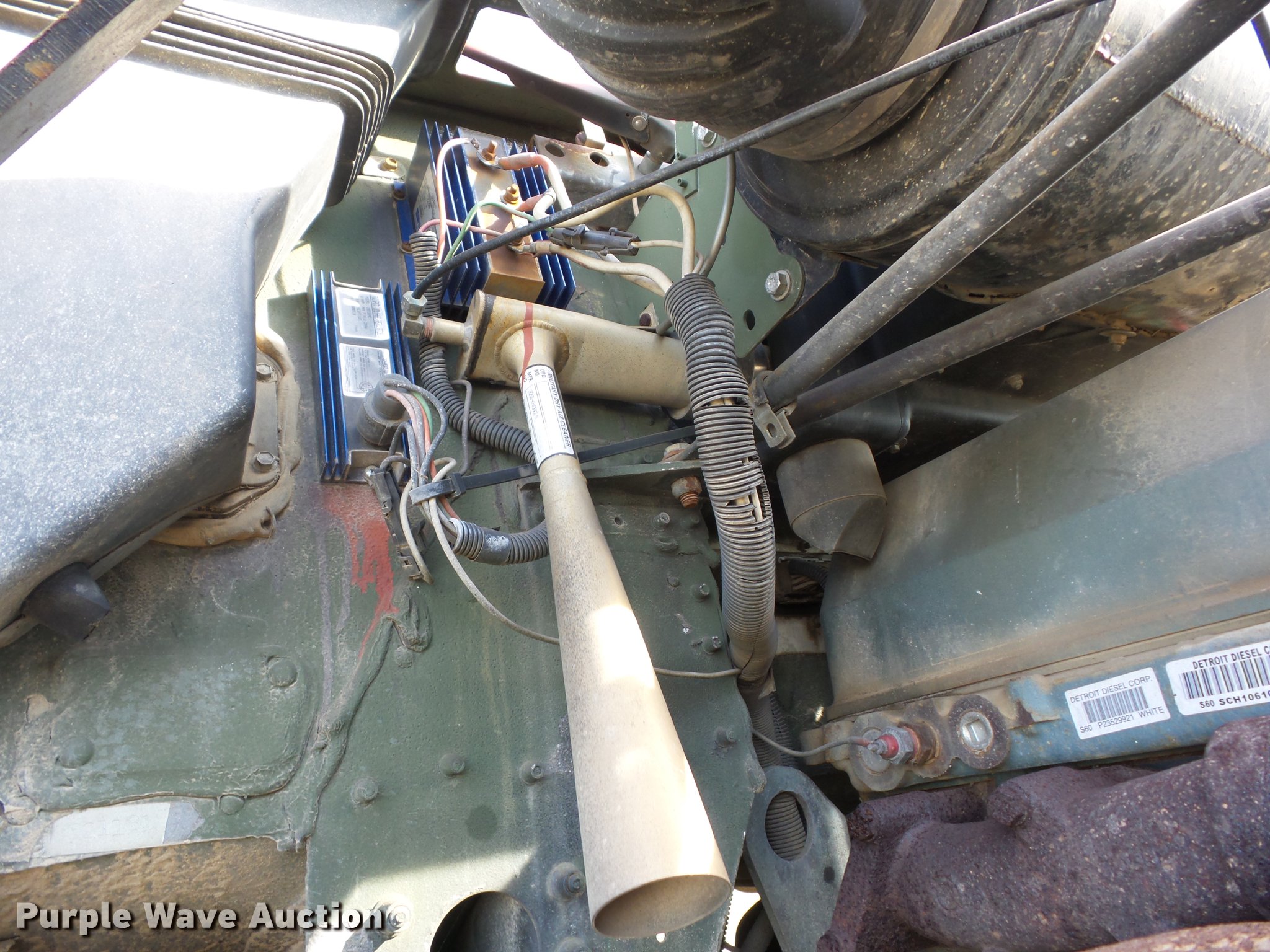 Purple Wave is selling a used Truck Tractor in Oklahoma. This item is a 1993 Freightliner M916A1 semi truck with the following: 49,365 miles on odometer, Detroit Diesel Series 60 12.7L L6 turbo diesel engine, 400 HP, Allison H7-740 automatic transmission, Tandem axle, Two speed transfer case, Six wheel drive, Heat, Air suspension seat, Front tow hooks, PTO, Wet kit, Tulsa two speed hydraulic winch, 45,000 lbs capacity, 7/8" cable, Single rear exhaust stack, Aluminum deck plate, Sliding fifth wheel plate, Rolling tailboard, Single fuel tank, Quarter fenders, Double frame, 4:89 gear ratio, 175" wheelbase, Spring over walking beam suspension, Air brakes, Michelin 315/80R22.5 tires, GVWR 68,000 lbs, FAWR 16,000 lbs, IAWR 26,000 lbs, RAWR 26,00 lbs, 27,740 lbs shipping weight