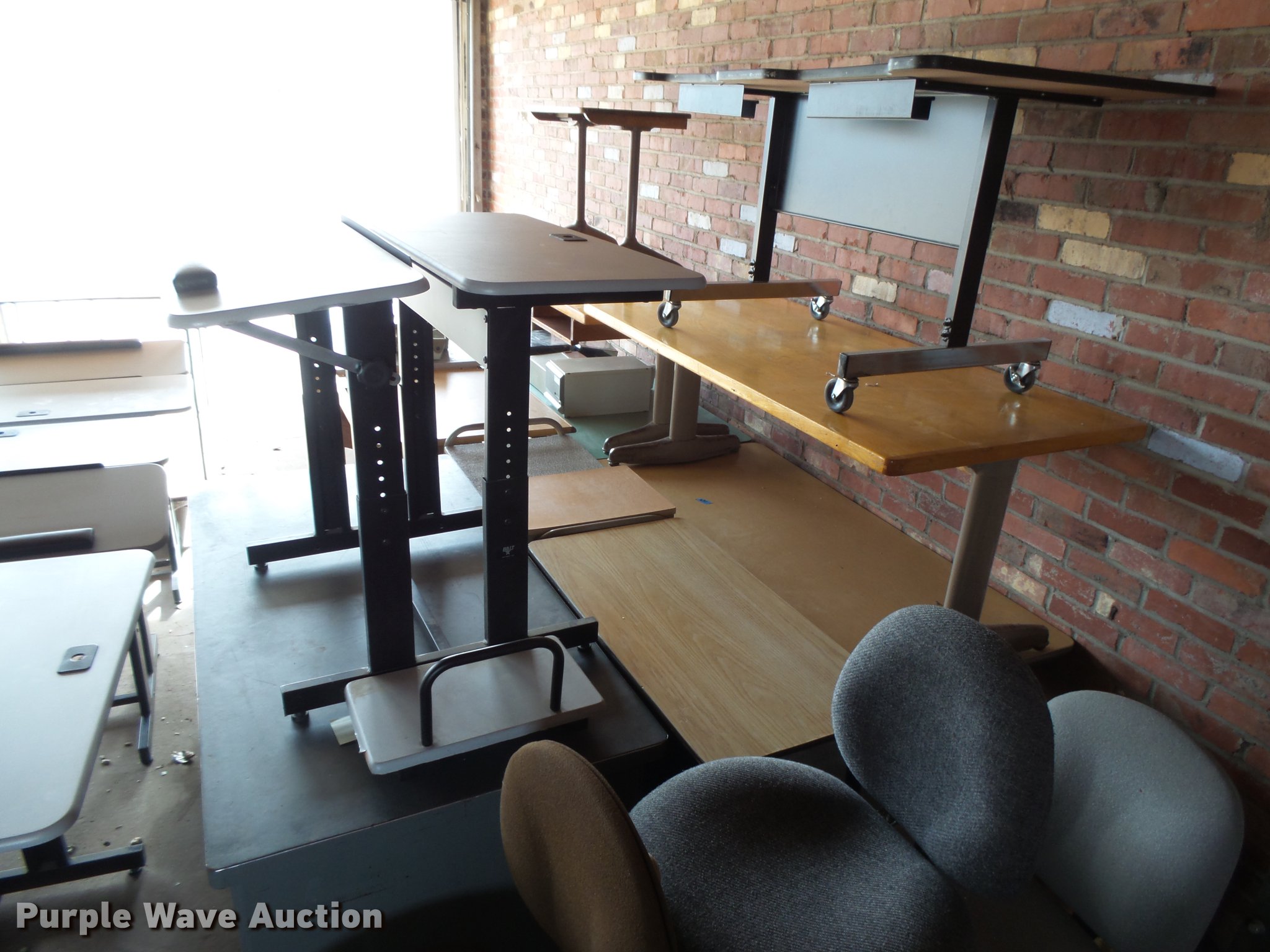 Purple Wave is selling a used Furniture in Kansas. This item is a Furniture with the following: Desks, Floor jack, Unknown operating condition, Weight rack