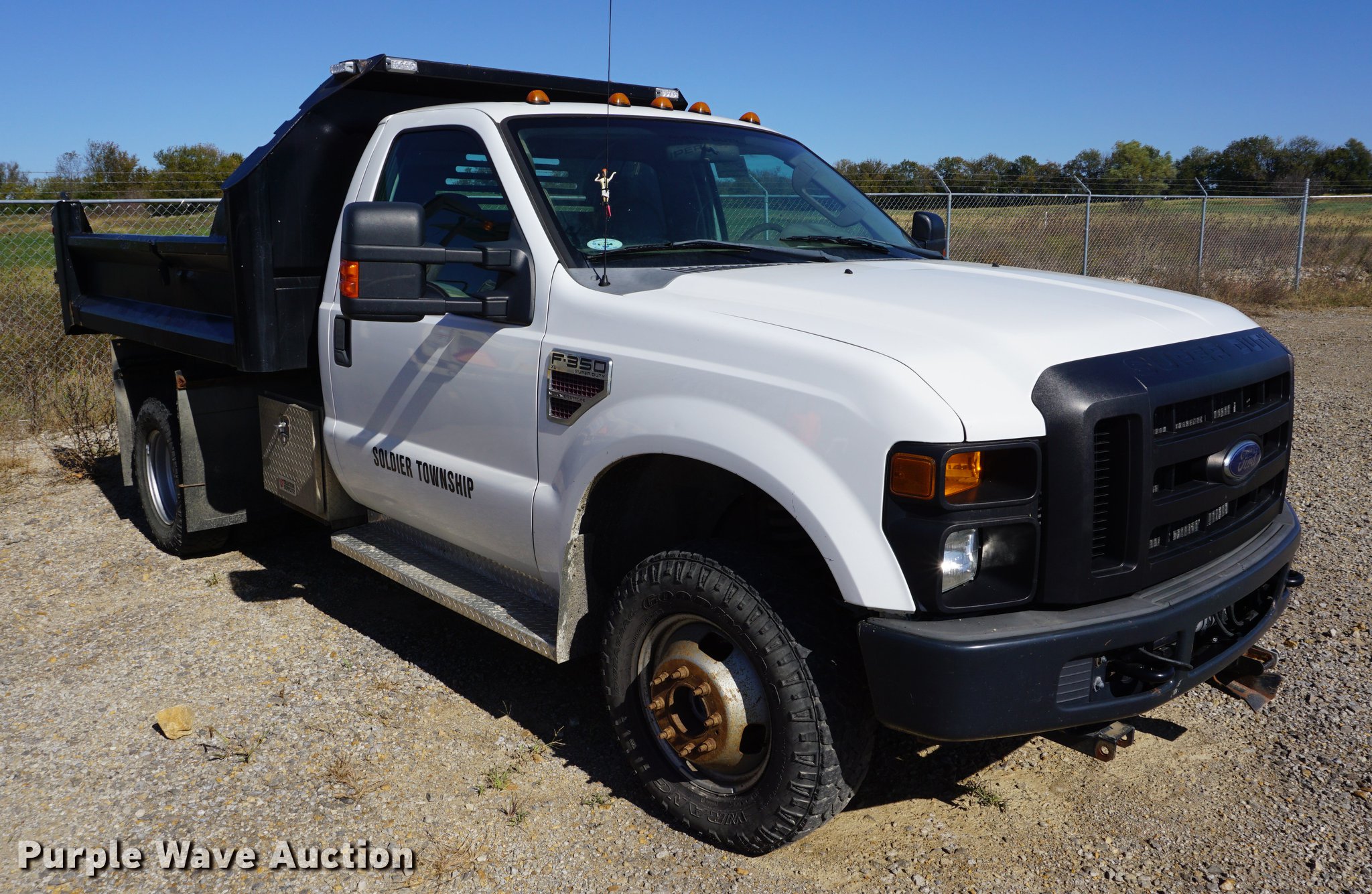 Purple Wave is selling a used 3/4 or 1 Ton Pickup or Van in Kansas. This item is a 2009 Ford F350 Super Duty flatbed pickup truck with the following: 102,412 miles on odometer, 6.4L V8 OHV 32V turbo diesel engine, Automatic transmission, Four wheel drive, AC and heat, Tilt, AM/FM, Power windows, locks, and mirrors, Vinyl interior, 9'L x 96"W dump flatbed, Electric over hydraulic, Toolbox, Receiver hitch, 245/75R17 tires, Plow bracket not included, Engine issues