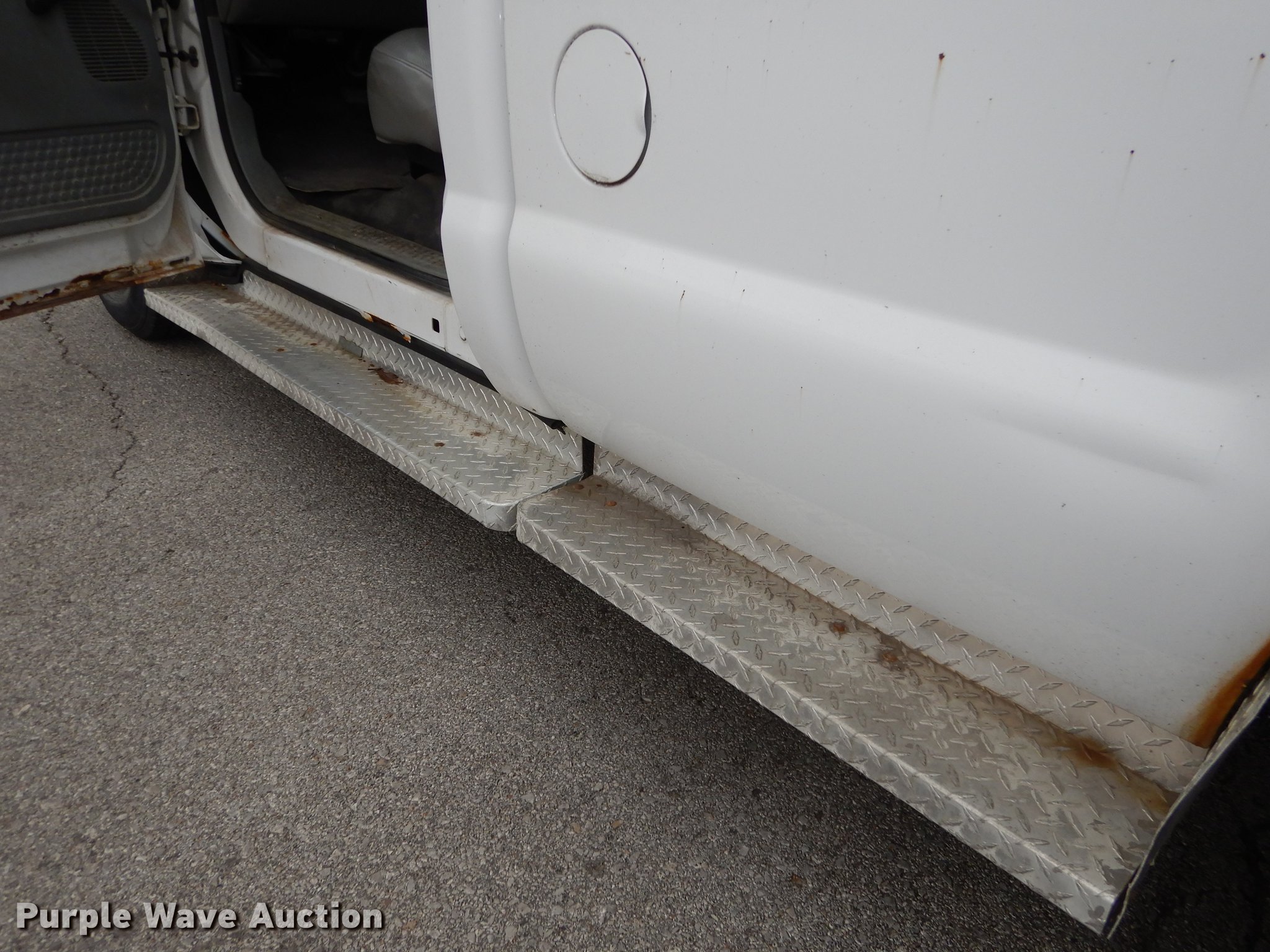 2002 Ford F250 Super Duty pickup truck. 273,295 miles on odometer, 5.4L V8 SOHC 16V gas engine, Automatic transmission, AC and heat, AM/FM, Manual windows and locks, Vinyl interior, Light bar, Whelen traffic indicator control, Toolbox, Running boards, Front tow hook, 235/85R16 tires, Gear indicator inoperable, Side mirror glass missing. Kansas title. 1FTNF20L82EC96644. Kansas City Board of Public Utilities. Open inspection Nov. 29 and Dec. 4. 6742 Riverview Ave. Kansas City, KS 66102