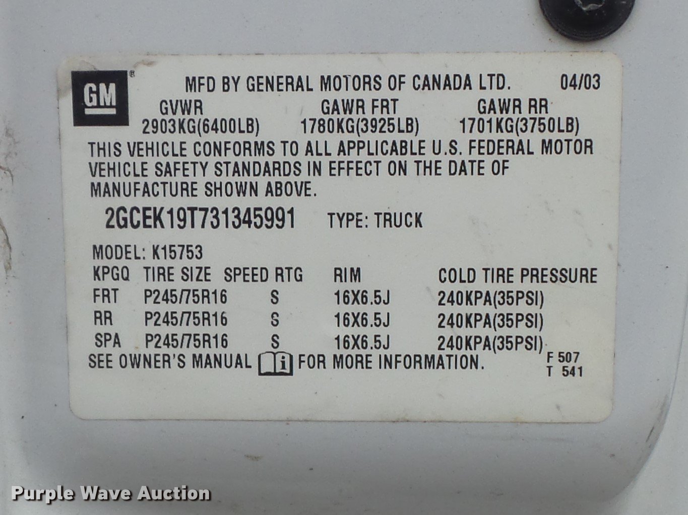Purple Wave is selling a used 1/2 Ton Pickup or Van in Missouri. This item is a 2003 Chevrolet Silverado 1500 Ext. Cab pickup truck with the following: 248,045 miles on odometer, 5.3L V8 OHV 16V gas engine, Automatic transmission, Four wheel drive, AC and heat, Tilt, Cruise, AM/FM, Manual windows and locks, Vinyl interior, LT245/75R16 tires, Brake issues, Check brake light on, Rear door jam handle latches broken, Unit# 4