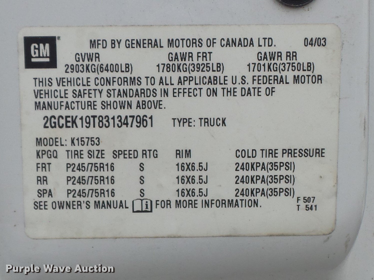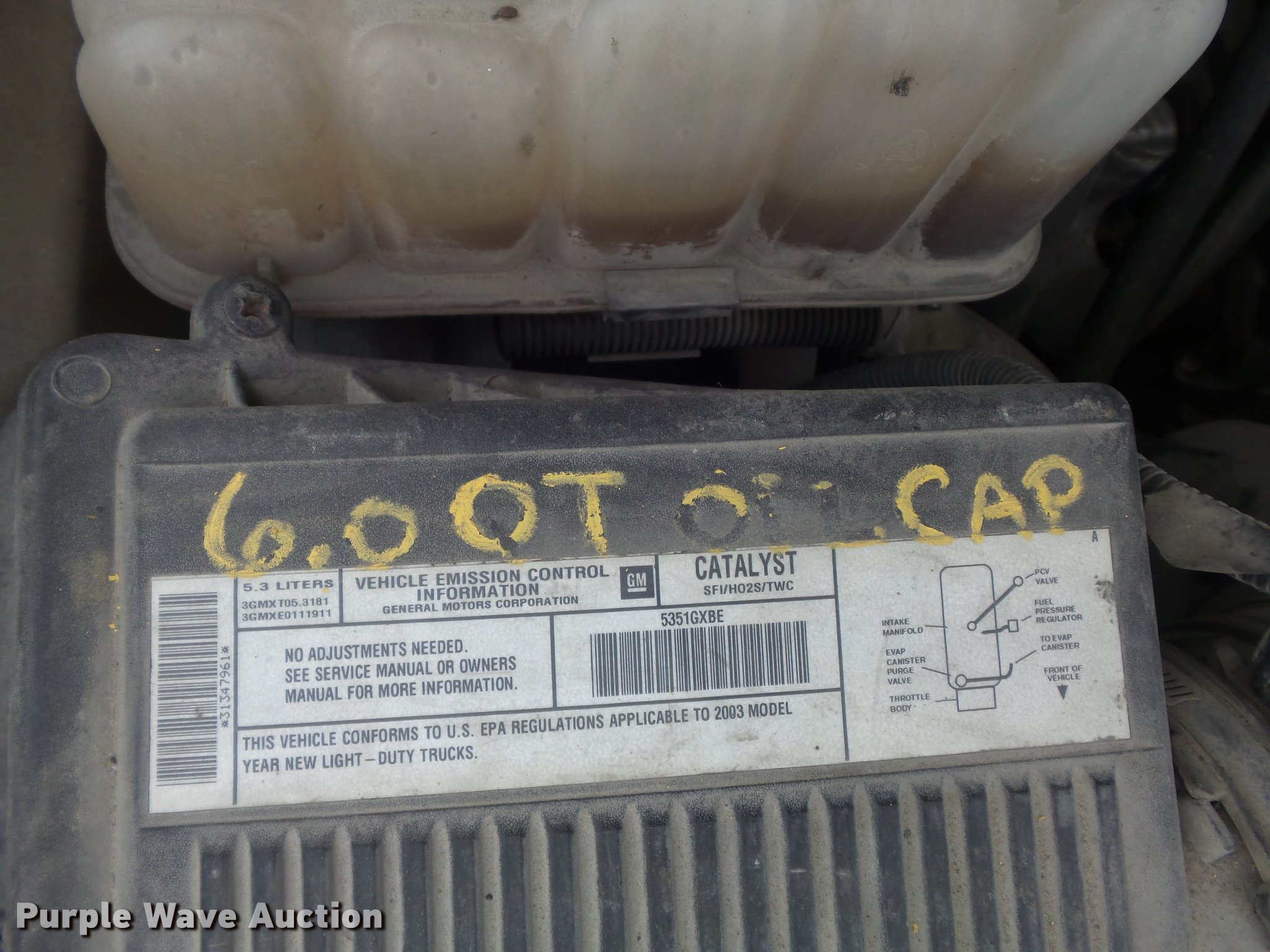 Purple Wave is selling a used 1/2 Ton Pickup or Van in Missouri. This item is a 2003 Chevrolet Silverado 1500 Ext. Cab pickup truck with the following: 270,177 miles on odometer, 5.3L V8 OHV 16V gas engine, Automatic transmission, Four wheel drive, AC and heat, Tilt, Cruise, AM/FM, Manual windows and locks, Vinyl interior, LT245/75R16 tires, Service air bag light on, Unit# 36