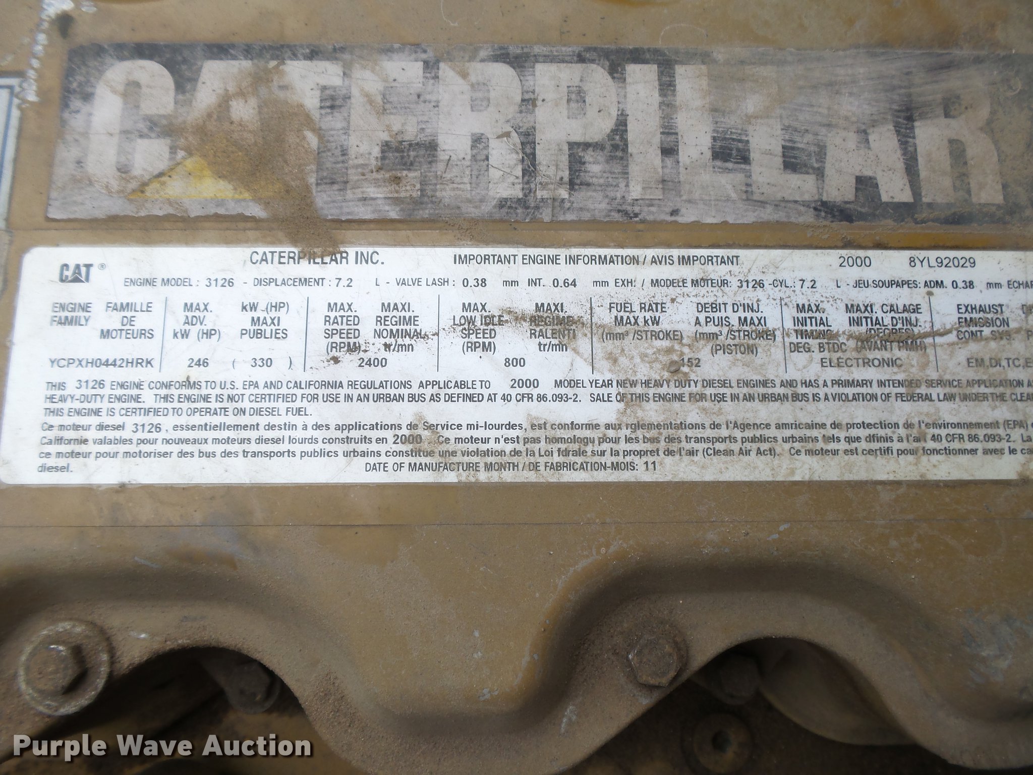 - Caterpillar 3126 7.2L L6 turbo diesel engine