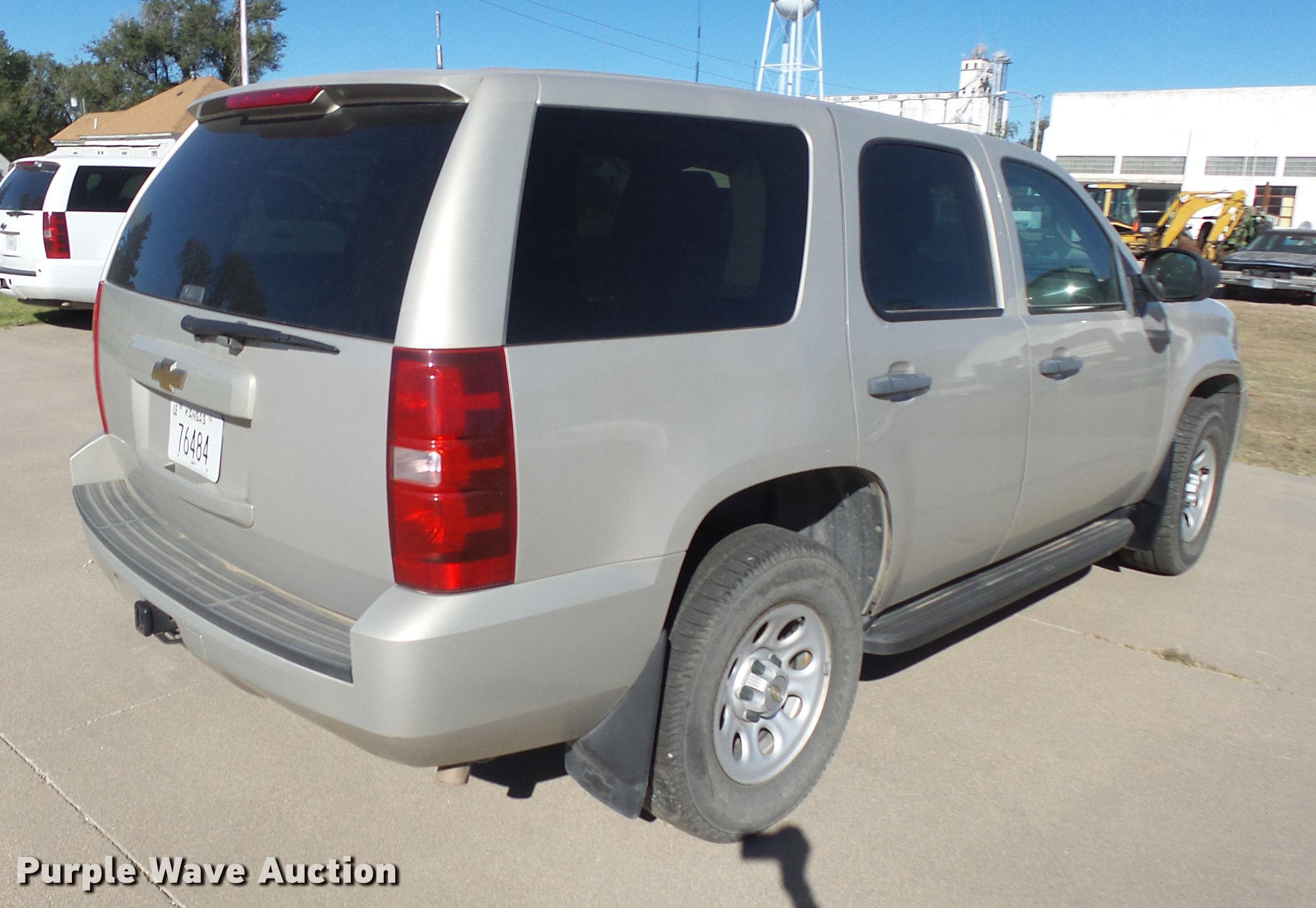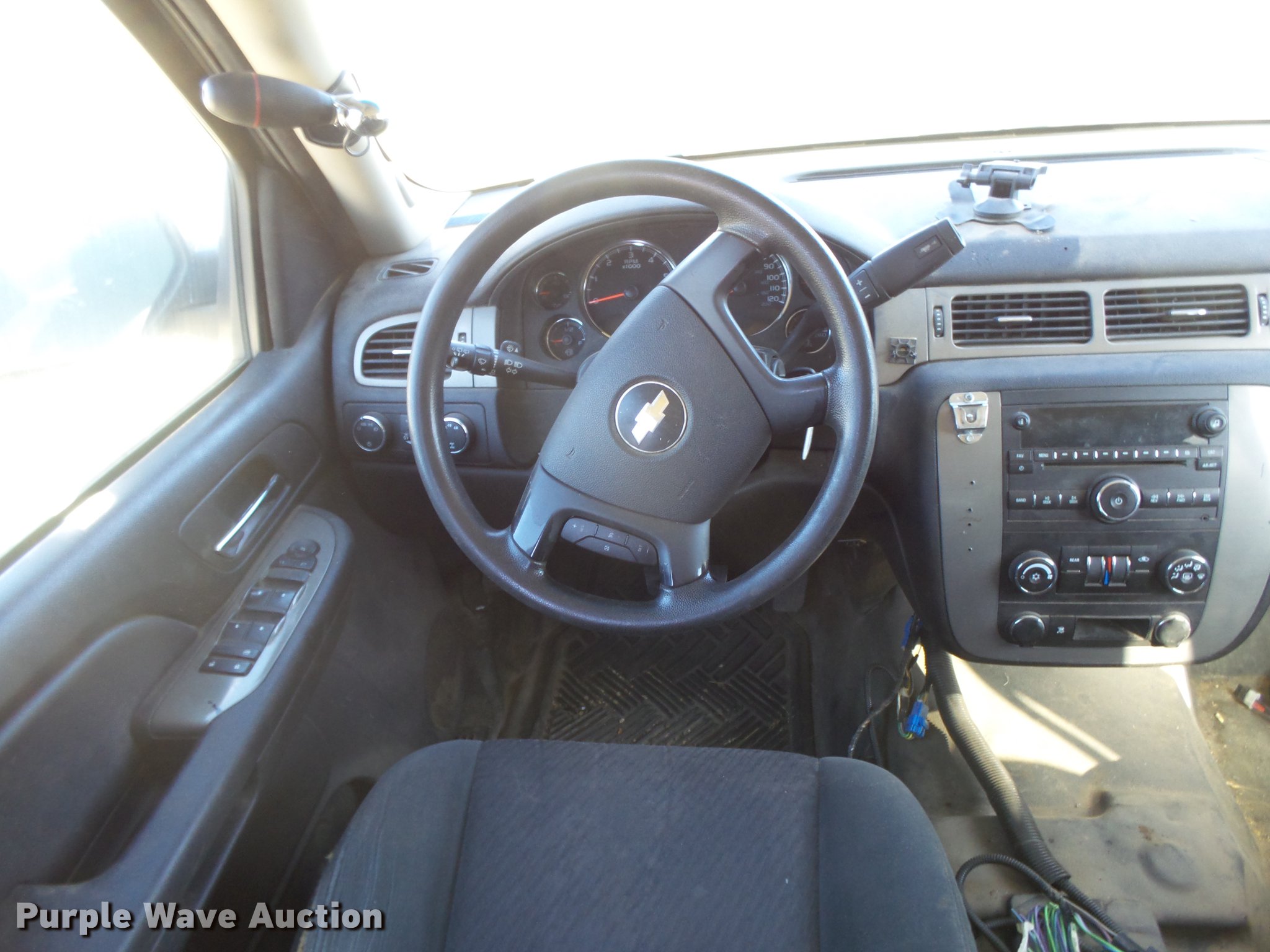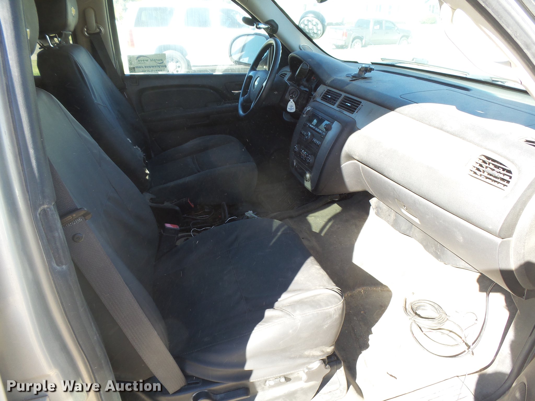 Purple Wave is selling a used Passenger Vehicle in Kansas. This item is a 2009 Chevrolet Tahoe Police SUV with the following: 179,510 miles on odometer, 5.3L V8 OHV 16V FFV gas engine, Automatic transmission, Four wheel drive, AC and heat, Tilt, Cruise, AM/FM/CD, Power windows, locks, mirrors, and seats, Cloth interior, Receiver hitch, Trailer wiring, LT265/70R17 tires, Weak battery, Glass cracked