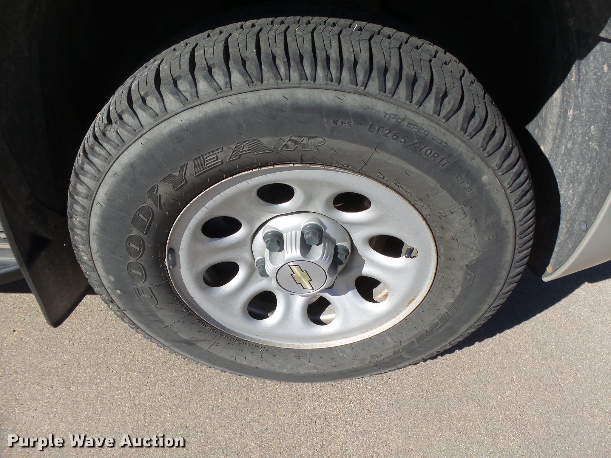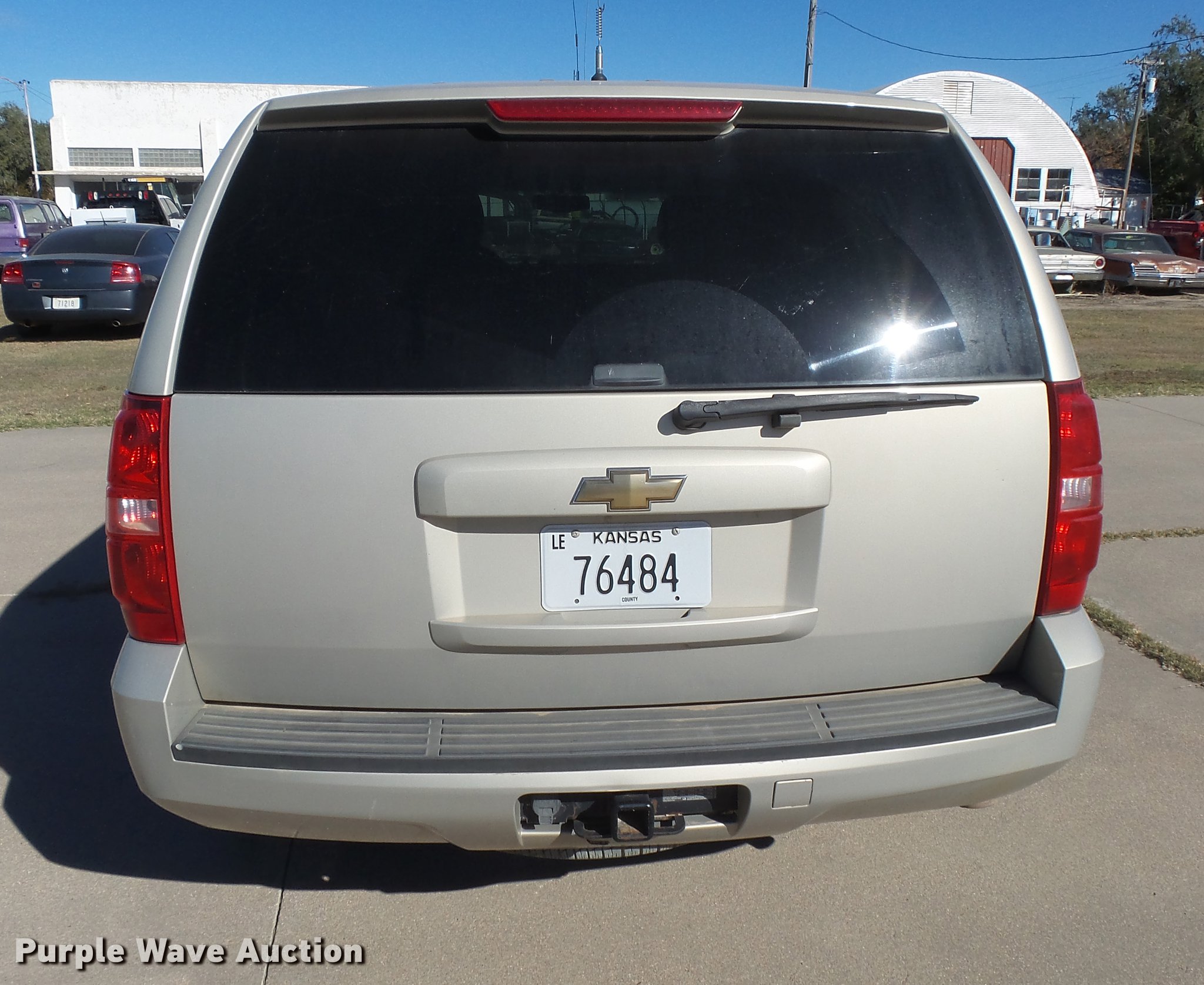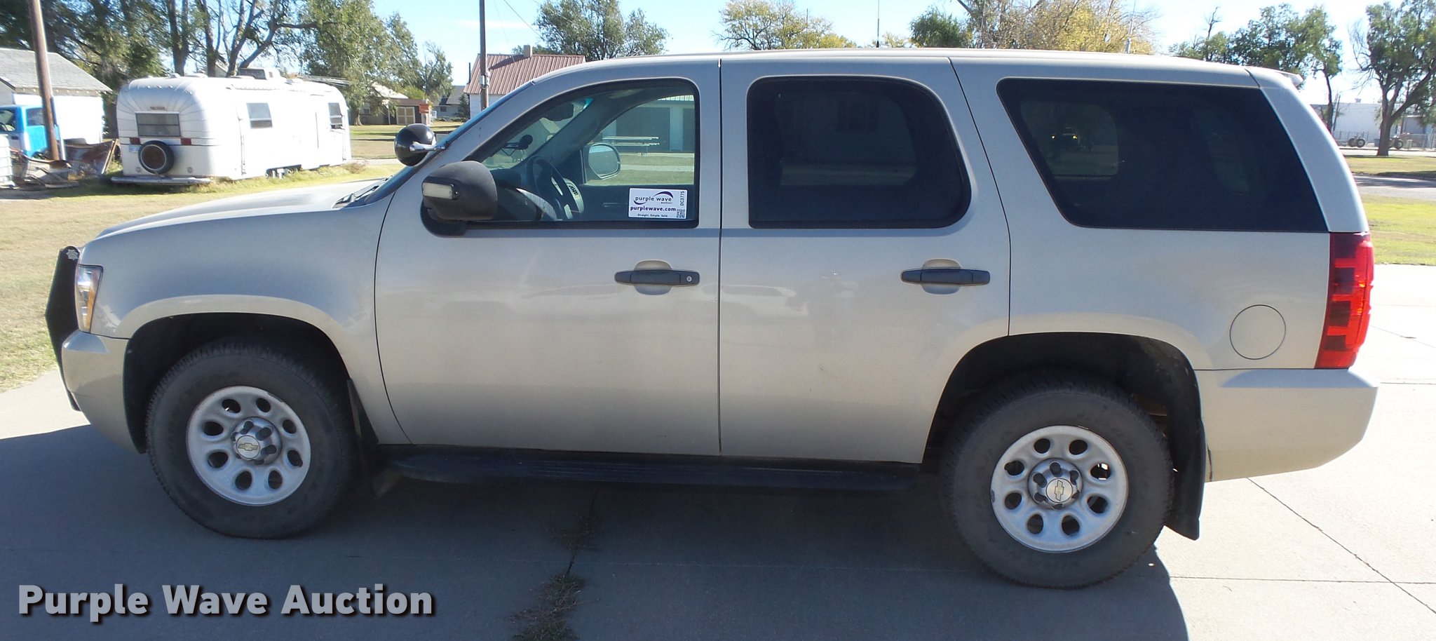 Purple Wave is selling a used Passenger Vehicle in Kansas. This item is a 2009 Chevrolet Tahoe Police SUV with the following: 179,510 miles on odometer, 5.3L V8 OHV 16V FFV gas engine, Automatic transmission, Four wheel drive, AC and heat, Tilt, Cruise, AM/FM/CD, Power windows, locks, mirrors, and seats, Cloth interior, Receiver hitch, Trailer wiring, LT265/70R17 tires, Weak battery, Glass cracked