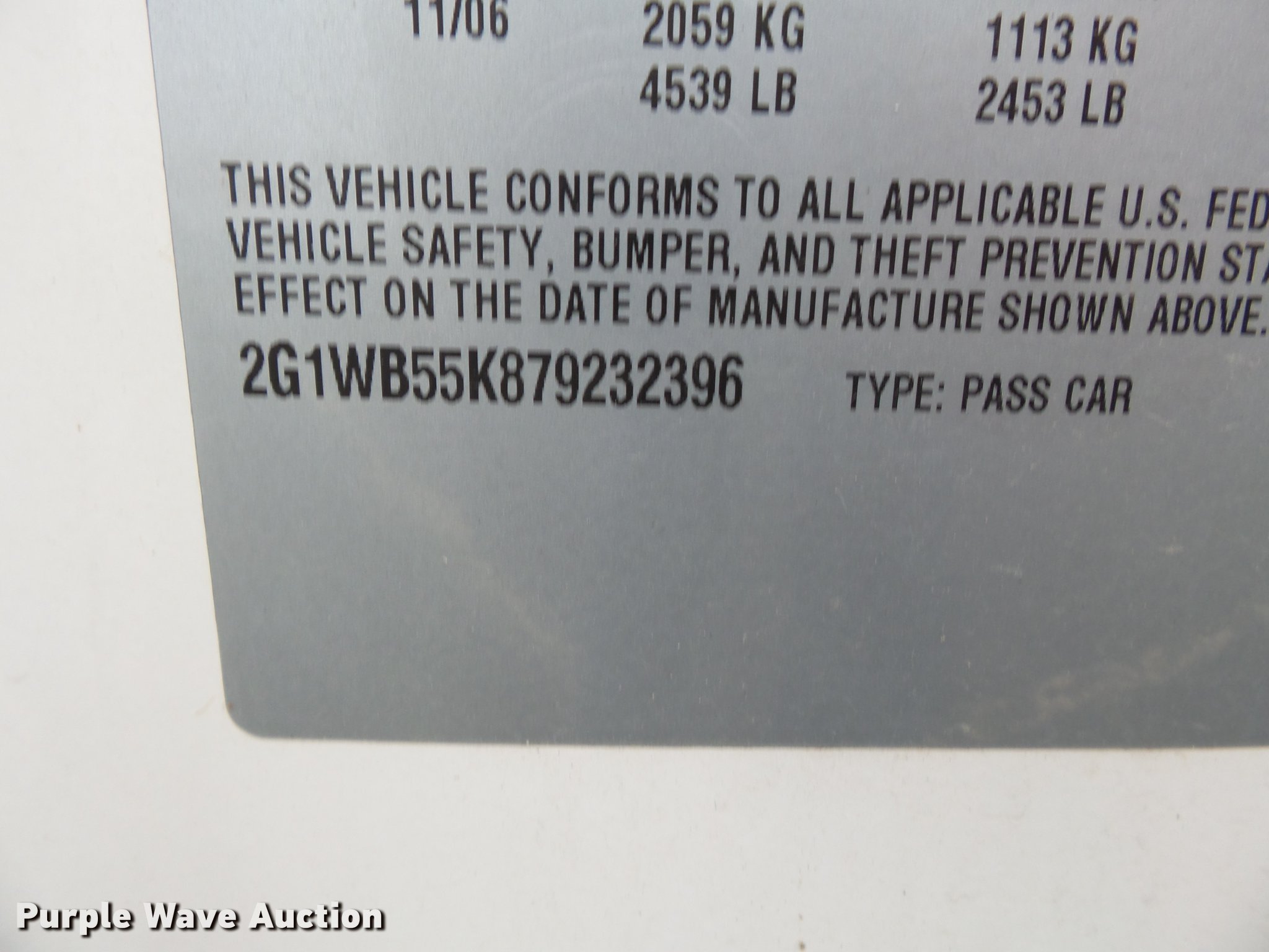 Purple Wave is selling a used Passenger Vehicle in Missouri. This item is a 2007 Chevrolet Impala with the following: 163,464 miles on odometer, 3.5L V6 OHV 16V FFV gas engine, Automatic transmission, AC and heat, Tilt, Cruise, AM/FM/CD, Power windows, locks, mirrors, and seat, Cloth interior, 225/60R16 tires, MODOT ID B6093