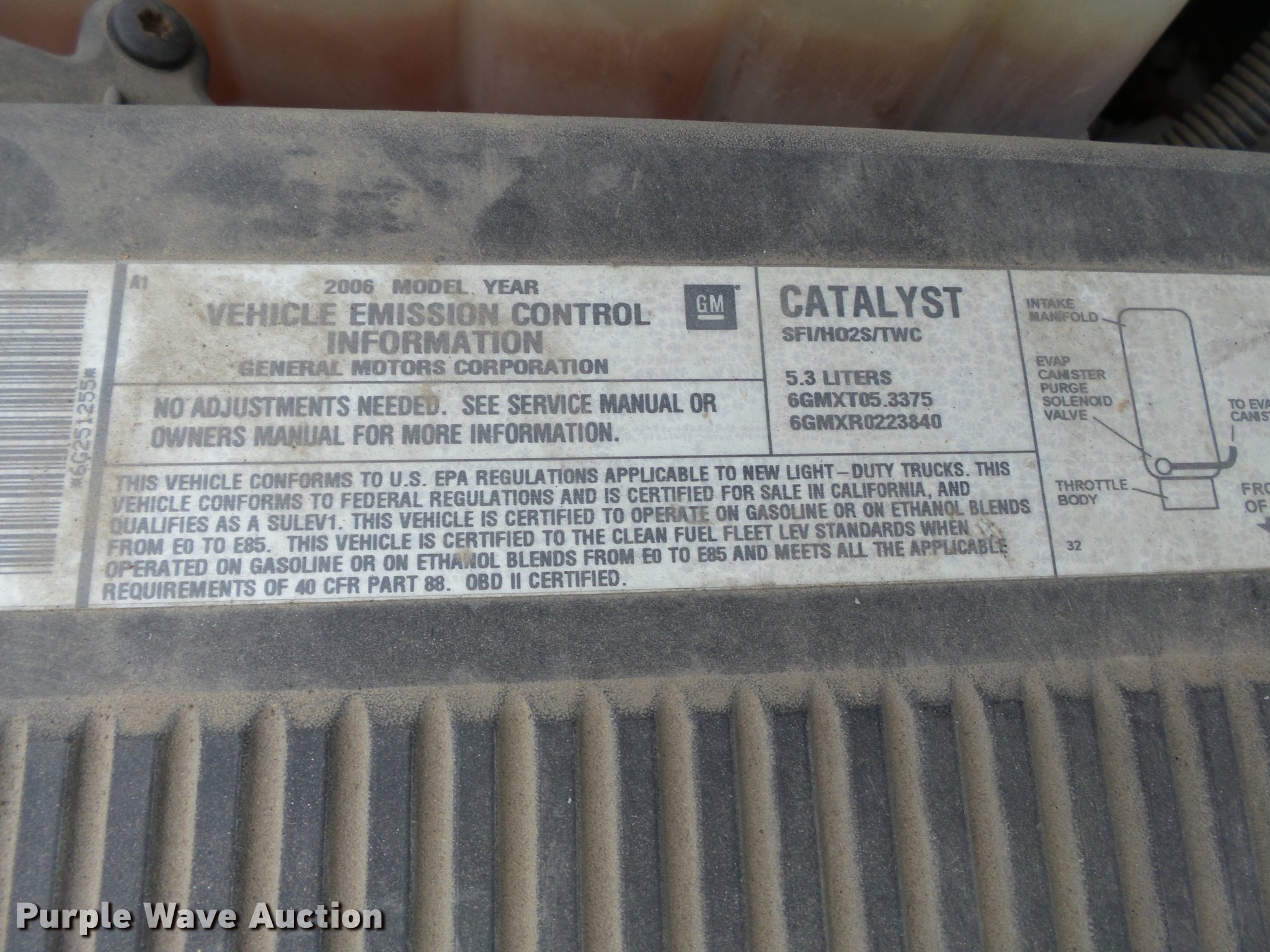 Purple Wave is selling a used 1/2 Ton Pickup or Van in Missouri. This item is a 2006 Chevrolet Silverado 1500 pickup truck with the following: 179,896 miles on odometer, 5,585 hours on meter, 5.3L V8 OHV 16V FFV gas engine, Automatic transmission, AC and heat, Tilt, Cruise, AM/FM, Cloth interior, Long bed, Receiver hitch, Trailer wiring, P245/70R17 tires, MODOT ID B6024