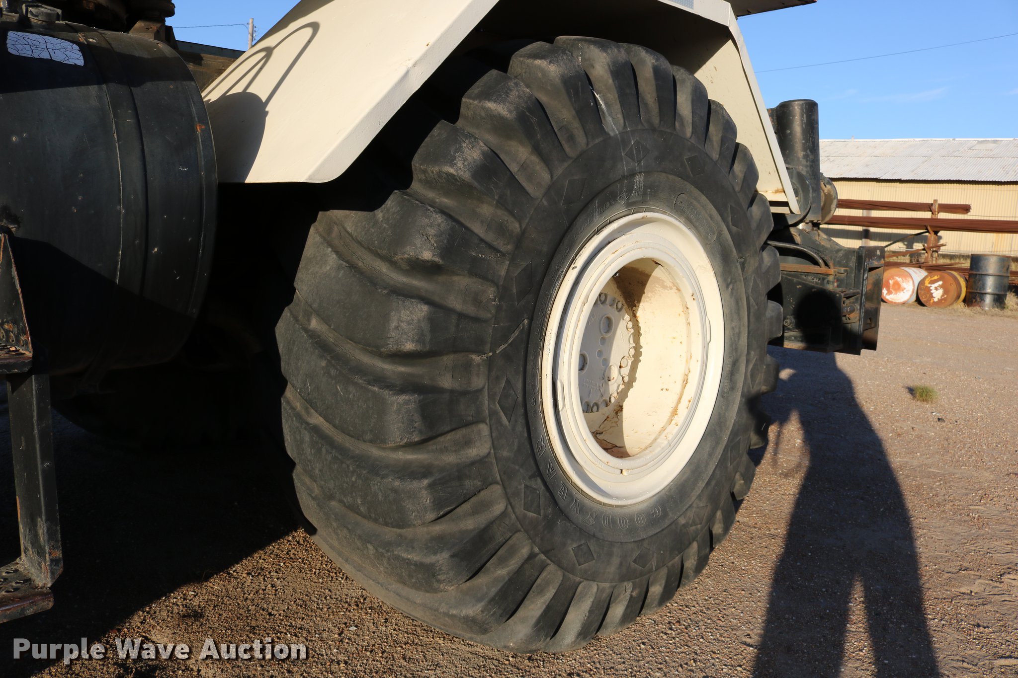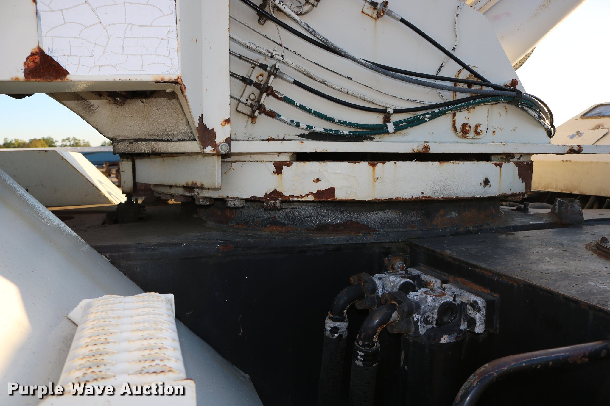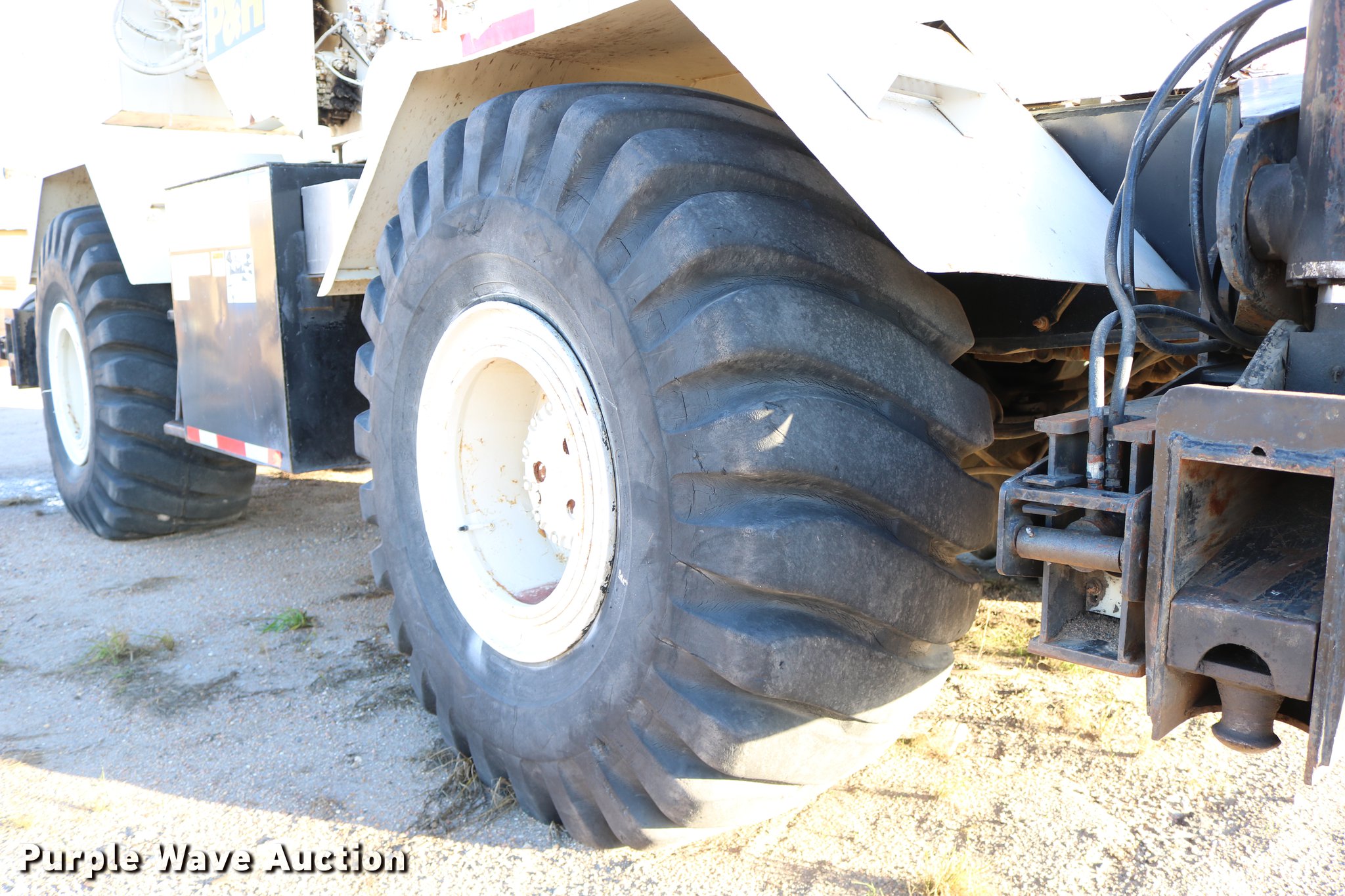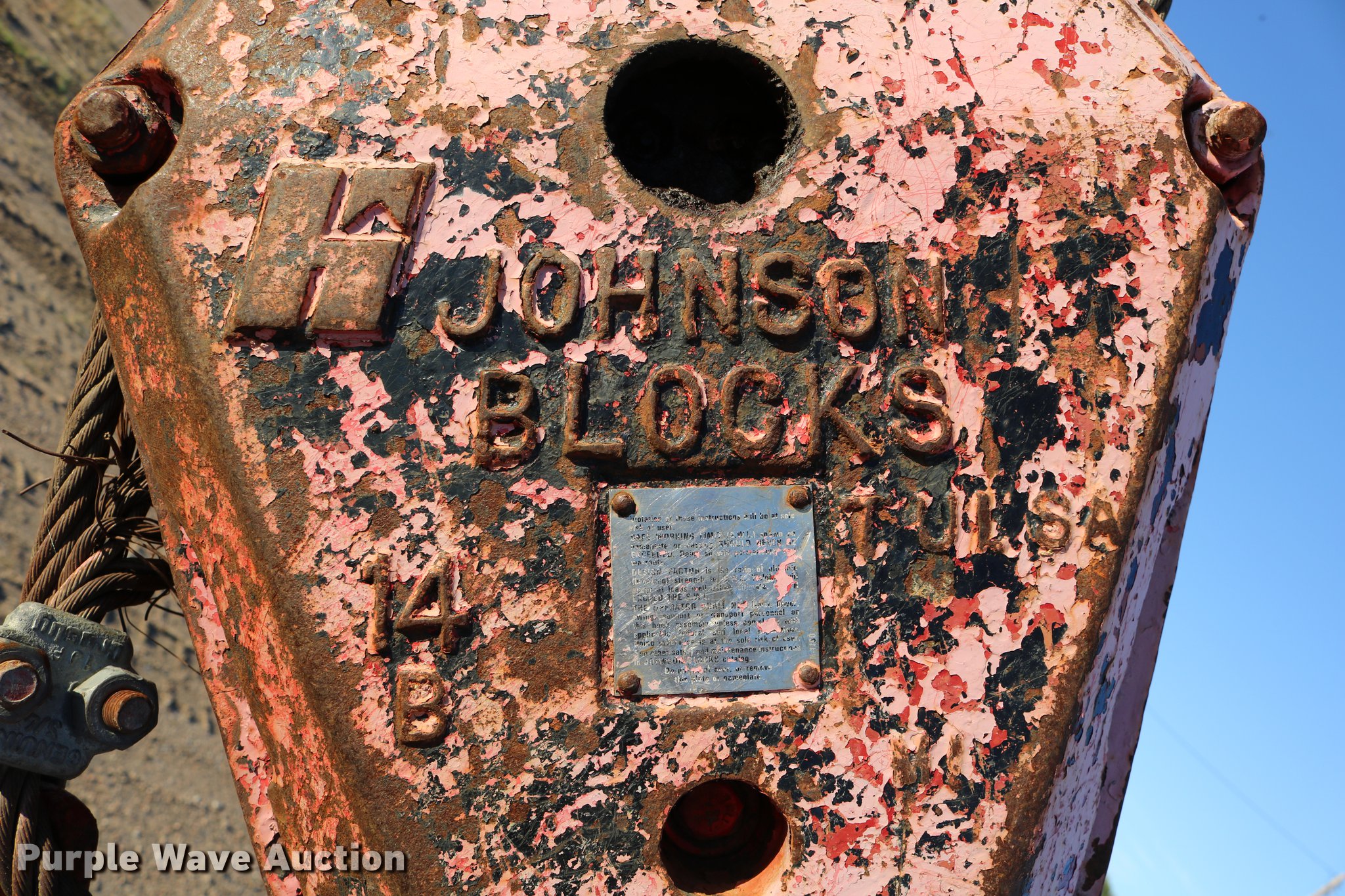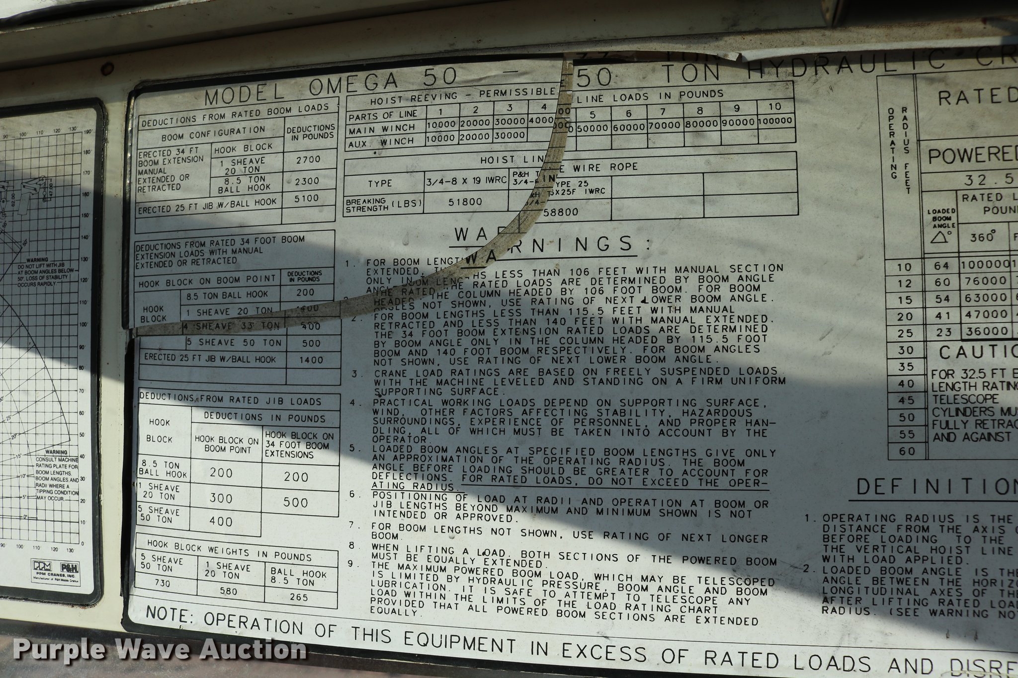 Purple Wave is selling a used Rough or All Terrain Crane in Kansas. This item is a 1985 P & H RT50 crane with the following: 3,031 hours on meter, Detroit Diesel 6V59N six cylinder diesel engine, Powershift transmission, 4F-4R gears, Tandem axle, (4) drive wheels, (4) steer wheels, All wheel steer, All wheel drive, Heat, Backup alarm, Stick crane controls, Hydraulic telescopic boom, 140' maximum boom length, 32.5' minimum boom length, 34' jib length, Three boom sections, 50 ton maximum lift capacity, In-cab boom controls, Johnson hook block, (4) stabilizers, 149" wheelbase, Air over hydraulic brakes, 26.5-25 tires, Outrigger leaks hydraulic fluid, Serial 53738