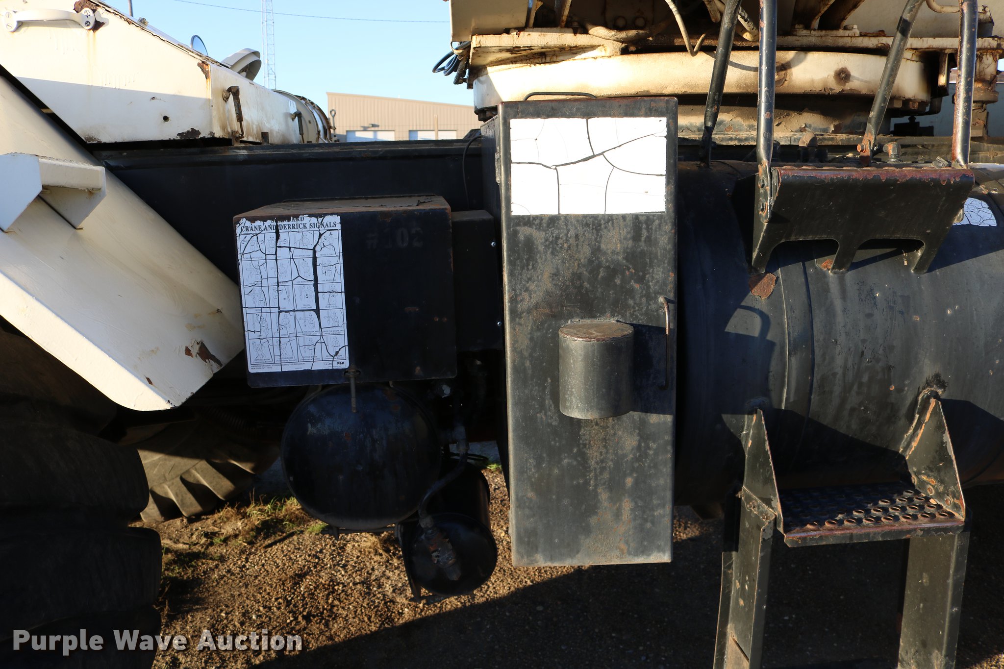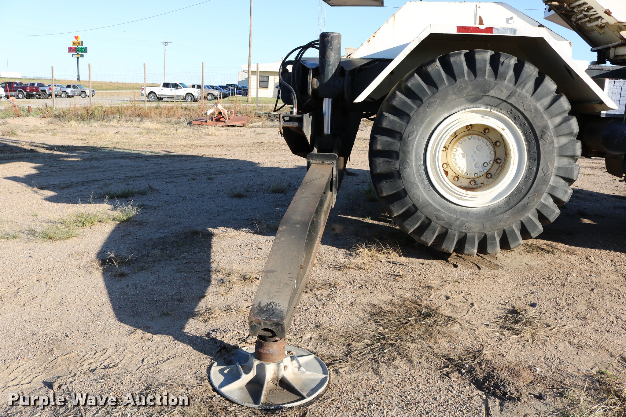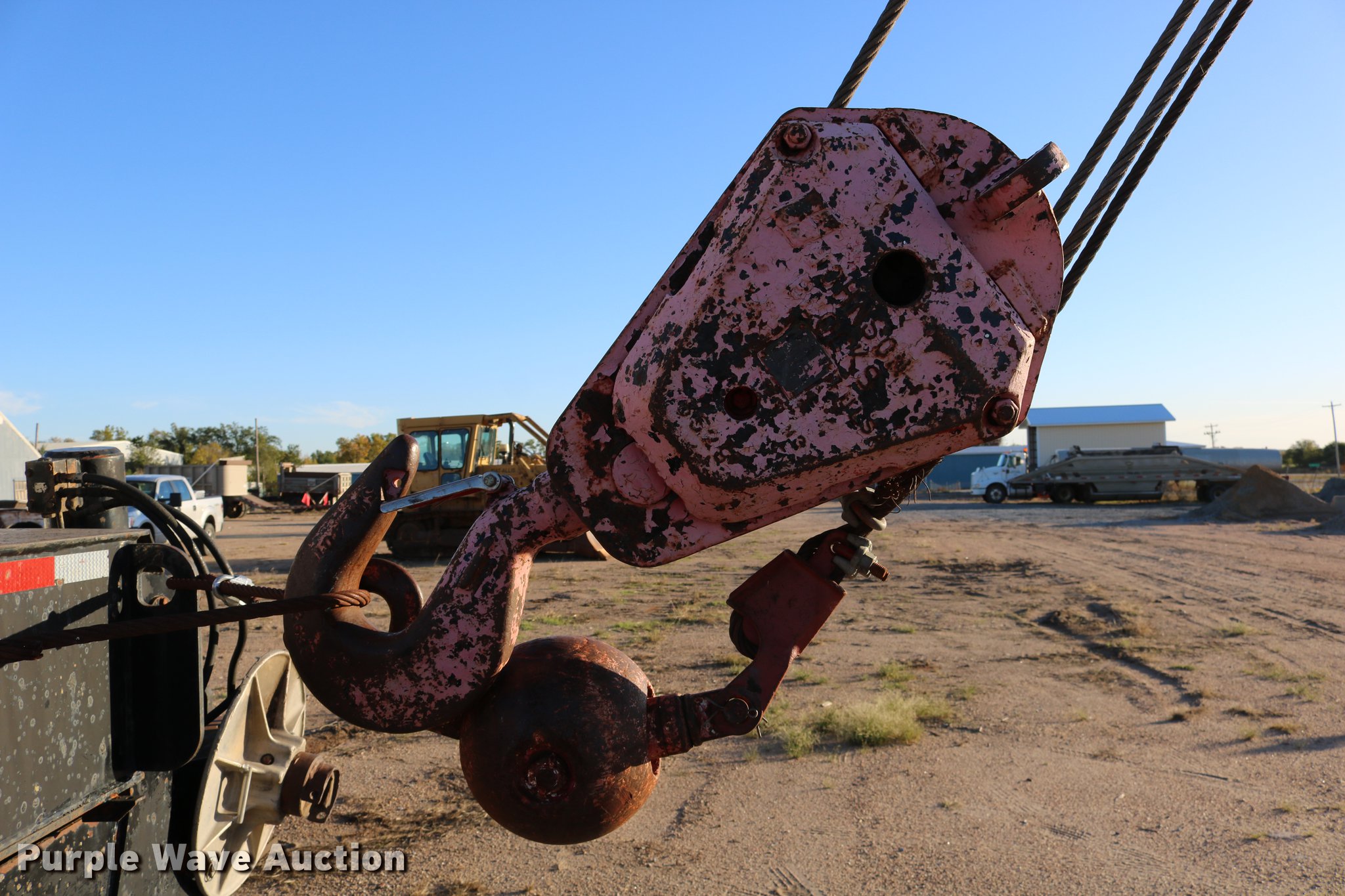 1985 P & H RT50 crane. 3,031 hours on meter, Detroit Diesel 6V59N six cylinder diesel engine, Powershift transmission 4F-4R gears, Tandem axle, (4) drive wheels, (4) steer wheels, All wheel steer, All wheel drive, Heat, Backup alarm, Stick crane controls, Hydraulic telescopic boom, 140' maximum boom length 32.5' minimum boom length, 34' jib length Three boom sections, 50 ton maximum lift capacity, In-cab boom controls, Johnson hook block, (4) stabilizers, 149" wheelbase, Air over hydraulic brakes, 26.5-25 tires, Outrigger leaks hydraulic fluid, Serial 53738. Republic County. 702 K St. Belleville, KS 66935