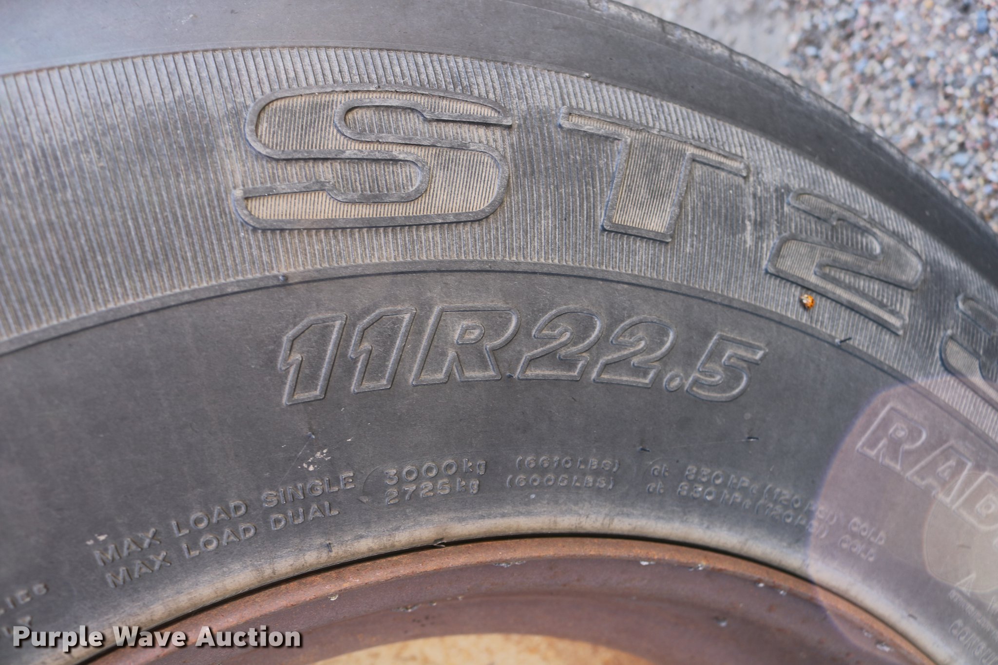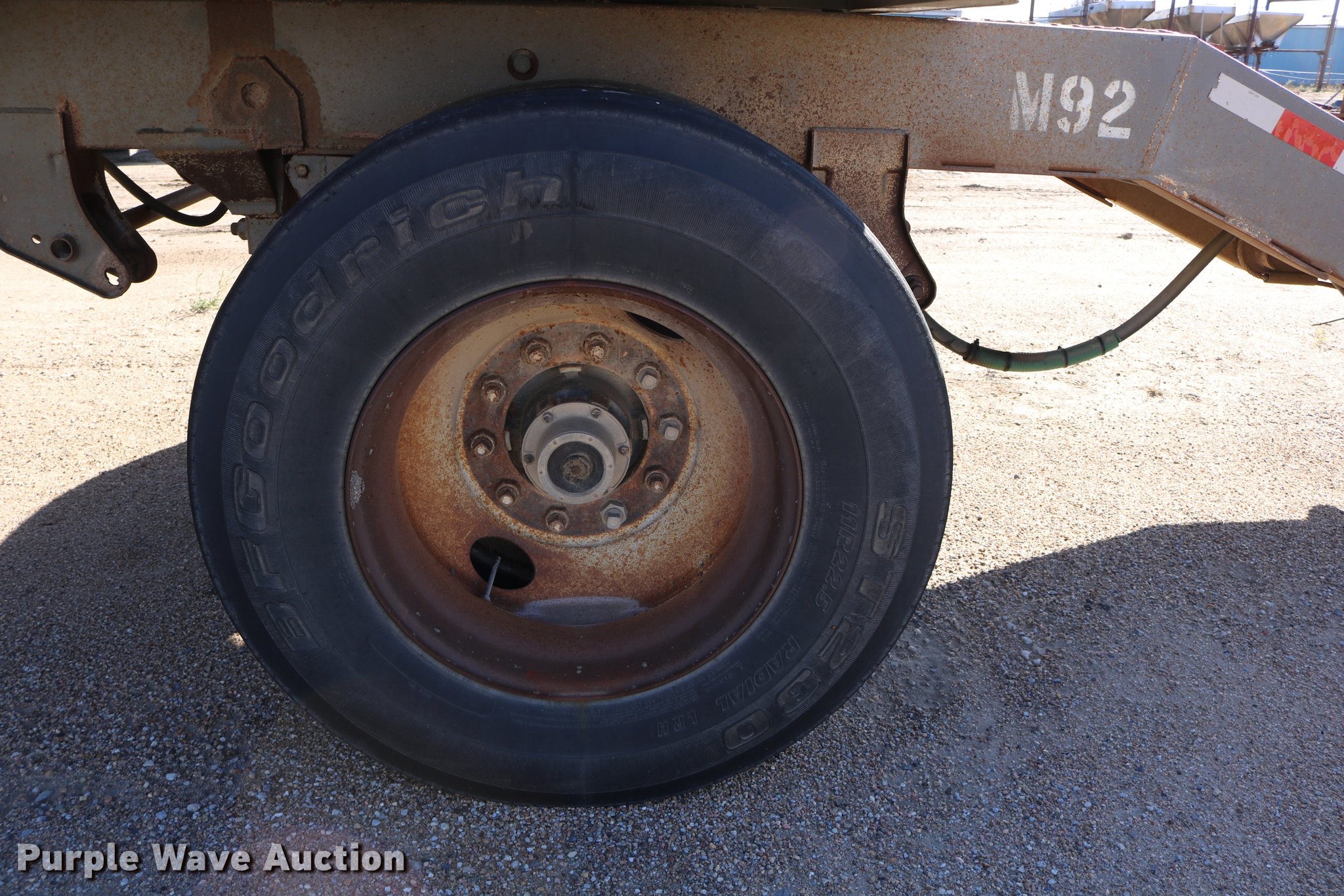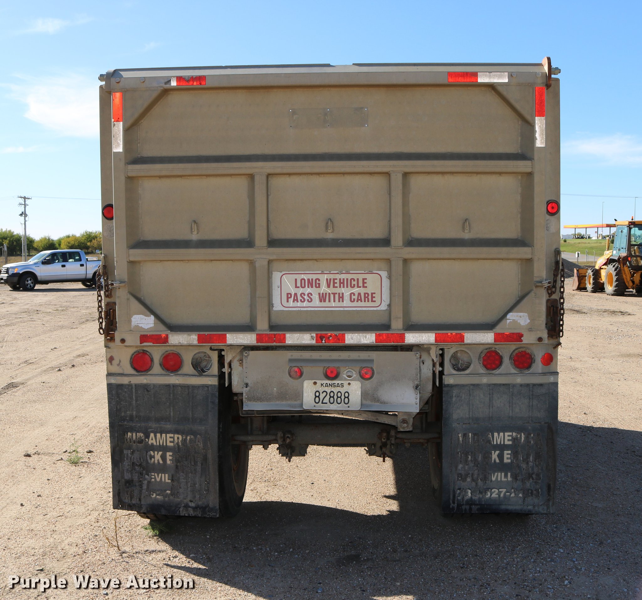 Purple Wave is selling a used End Dump Rock Trailer in Kansas. This item is a 1988 Corn Husker end dump trailer with the following: 35.5' overall length, Raven 1145454 aluminum dump bed, Serial 880254, 14'L x 96"W, 57 3/4" side height, Approximately 50" floor height, Aluminum construction, Single hydraulic cylinder, Air operated end gate, Electric tarp, Single leg landing gear, Floating tongue, Pintle hitch, Spring suspension, Air brakes, Steel wheels, 11R22.5 tires, GVWR 57,000 lbs, GAWR 19,000 lbs