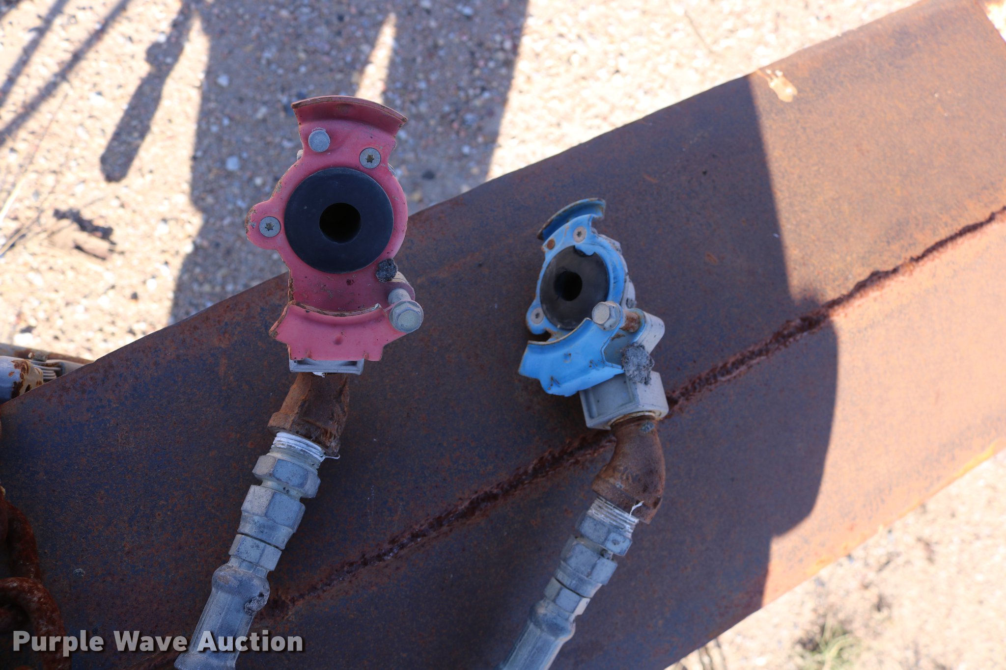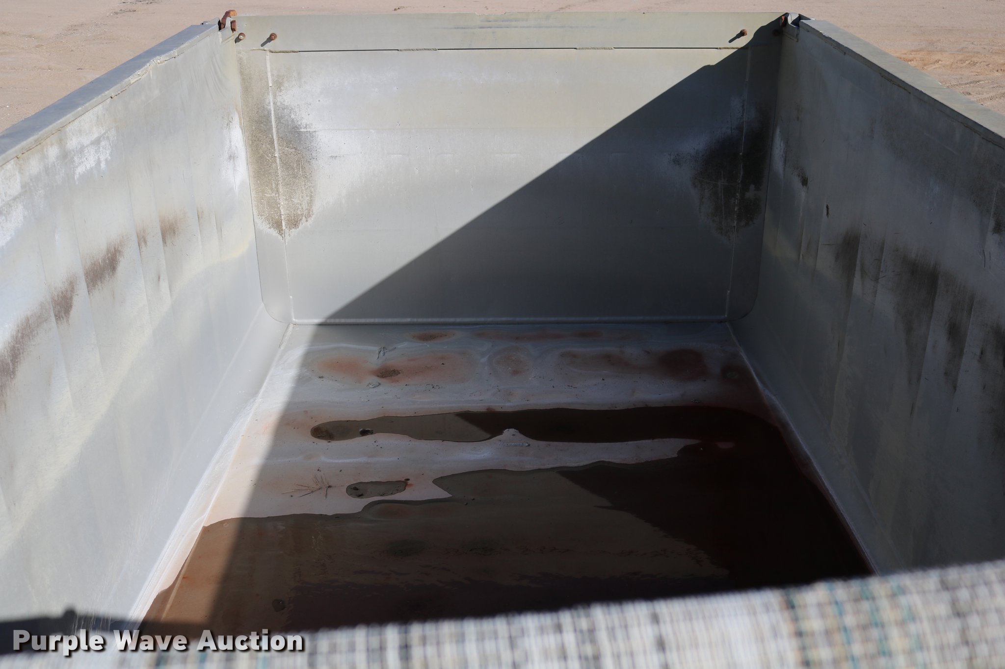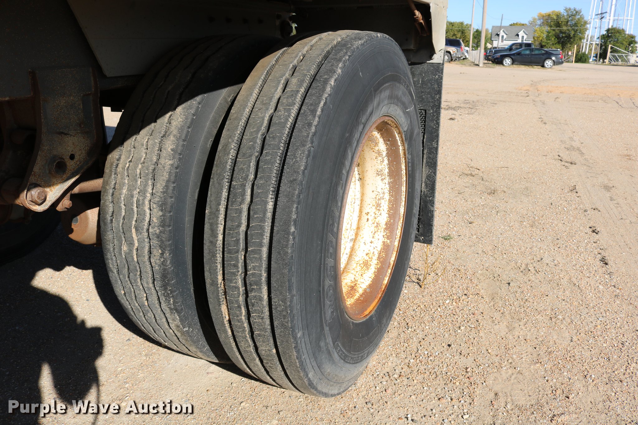 1988 Corn Husker end dump trailer. 35.5' overall length, Raven 1145454 aluminum dump bed Serial 880254, 14'L x 96"W, 57 3/4" side height, Approximately 50" floor height, Aluminum construction, Single hydraulic cylinder, Air operated end gate, Electric tarp, Single leg landing gear, Floating tongue, Pintle hitch, Spring suspension, Air brakes, Steel wheels, 11R22.5 tires, GVWR 57,000 lbs, GAWR 19,000 lbs. Kansas title. 1T91C1933J0007079. Republic County. 702 K St. Belleville, KS 66935