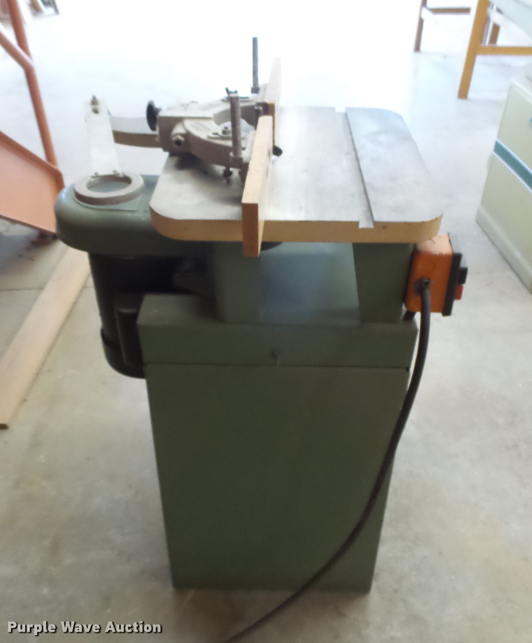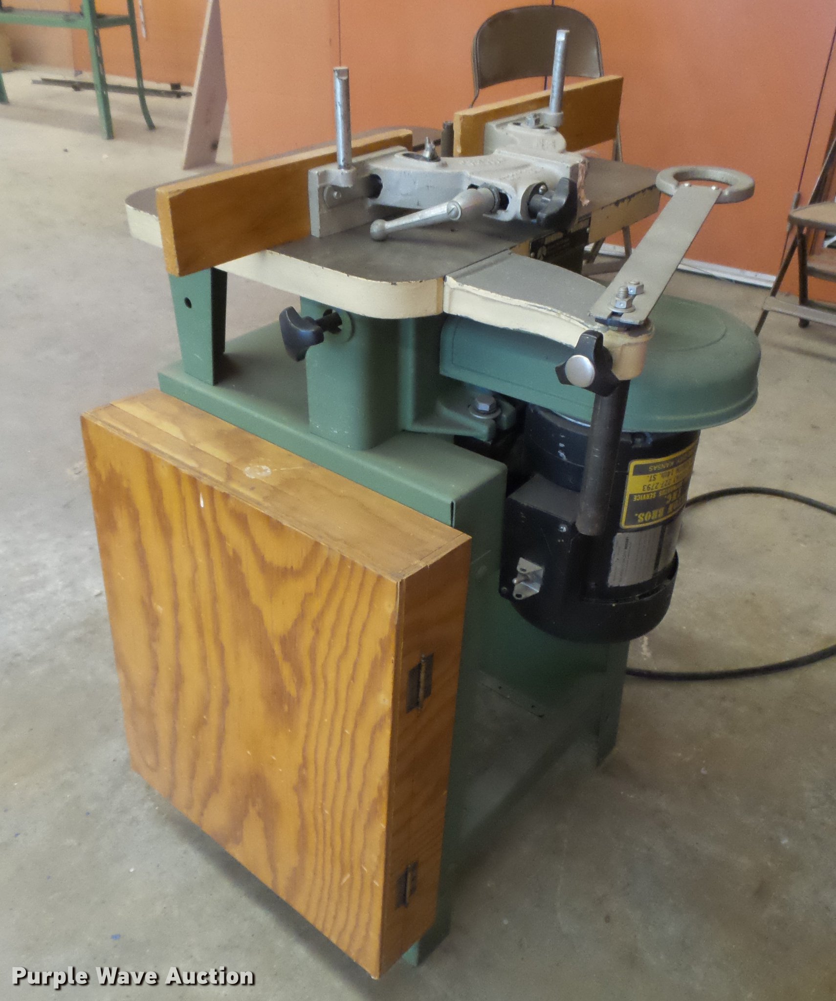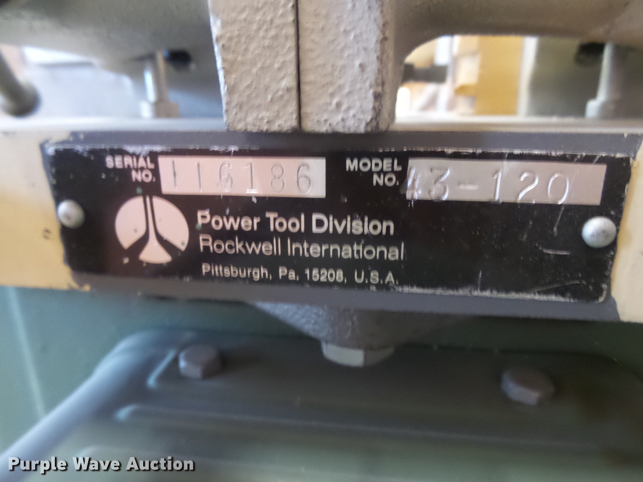 Purple Wave is selling a used Woodworking Equip. in Kansas. This item is a Rockwell 43-120 wood shaper with the following: 1 HP, Single phase, 115/230V, Cutting bits, Serial 116186