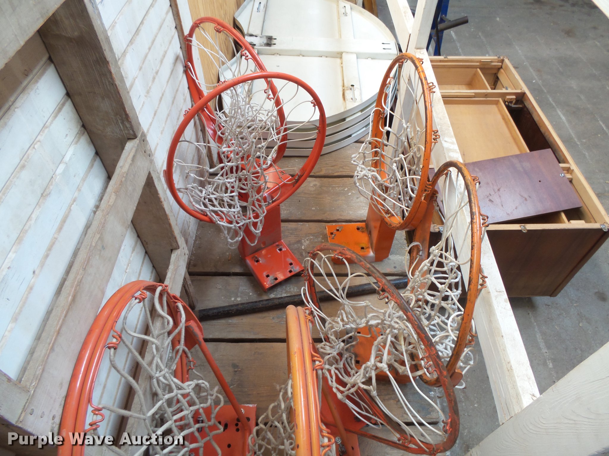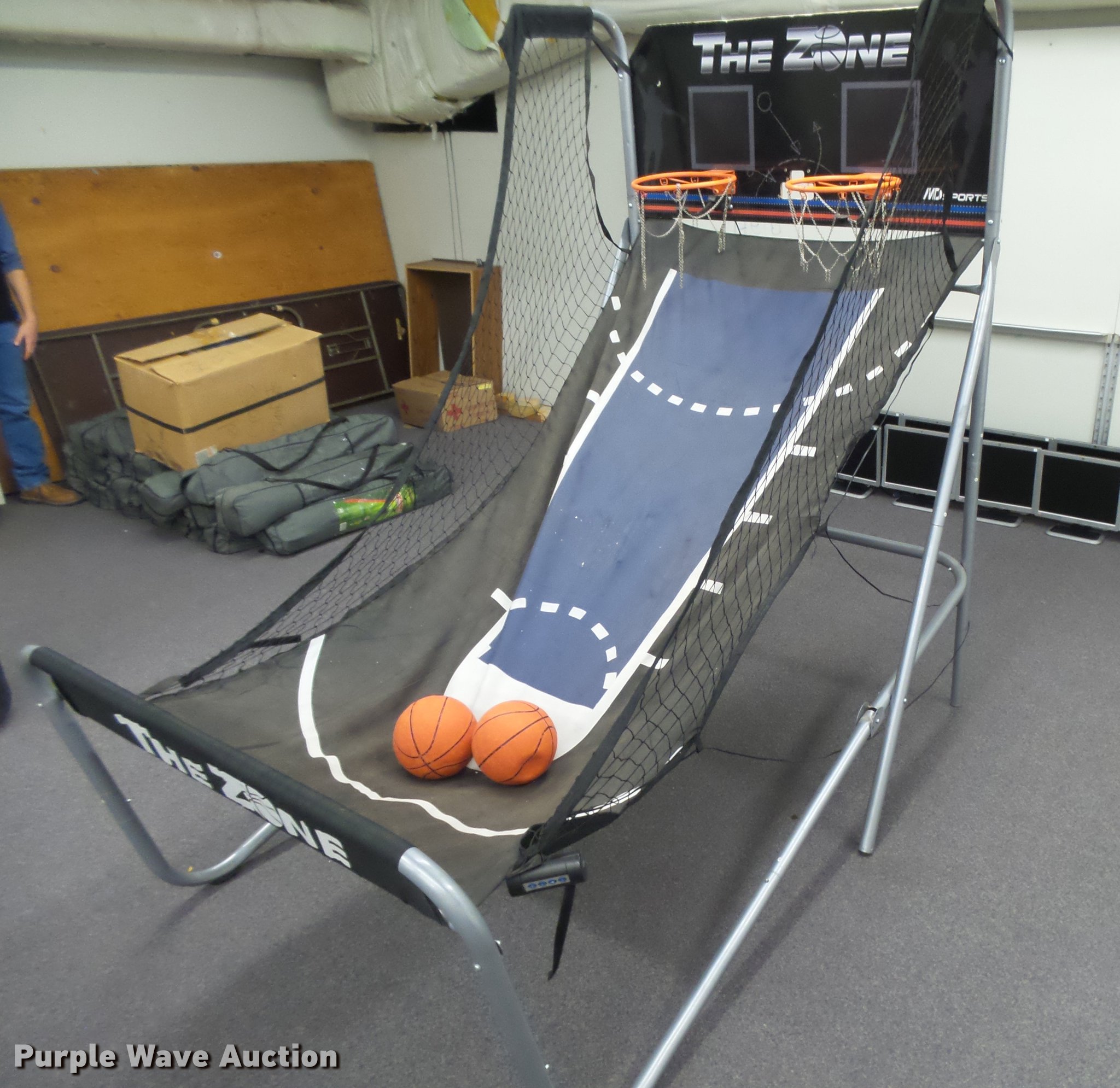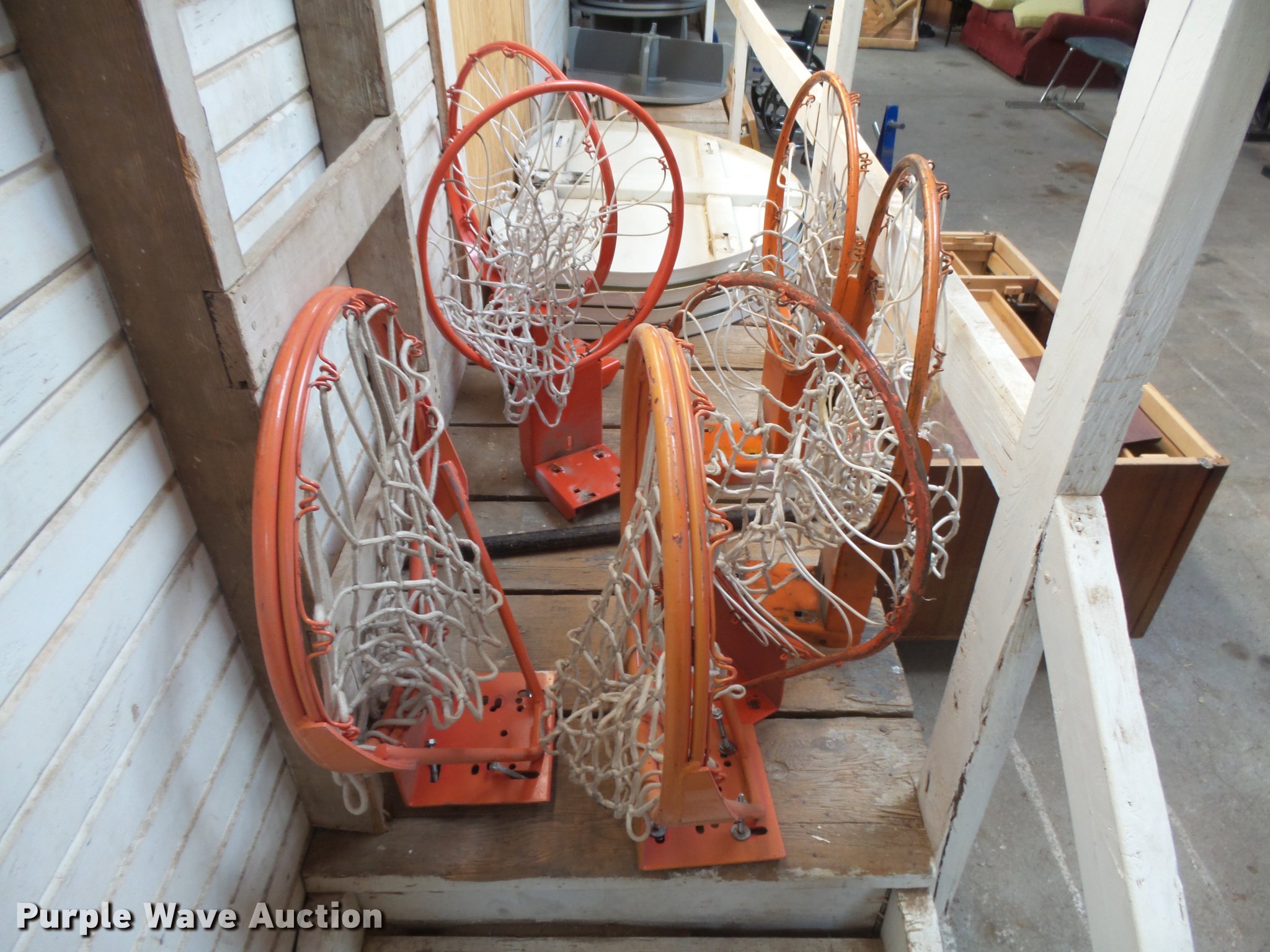 Purple Wave is selling a used Sporting Goods in Kansas. This item is a Sporting goods with the following: (4) metal backboards, (6) metal rims, The Zone basketball shooting game