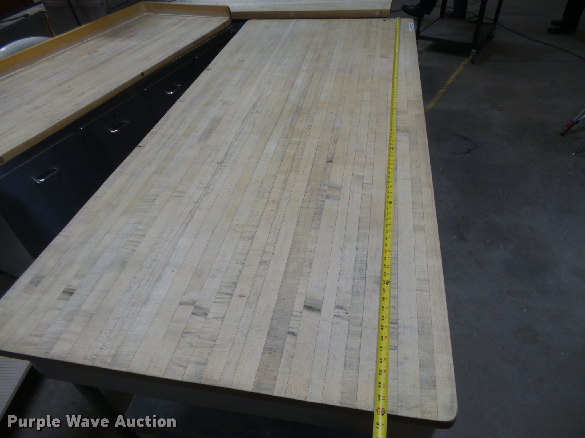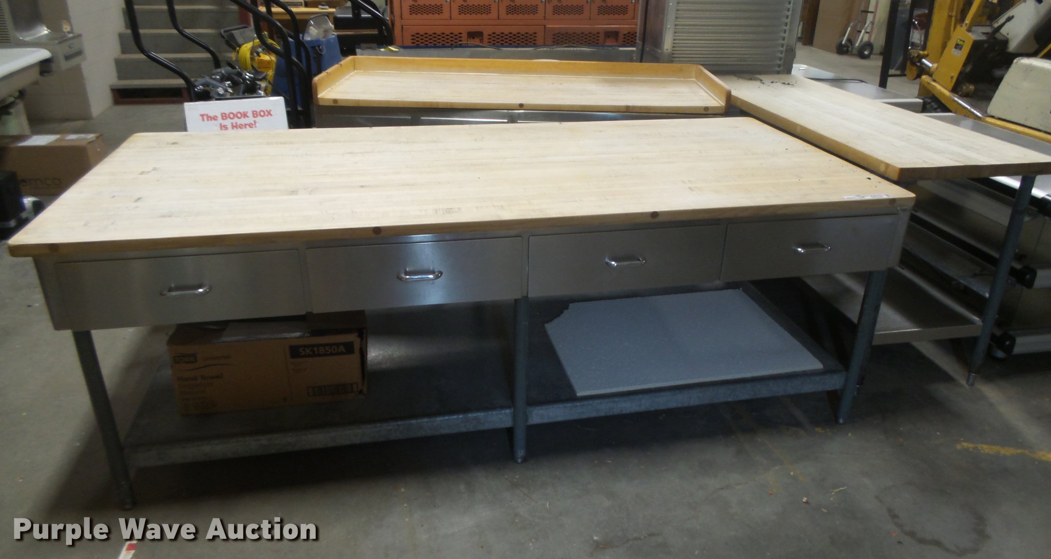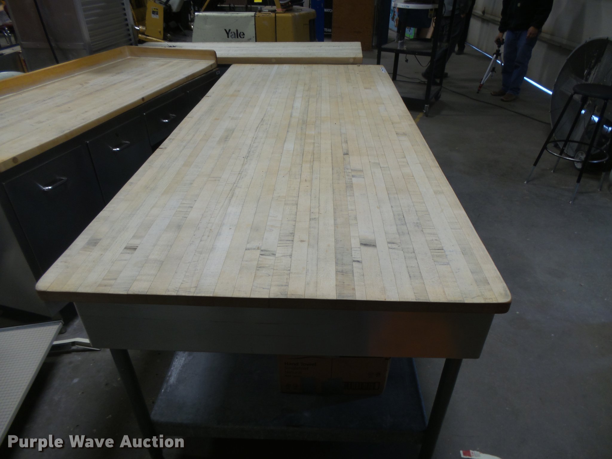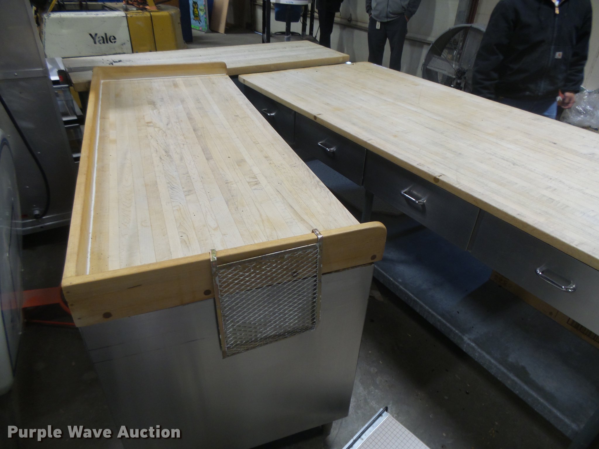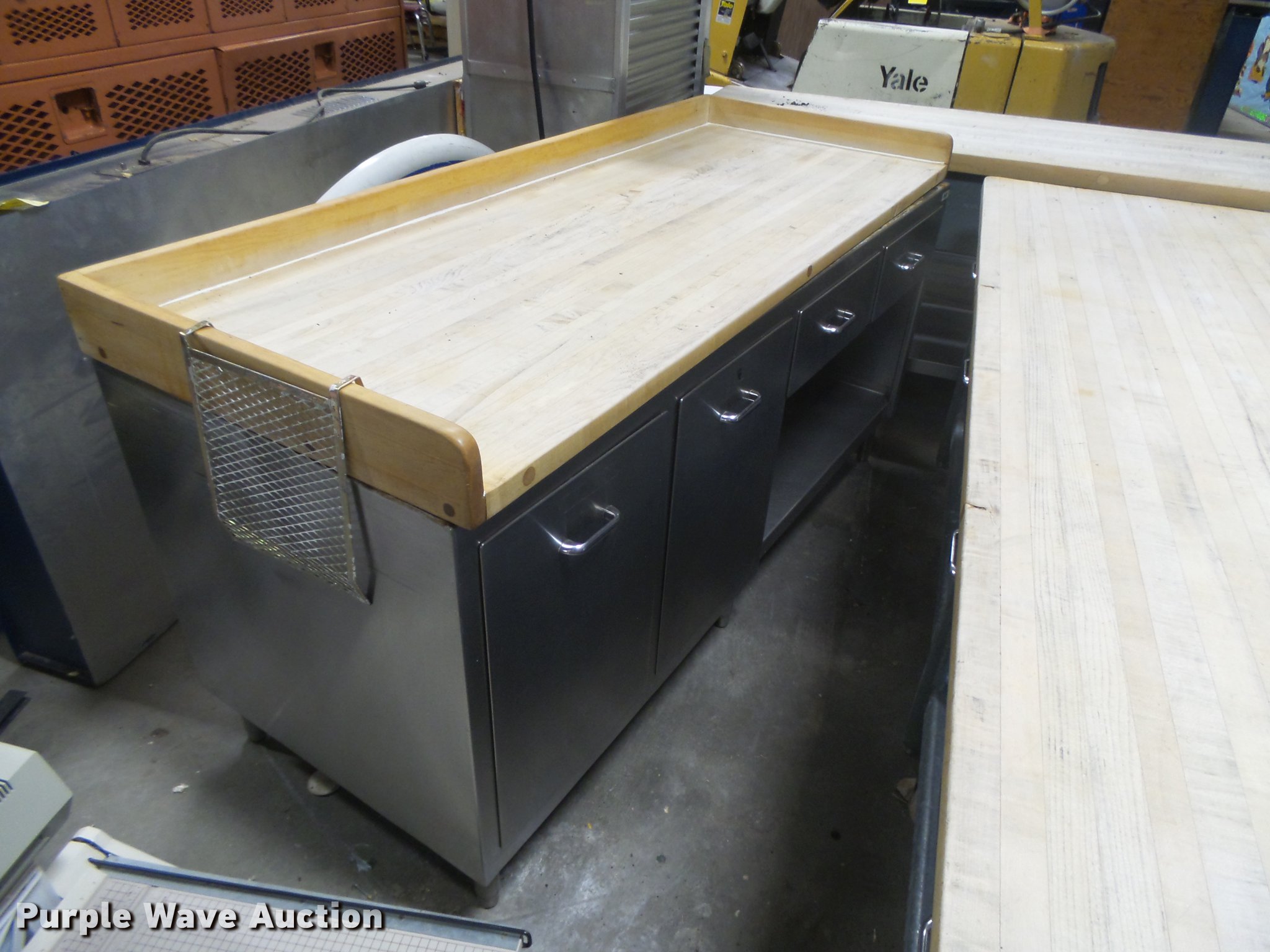 Restaurant equipment. (3) kitchen prep tables, Stainless steel cabinets Wood top. USD 457. 1312 N 7th St. Garden City, KS 67846